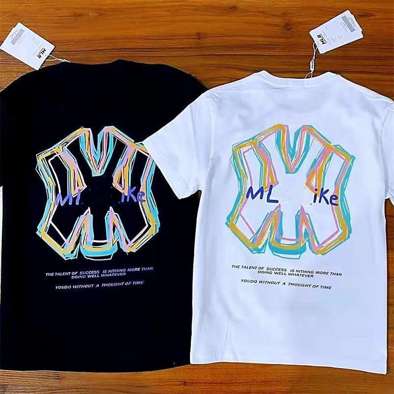 한국 남자와 여자의 티셔츠 커플 2022 여름 새로운 짧은 소매 다시 NY 거품 편지 인쇄 느슨한 캐주얼 티셔츠스토어 가기