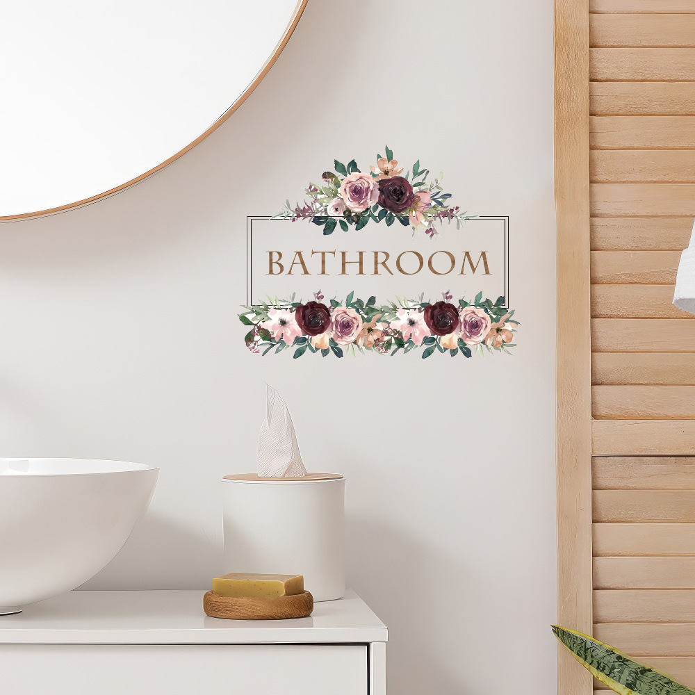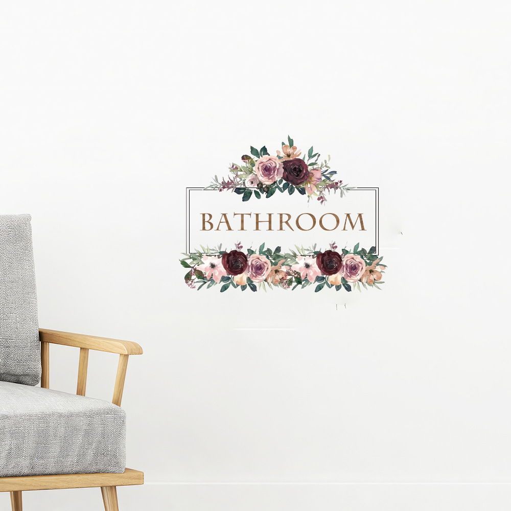 1 조각 수채화 꽃 욕실 견적 문 벽 스티커 장미 꽃 화장실 벽 스티커 장식 그림스토어 가기