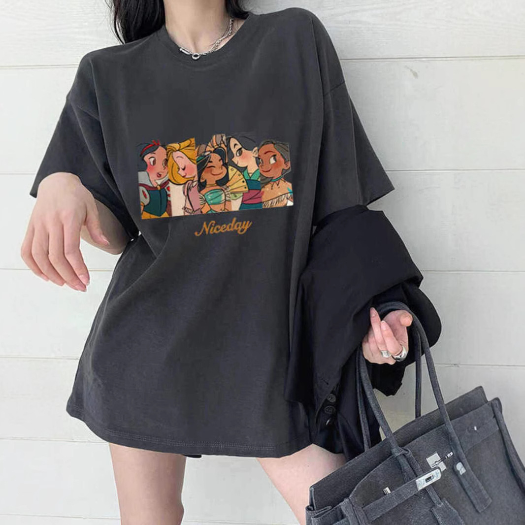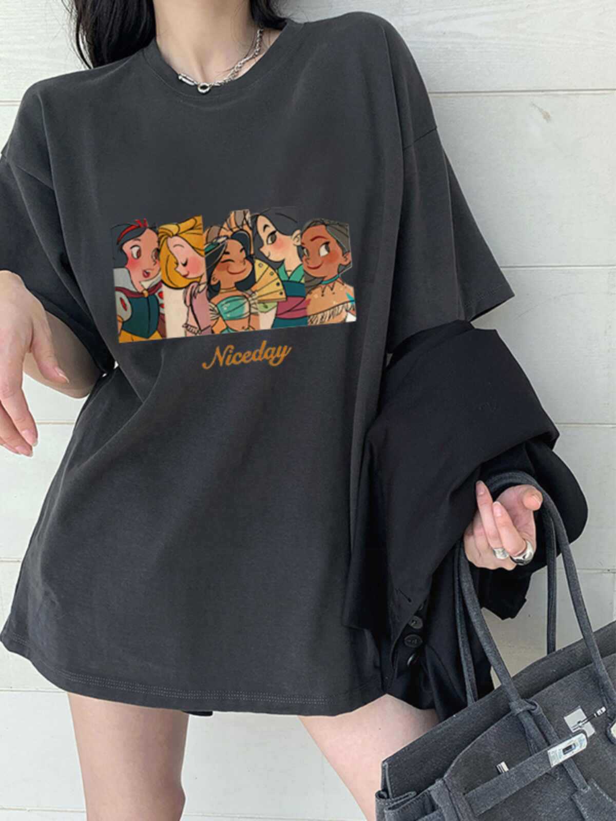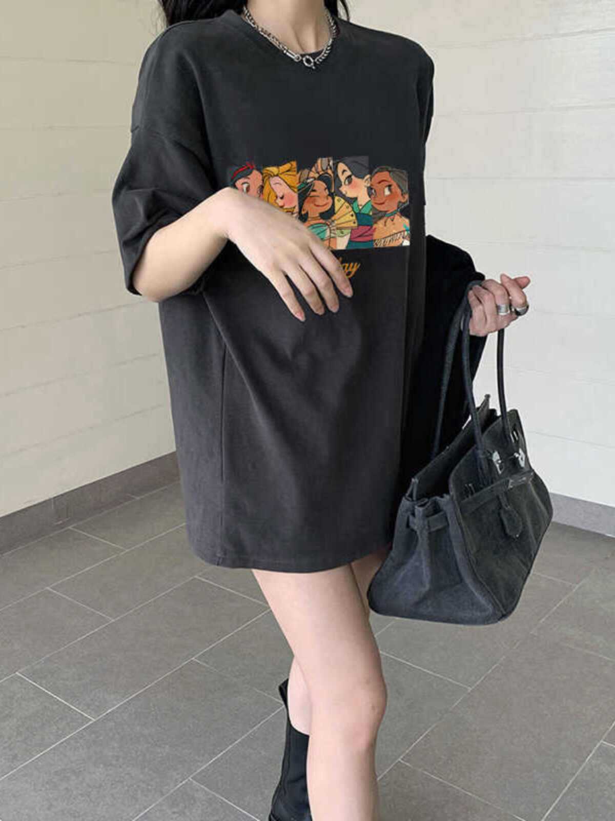 그레이 티셔츠 여성 아메리칸 스타일 레트로 패션 브랜드 반팔 힙합 플러스 사이즈 퓨어 코튼 인 쿨 여름 웨스턴 스타일 플러스 사이즈 탑