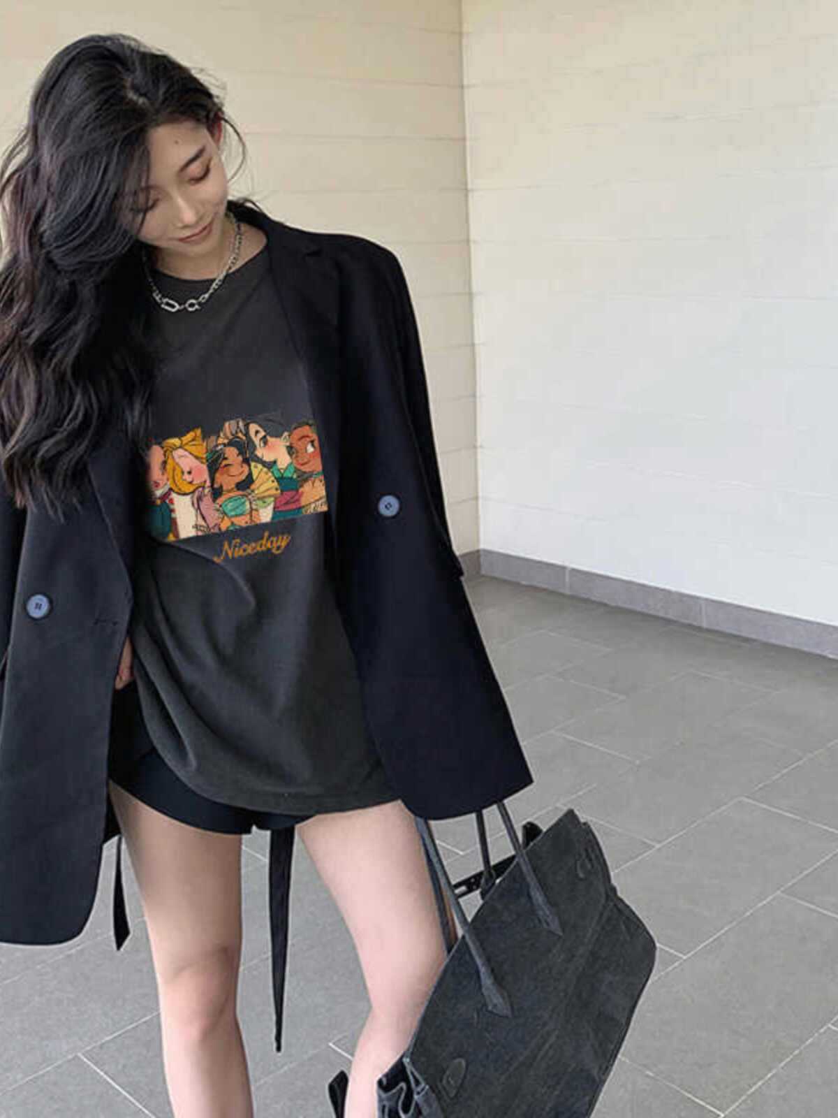 그레이 티셔츠 여성 아메리칸 스타일 레트로 패션 브랜드 반팔 힙합 플러스 사이즈 퓨어 코튼 인 쿨 여름 웨스턴 스타일 플러스 사이즈 탑스토어 가기