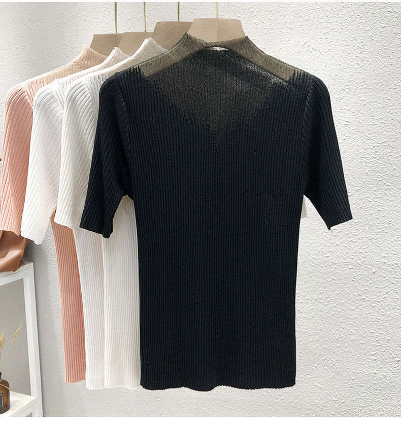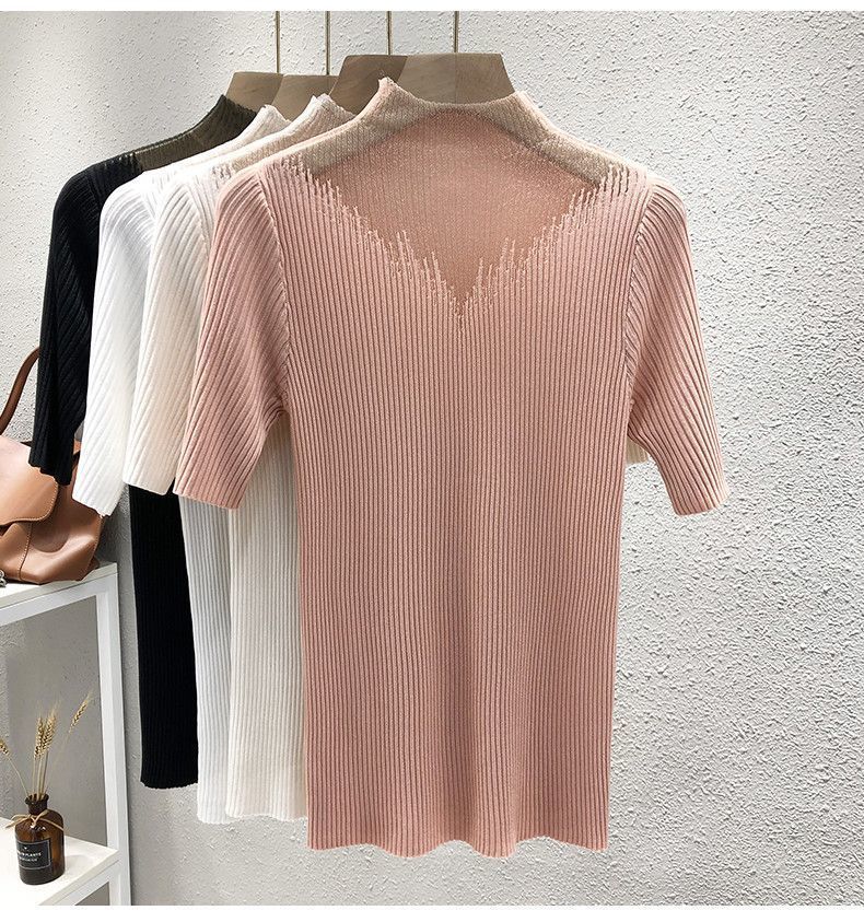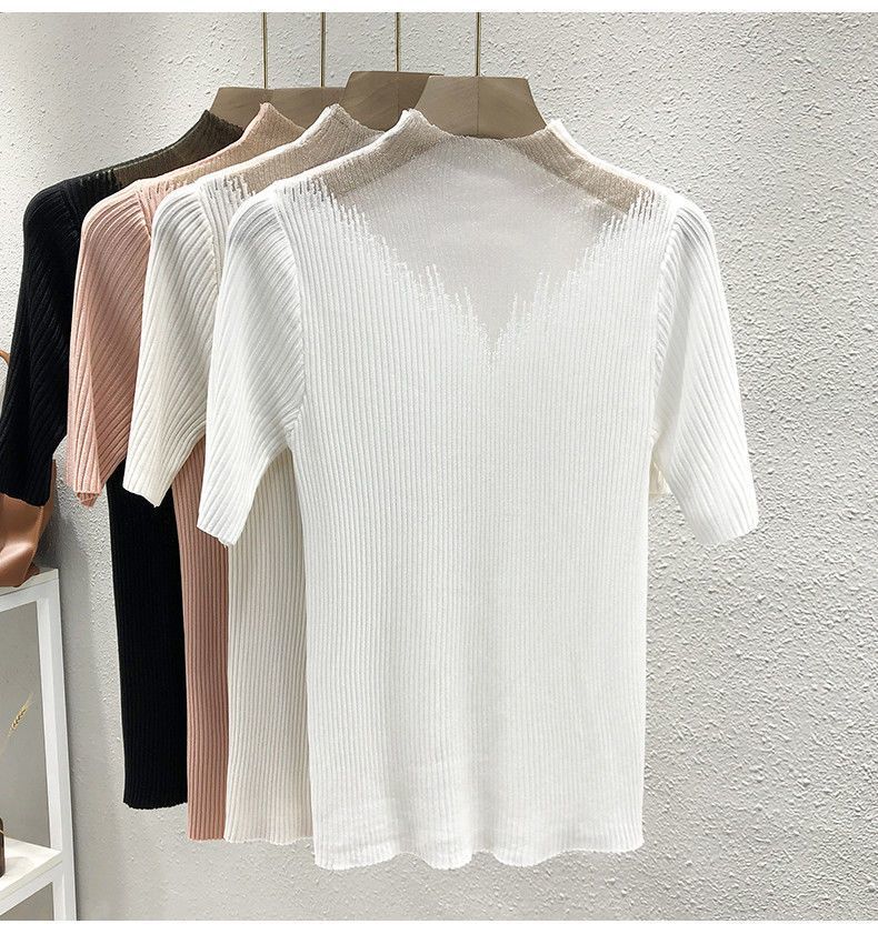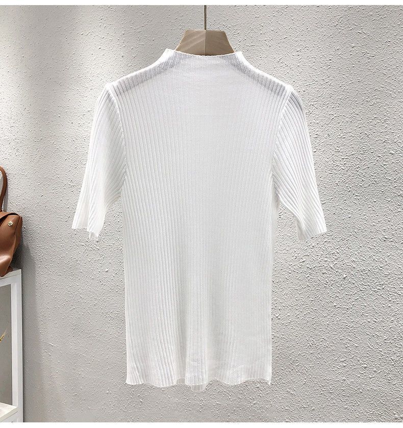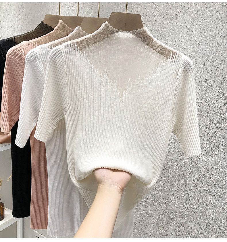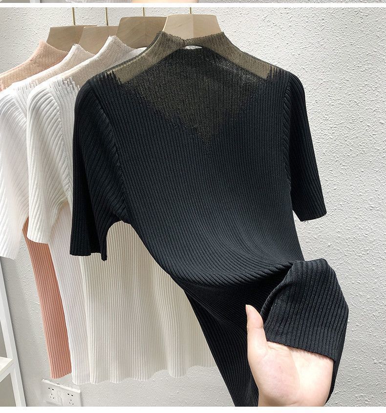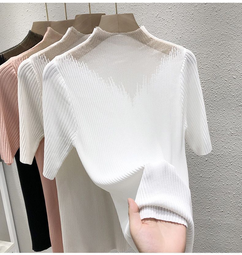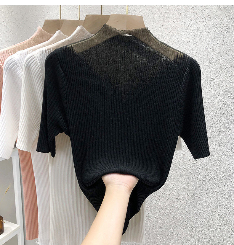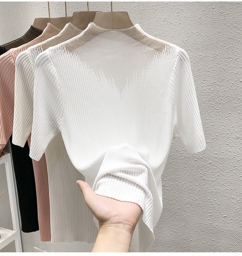 아이스 실크 메쉬 레이스 티셔츠 여성용 니트웨어 2025 여름 새로운 슬림 핏 얇은 올 매치 반소매 최고 트렌디스토어 가기