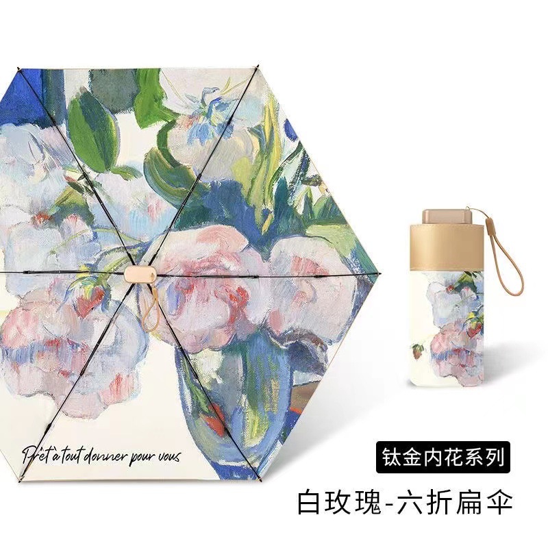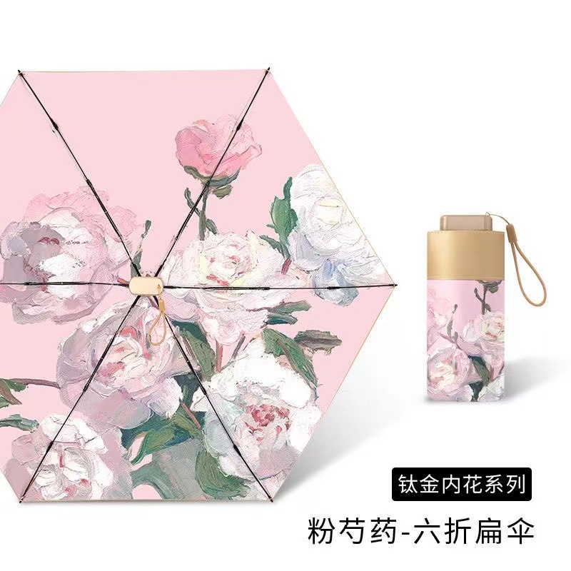 새로운 포켓 태양 우산 50% 접힌 작은 유화 선 스크린 양산 소녀 UV 상쾌한 우산 Ins 스타일