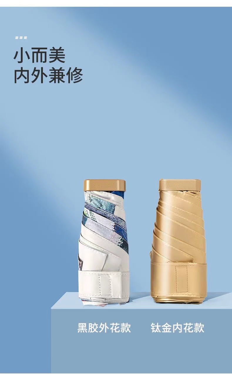 새로운 포켓 태양 우산 50% 접힌 작은 유화 선 스크린 양산 소녀 UV 상쾌한 우산 Ins 스타일스토어 가기