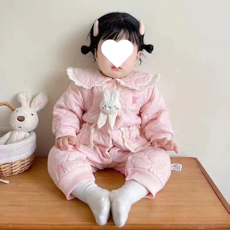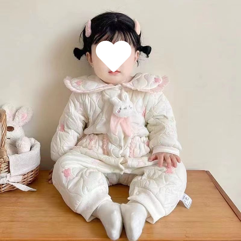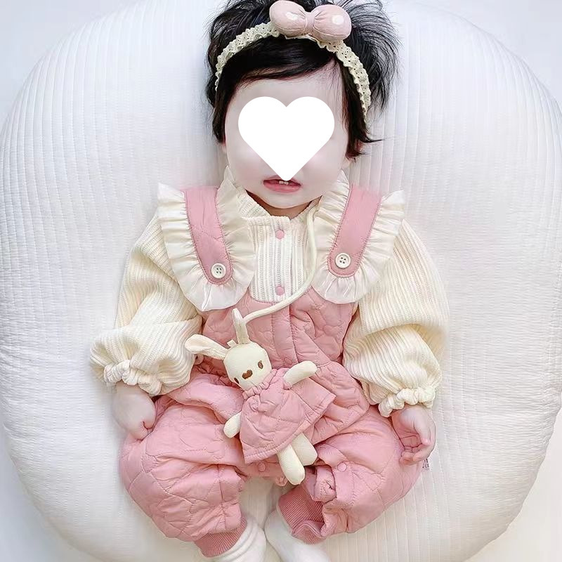 슈퍼 귀여운 신생아 옷 가을과 겨울 기모 면화 아기 소녀 점프 수트 귀여운 공주 옷 등반 옷