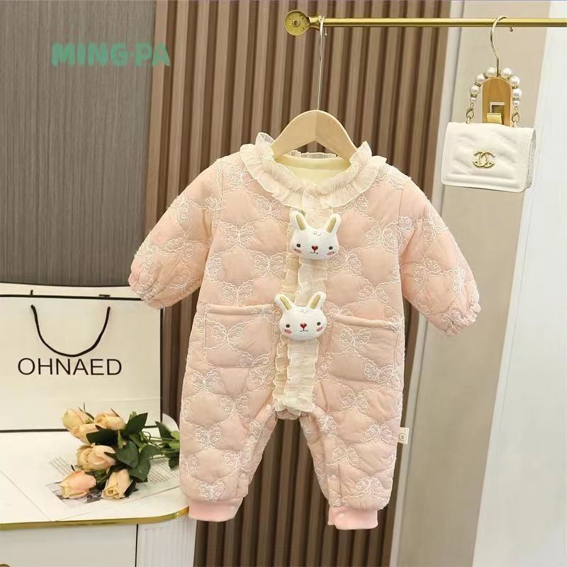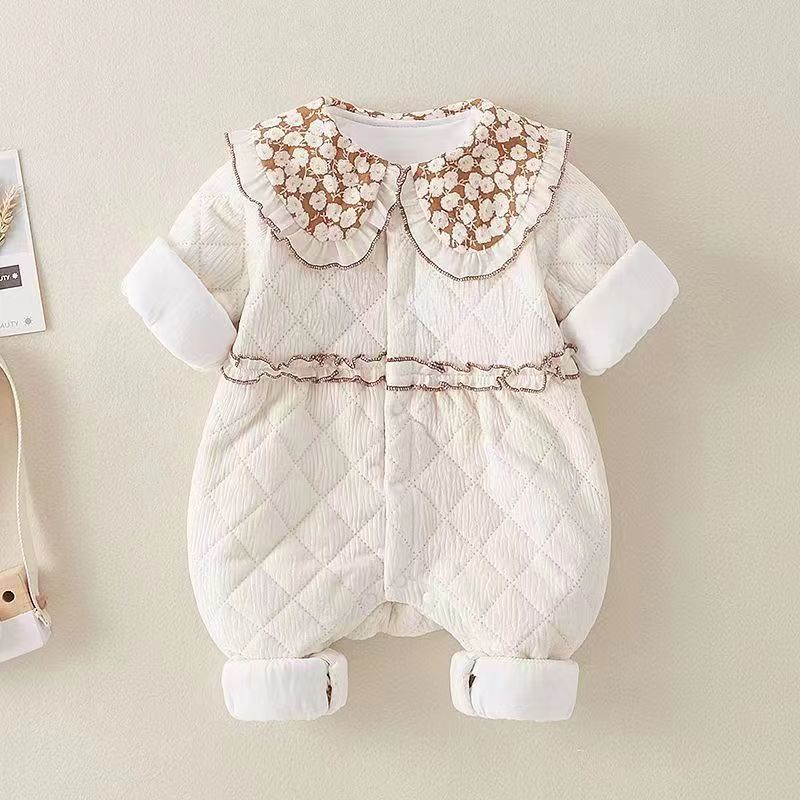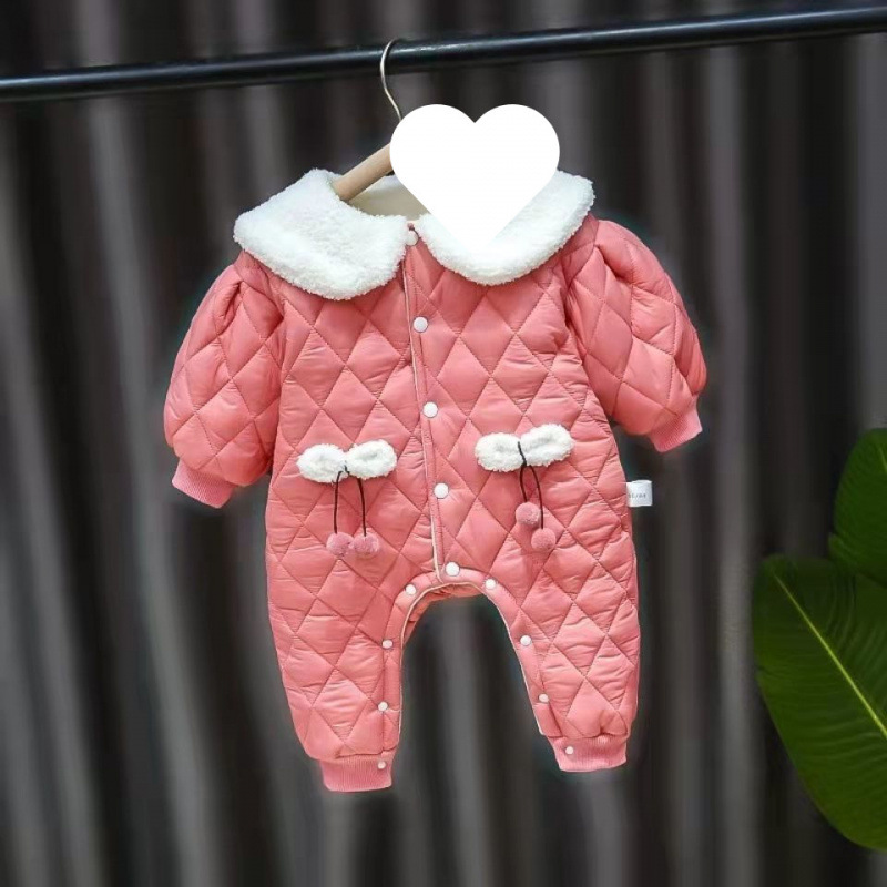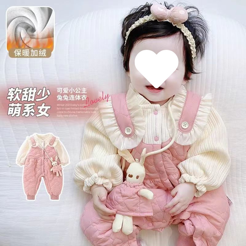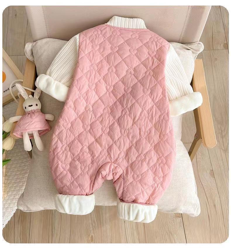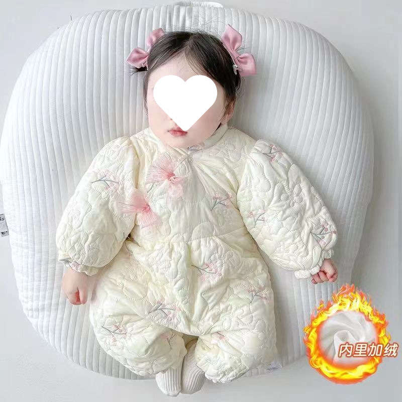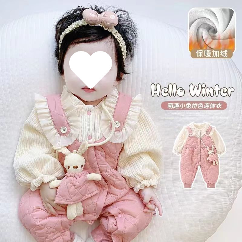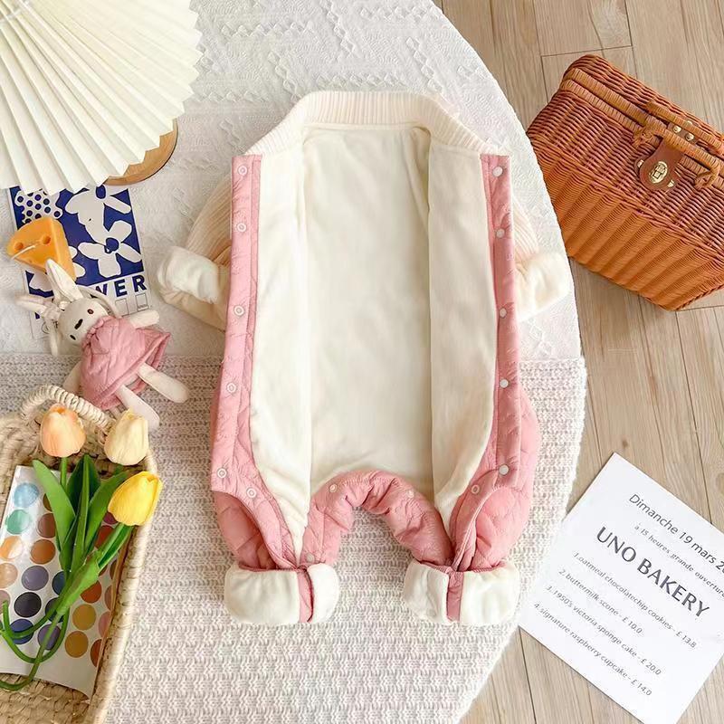 슈퍼 귀여운 신생아 옷 가을과 겨울 기모 면화 아기 소녀 점프 수트 귀여운 공주 옷 등반 옷스토어 가기