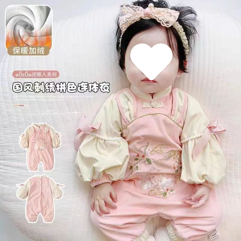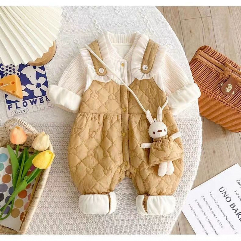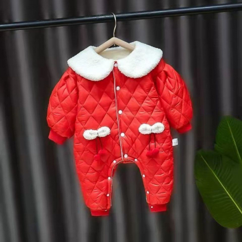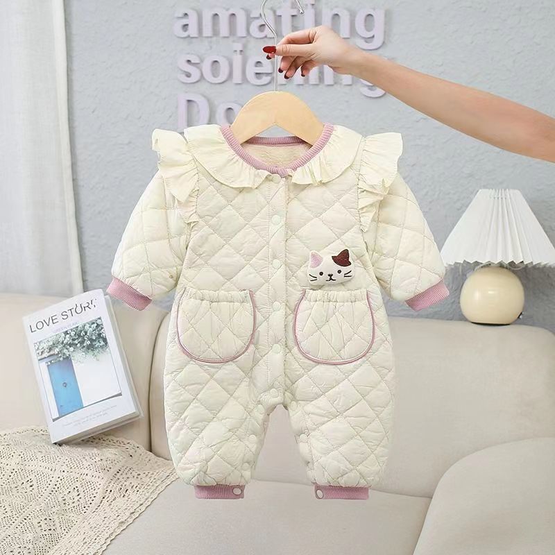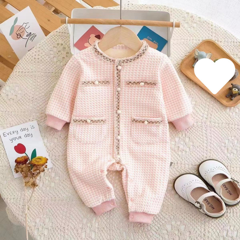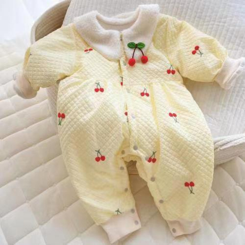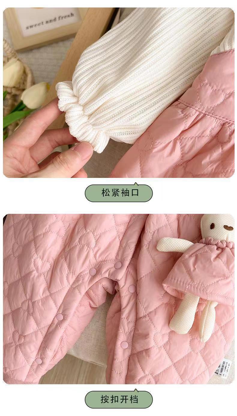 슈퍼 귀여운 신생아 옷 가을과 겨울 기모 면화 아기 소녀 점프 수트 귀여운 공주 옷 등반 옷스토어 가기