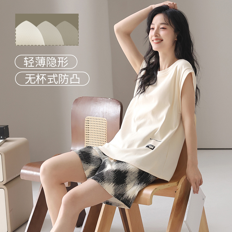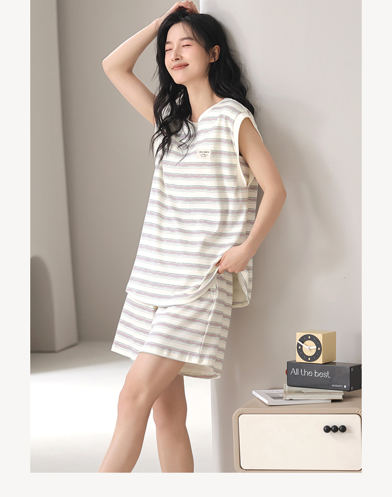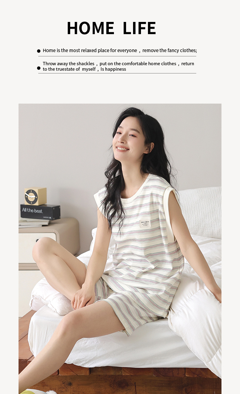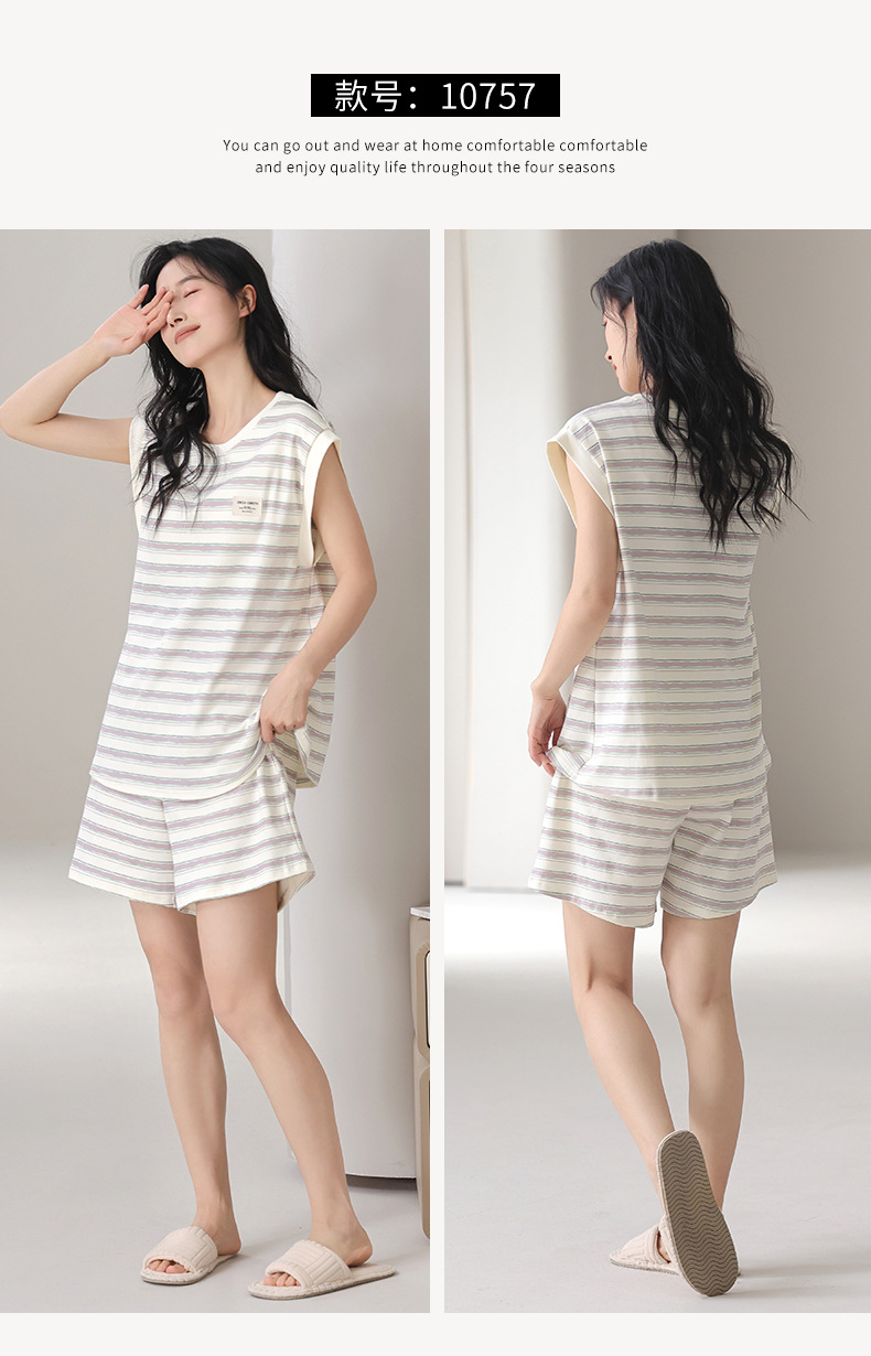 민소매 조끼 파자마 여성 반바지 퓨어 코튼 캐주얼 한국 스타일 달콤한 느슨한 소녀의 안티 워킹 홈 옷 투피스 세트스토어 가기