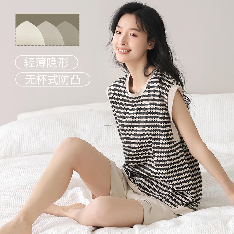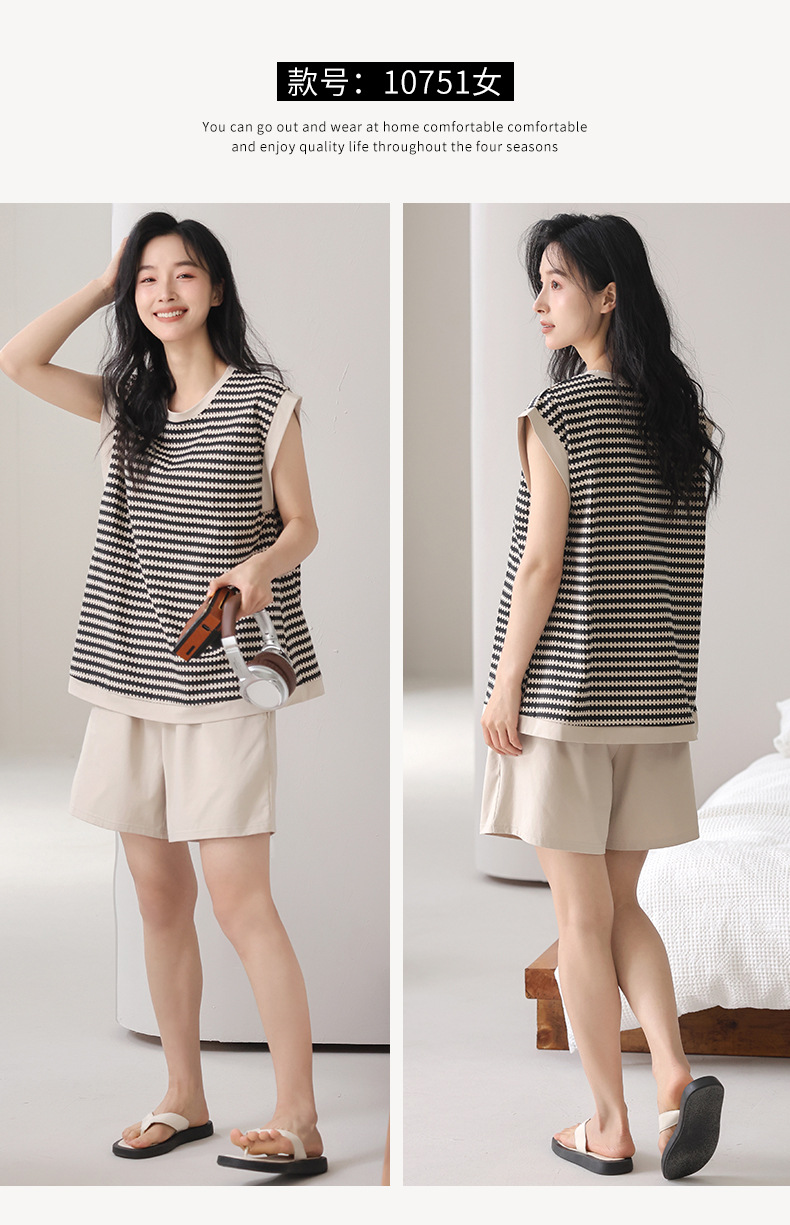 민소매 조끼 파자마 여성 반바지 퓨어 코튼 캐주얼 한국 스타일 달콤한 느슨한 소녀의 안티 워킹 홈 옷 투피스 세트