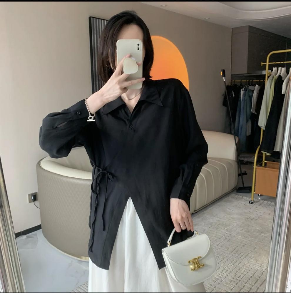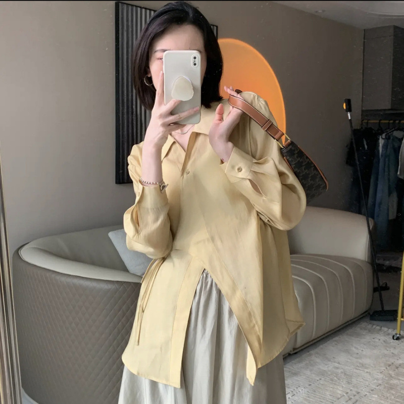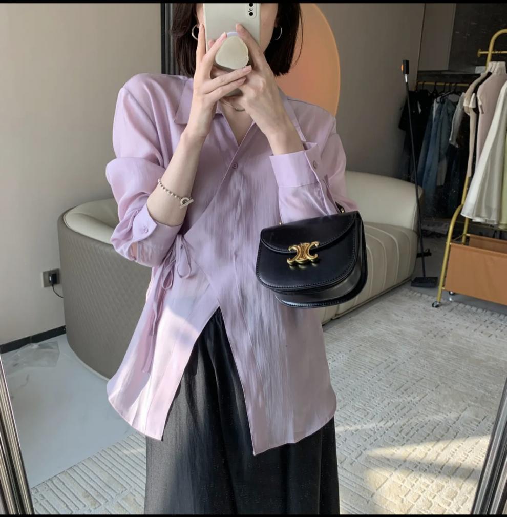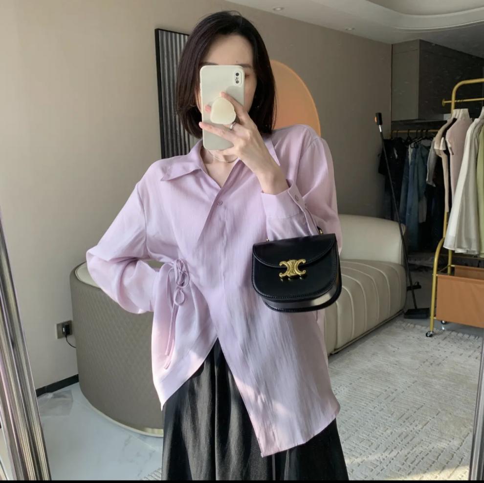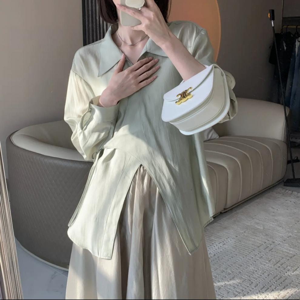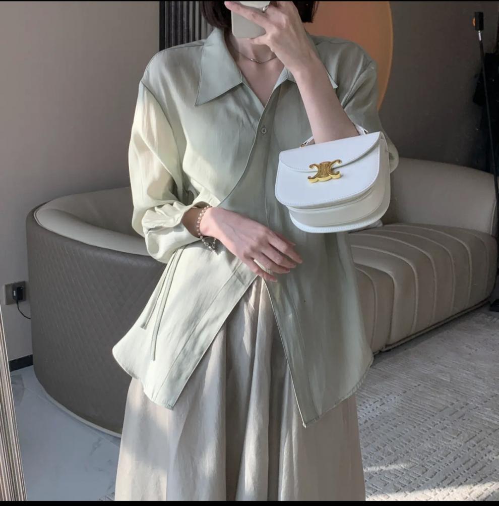 여름 2025 한국식 텐셀 긴팔 경량 통기성 녹색 선 스크린 셔츠 여성용 느슨한 마이크로 투명 세련된 탑스토어 가기