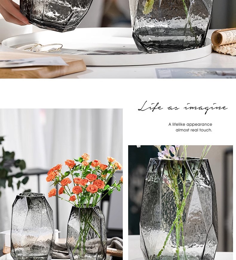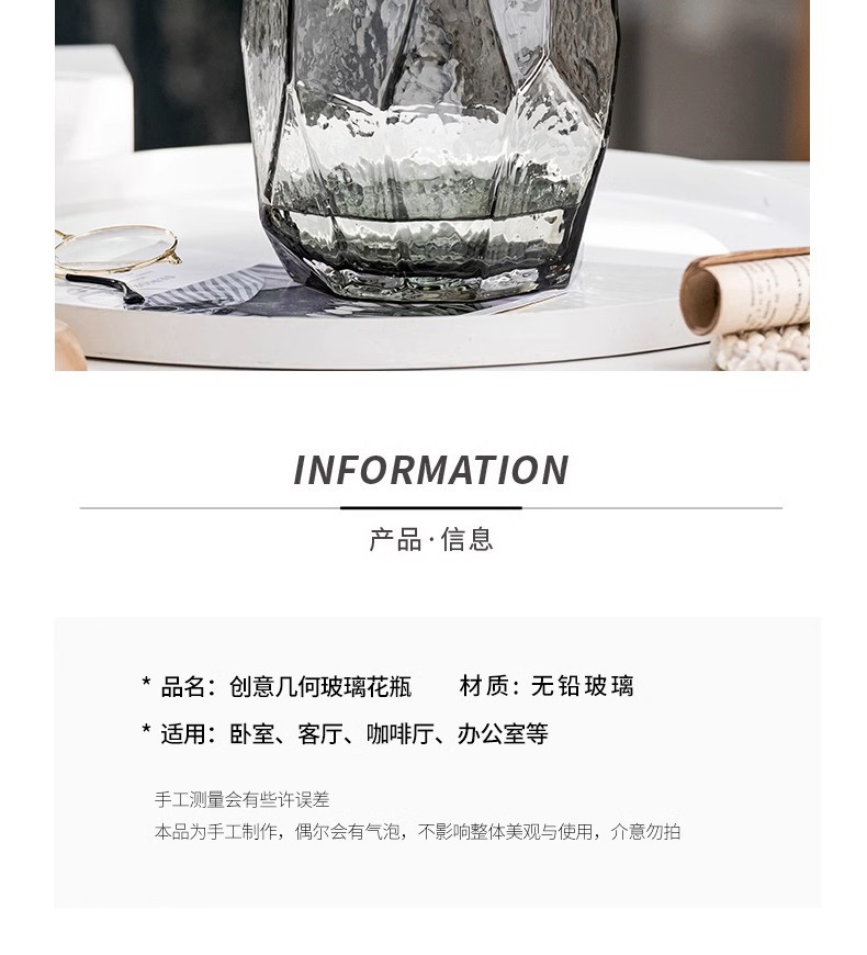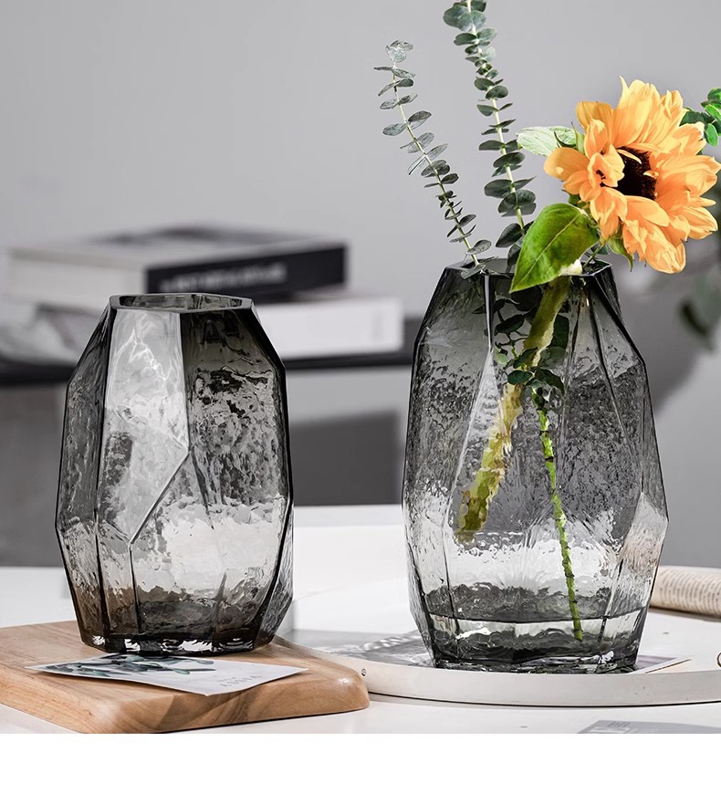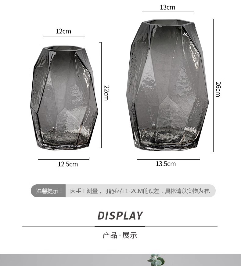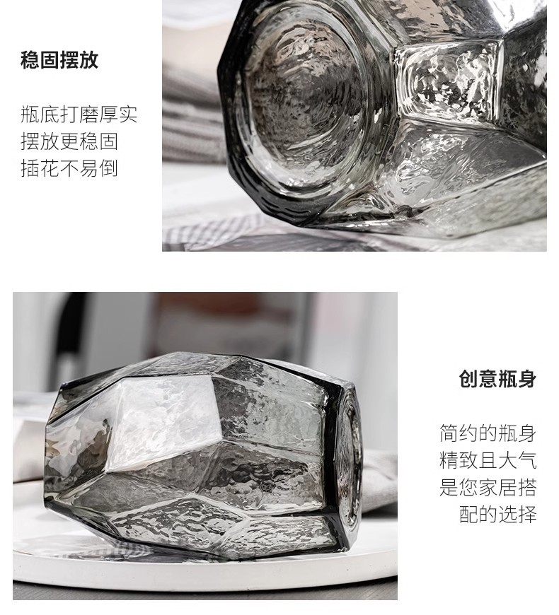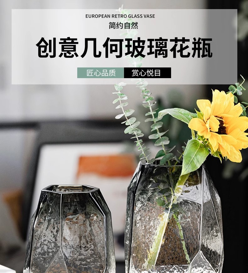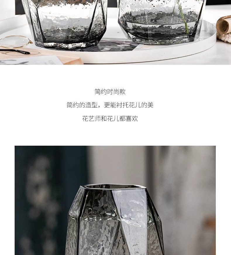 가벼운 고급 기하학적 1 색 유리 꽃병 거실 창조적 인 장식품 담배 재 꽃 장식품 식탁 장식 유리 꽃병