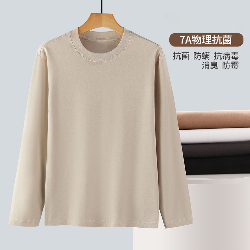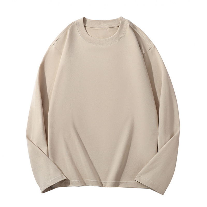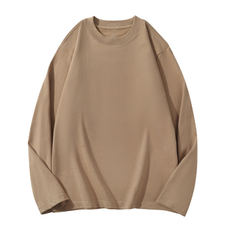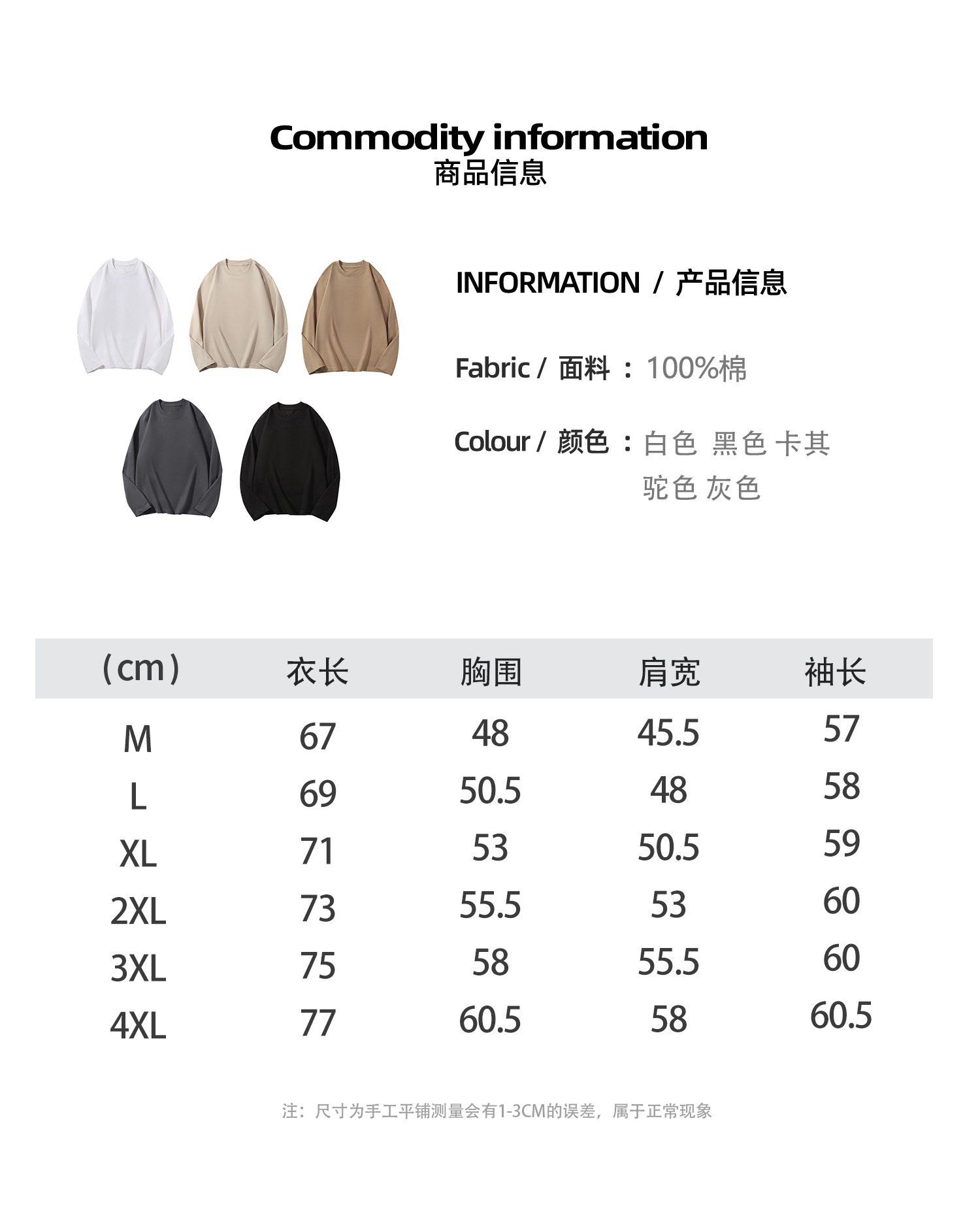 가을과 겨울 남자 긴팔 티셔츠 솔리드 컬러 샌딩 캐주얼 올매치 플러스 사이즈 느슨한 라운드 넥 풀오버 베이스 탑