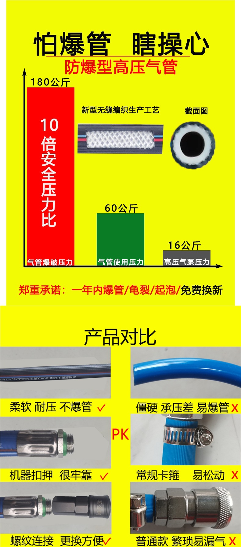 부동액 공기 압축기 고압 공기 파이프 폭발 방지 공기총 파이프 인플레이션 스프레이 페인트 8mm 진석 페인트 공기 펌프 호스스토어 가기