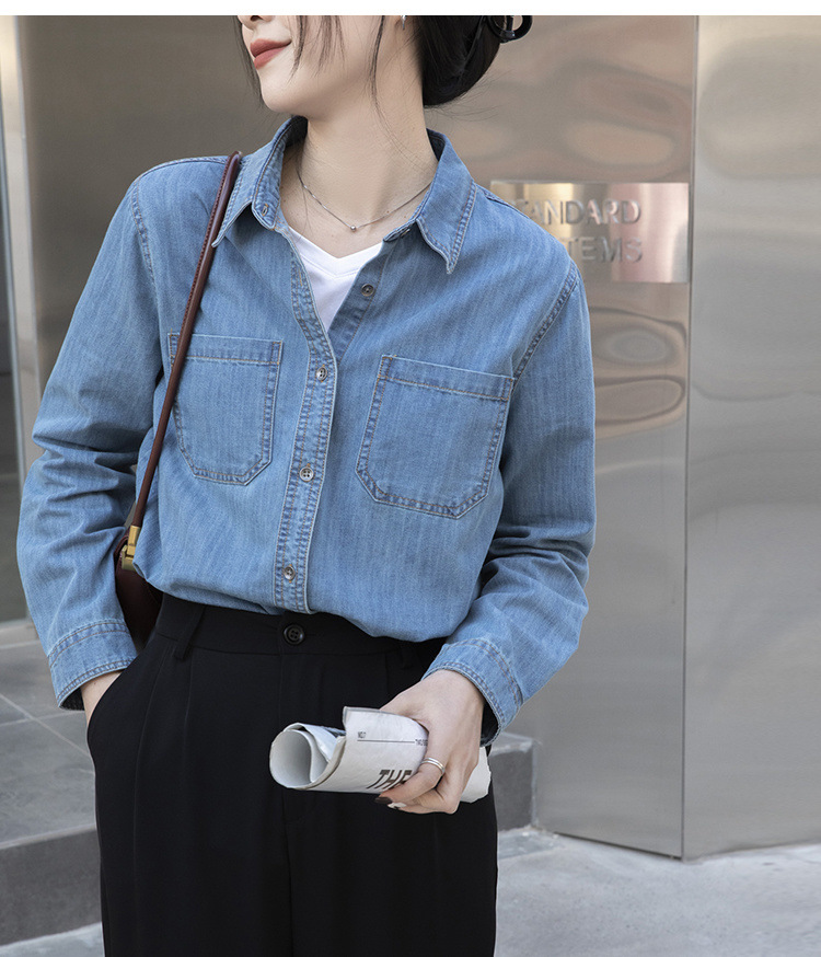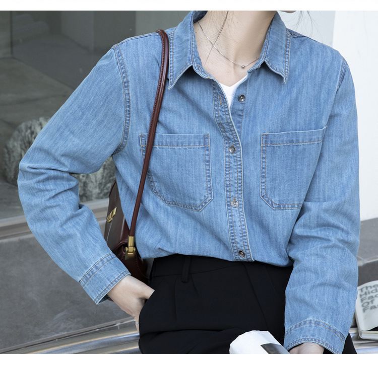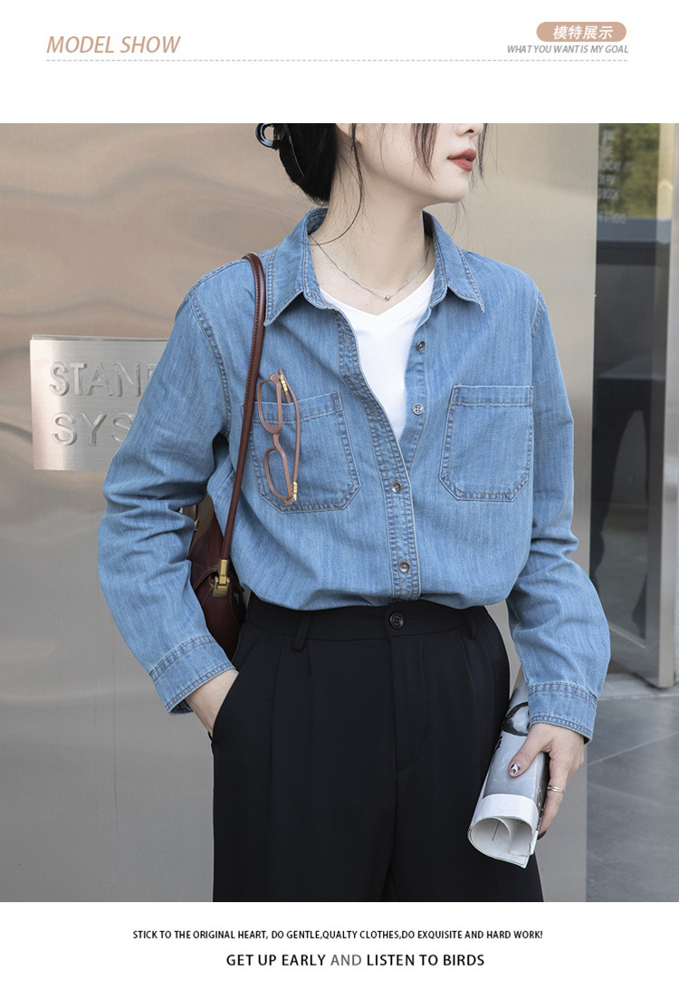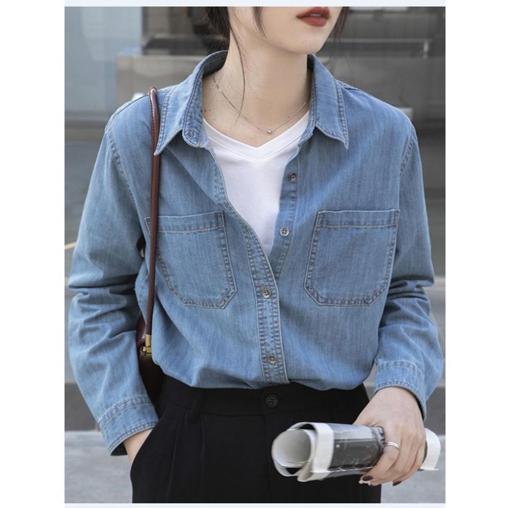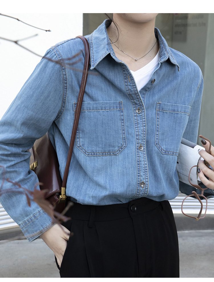 100% 순면 데님 셔츠 여성용 중간 길이의 복고풍 느슨한 2025 봄 및 가을 신형 내복 외부 착용 고급 재킷스토어 가기