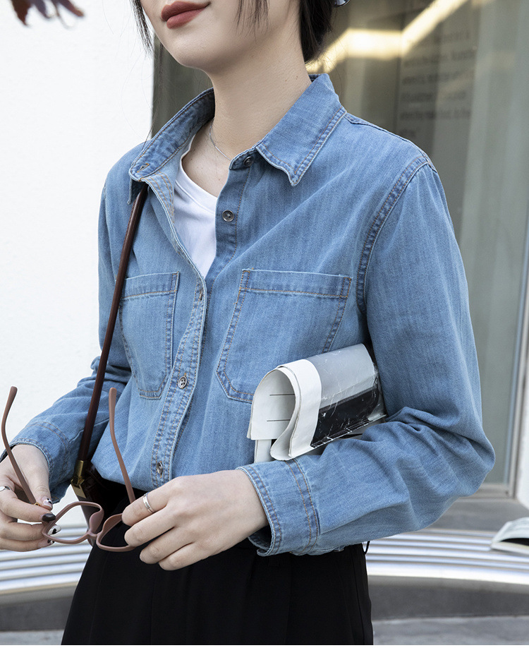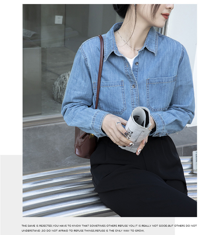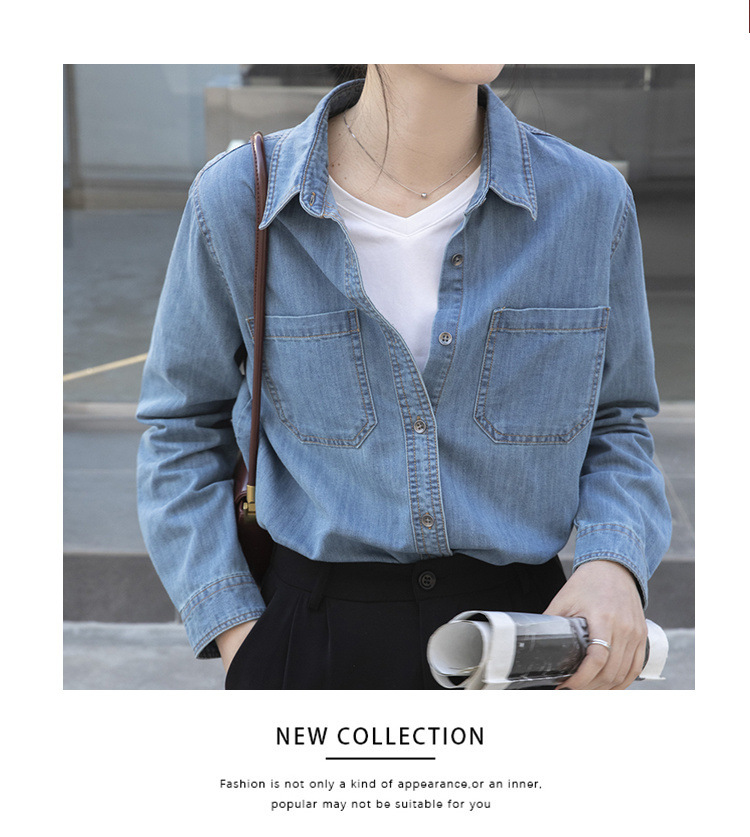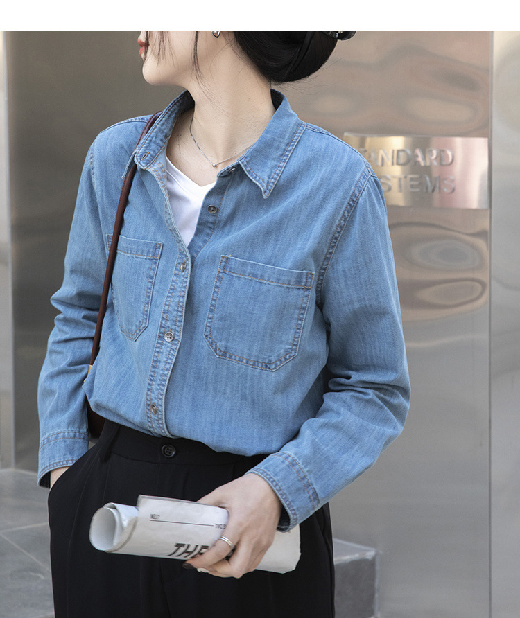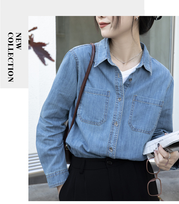 100% 순면 데님 셔츠 여성용 중간 길이의 복고풍 느슨한 2025 봄 및 가을 신형 내복 외부 착용 고급 재킷스토어 가기