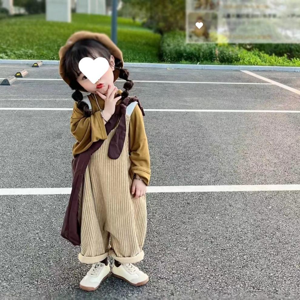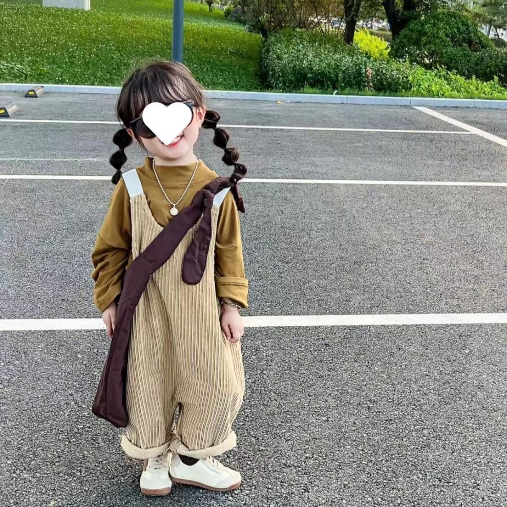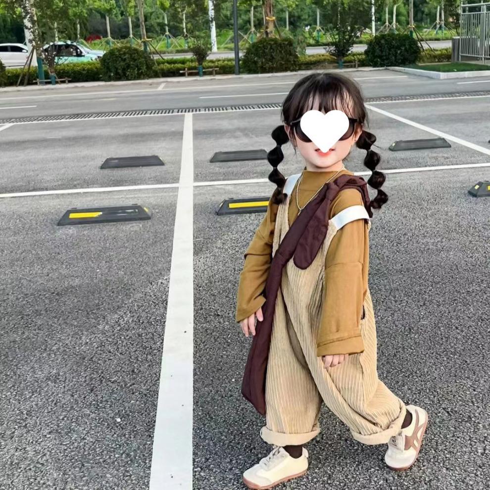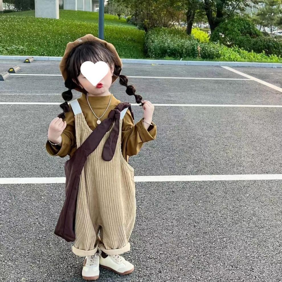 소녀 멜빵 세트 2025 봄 새로운 학술 스타일 바닥 셔츠 티셔츠 어린이 서양식 느슨한 멜빵스토어 가기