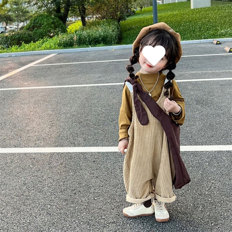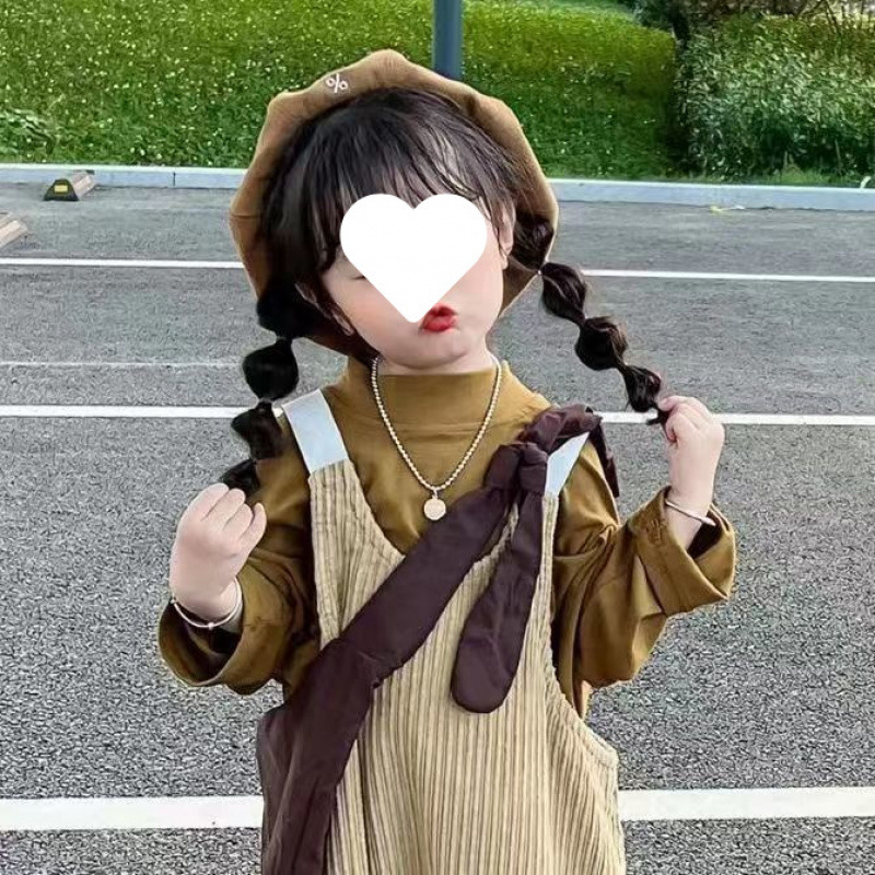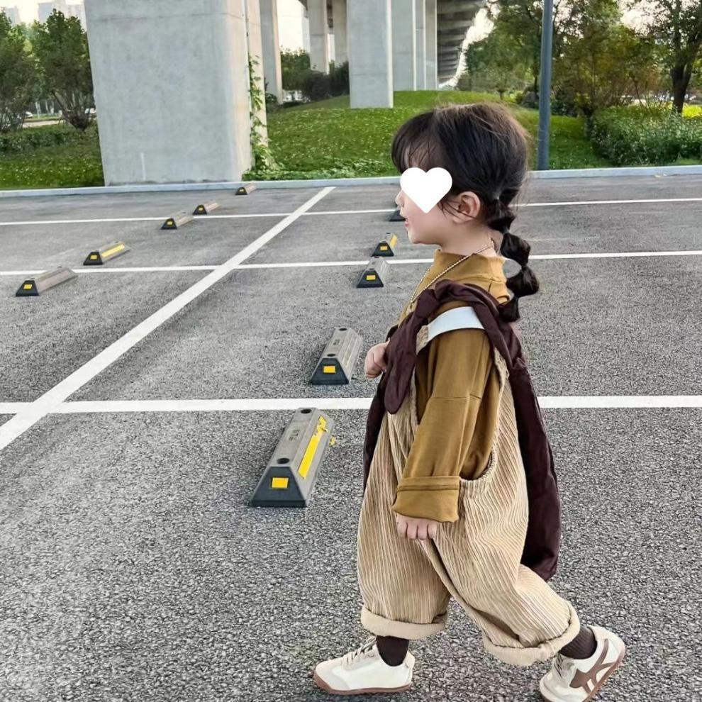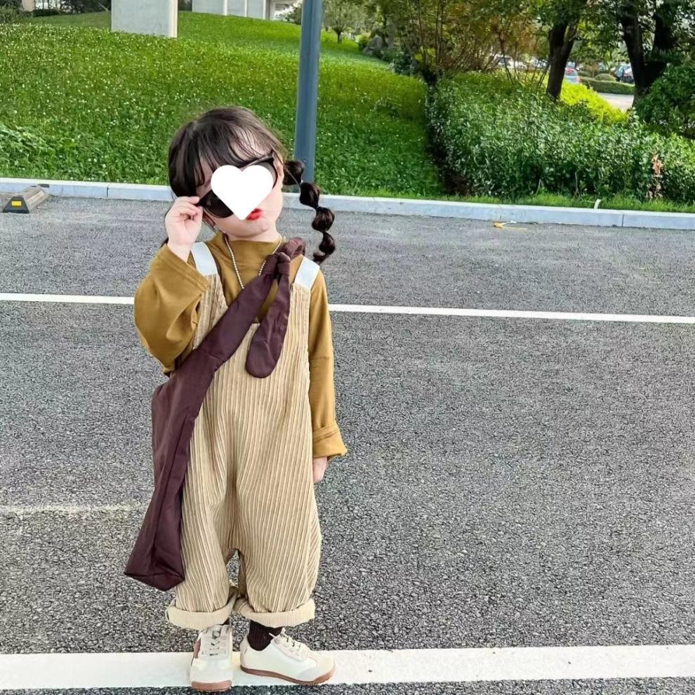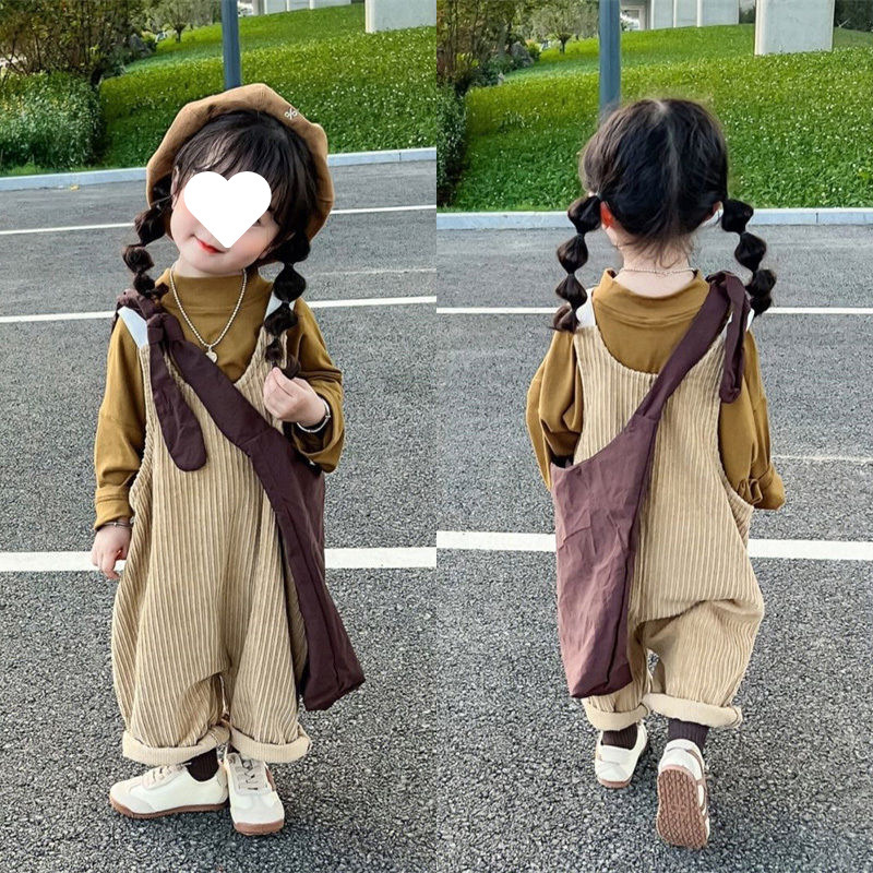 소녀 멜빵 세트 2025 봄 새로운 학술 스타일 바닥 셔츠 티셔츠 어린이 서양식 느슨한 멜빵스토어 가기