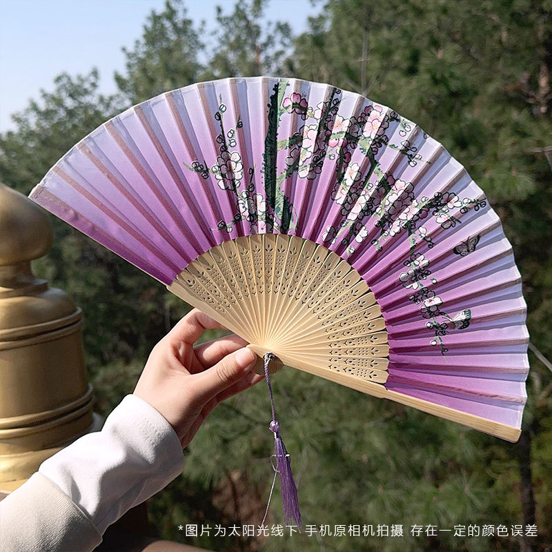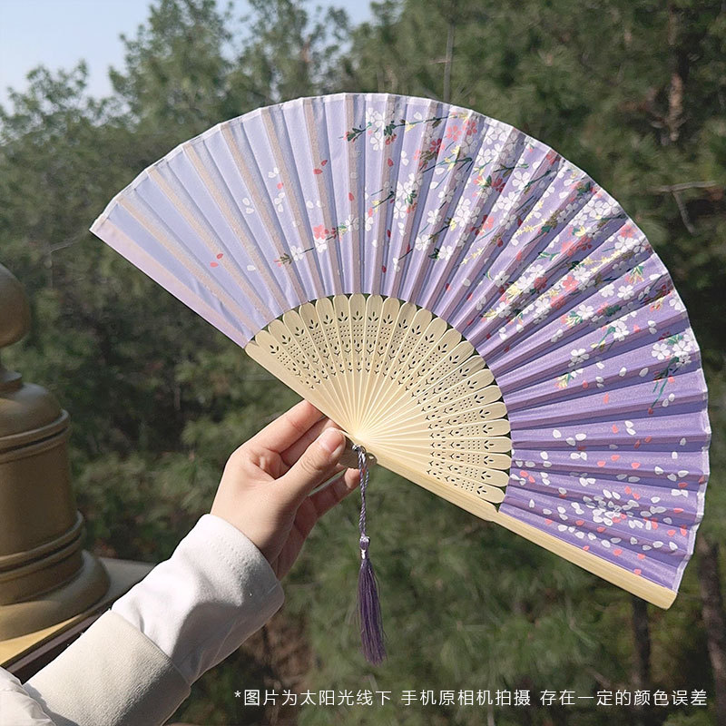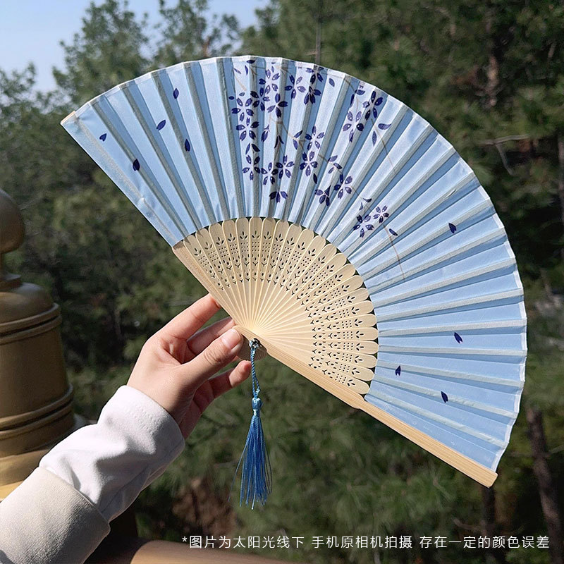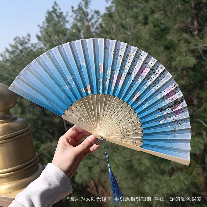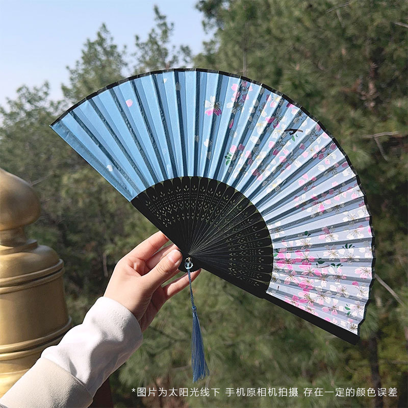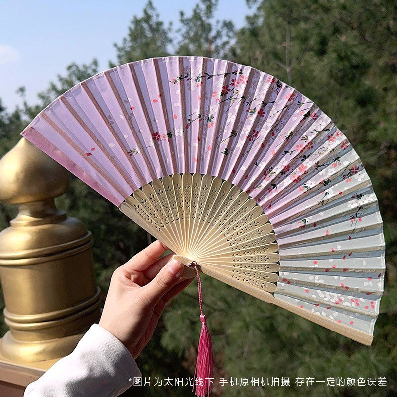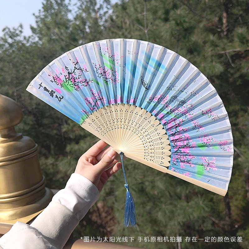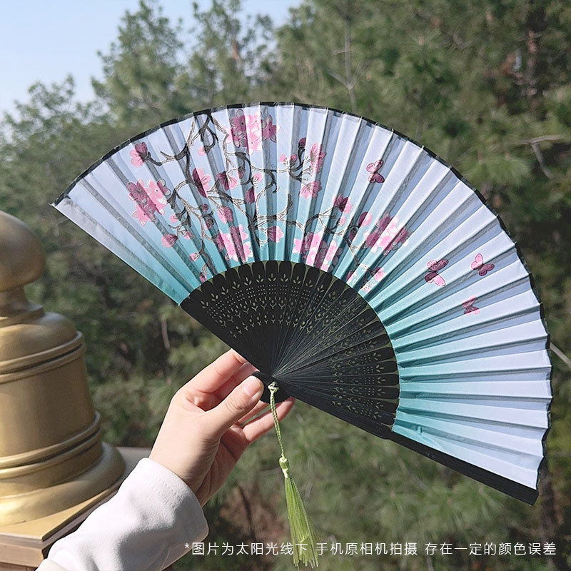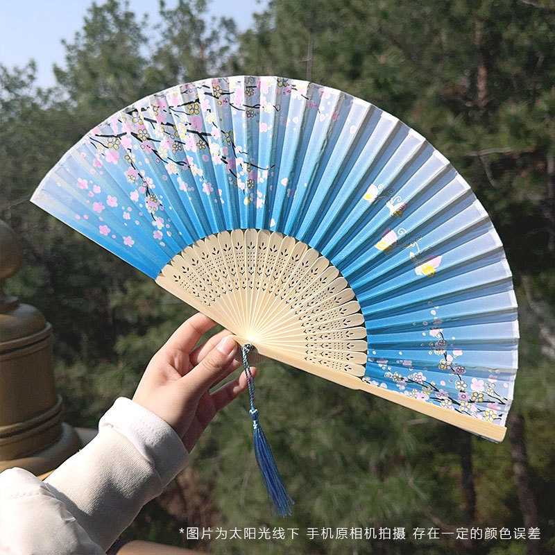 ✅고대 스타일 접는 팬 여성 실크 천 작은 팬 중국 스타일 대나무 공예 선물 팬 일본 스타일 접는 클래식 댄스 팬스토어 가기