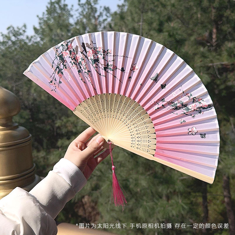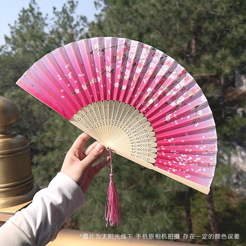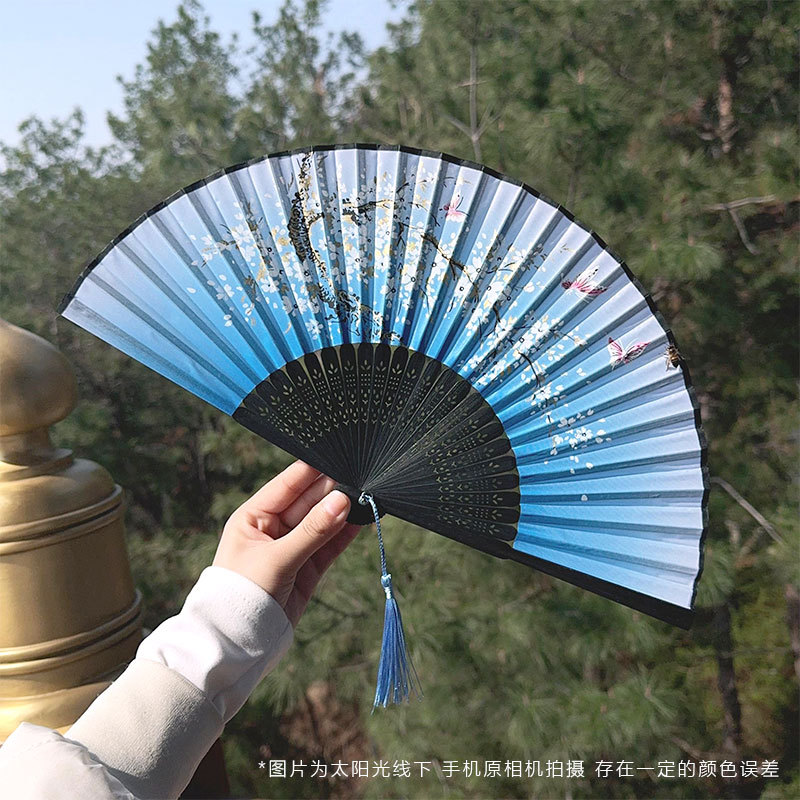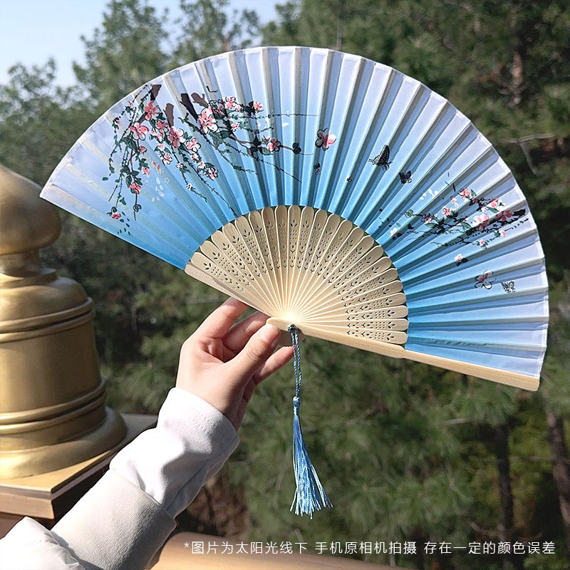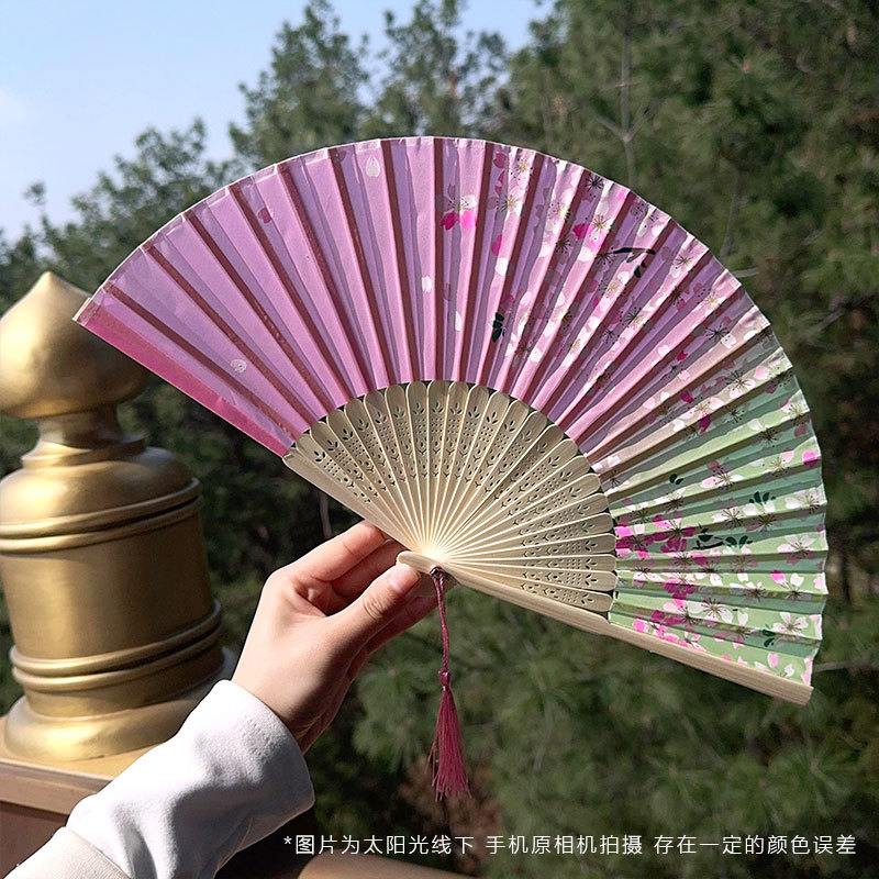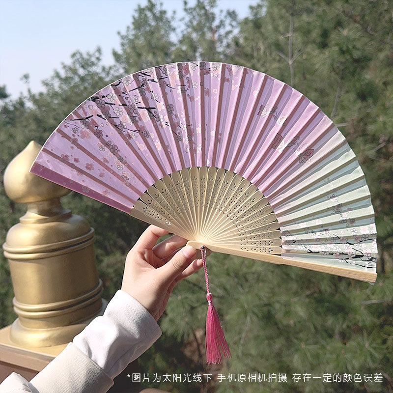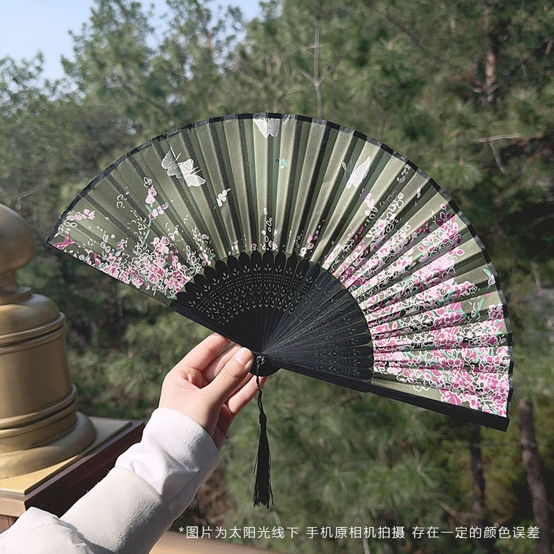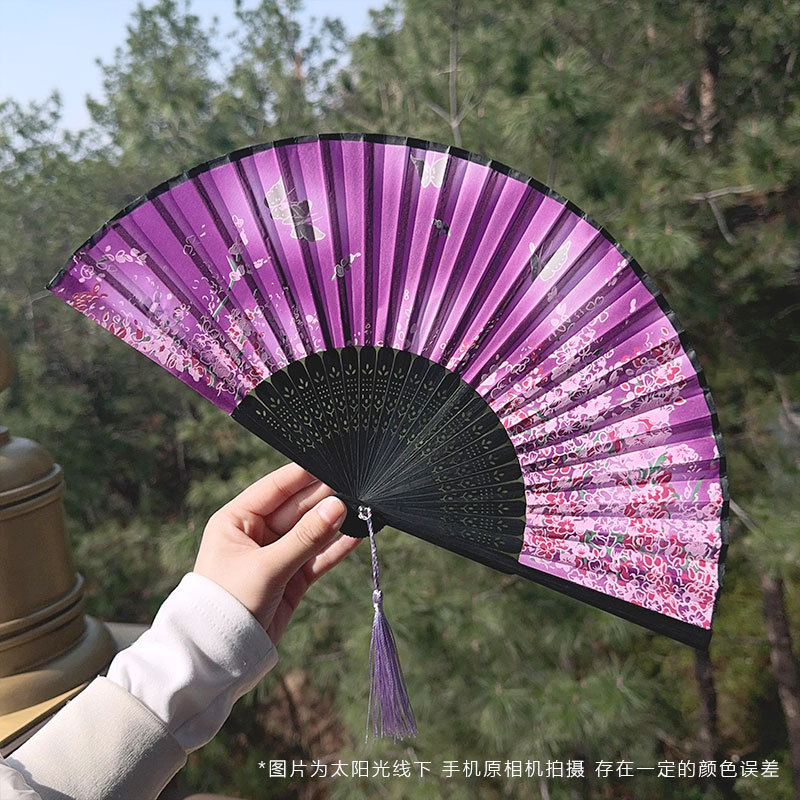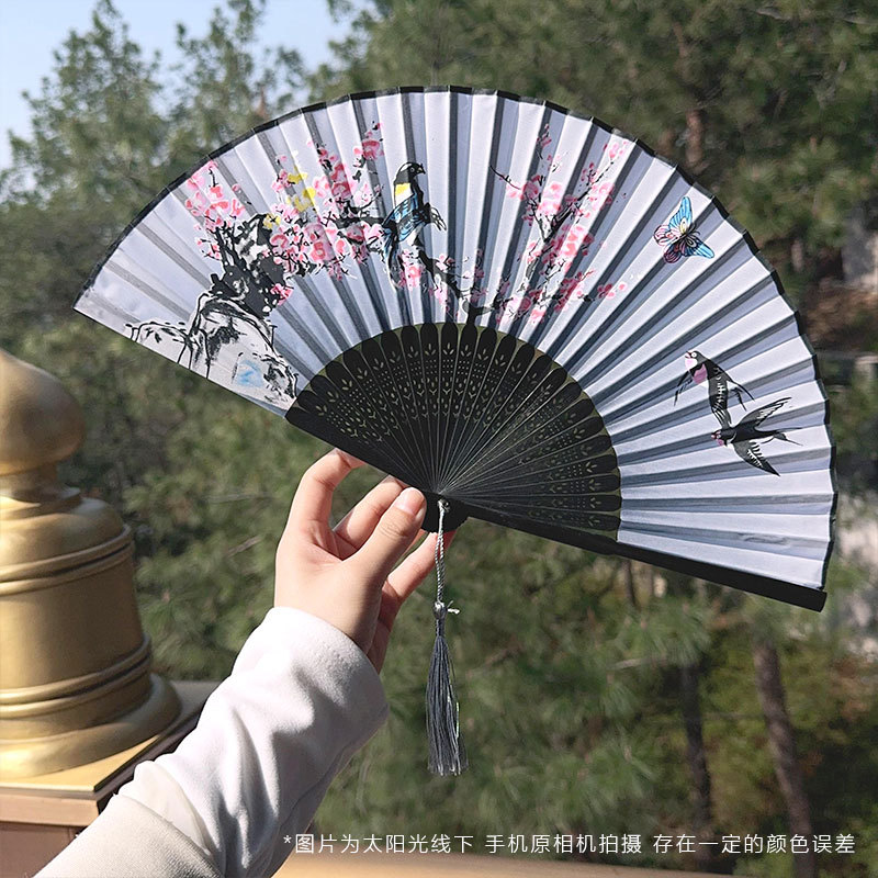✅고대 스타일 접는 팬 여성 실크 천 작은 팬 중국 스타일 대나무 공예 선물 팬 일본 스타일 접는 클래식 댄스 팬스토어 가기