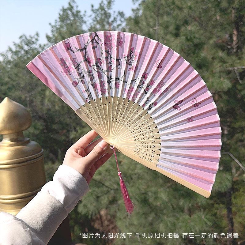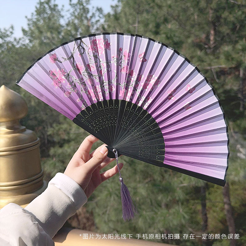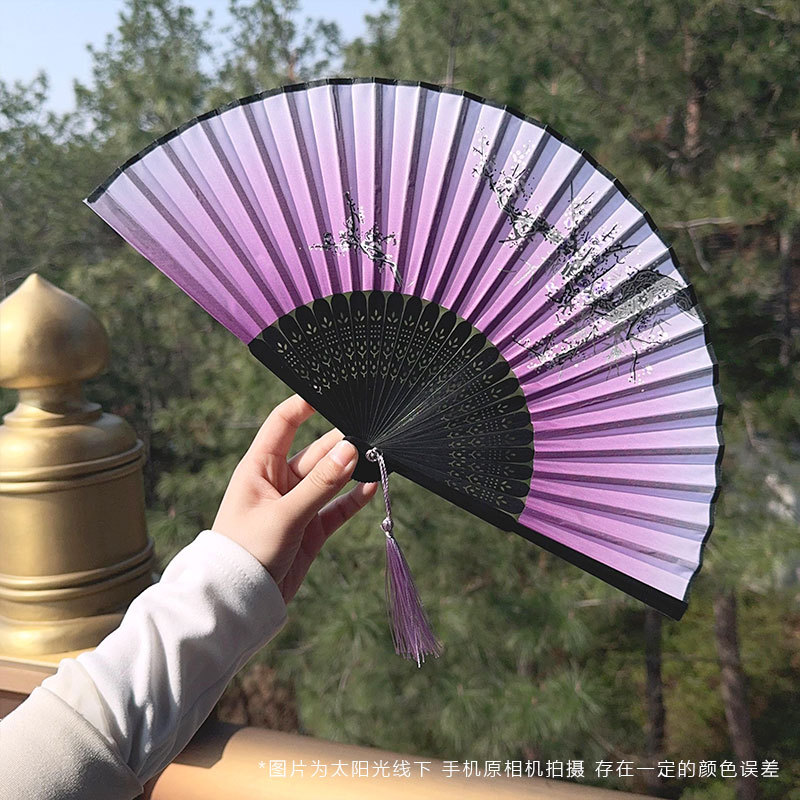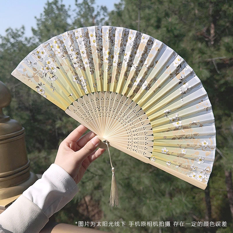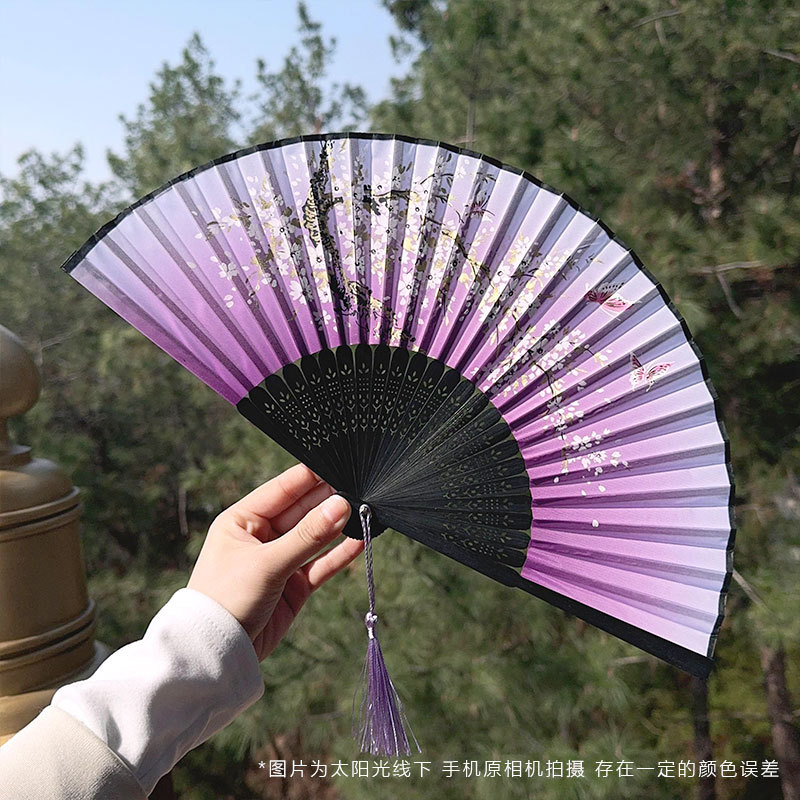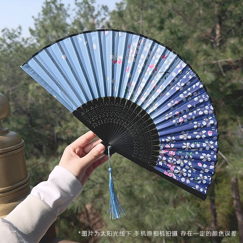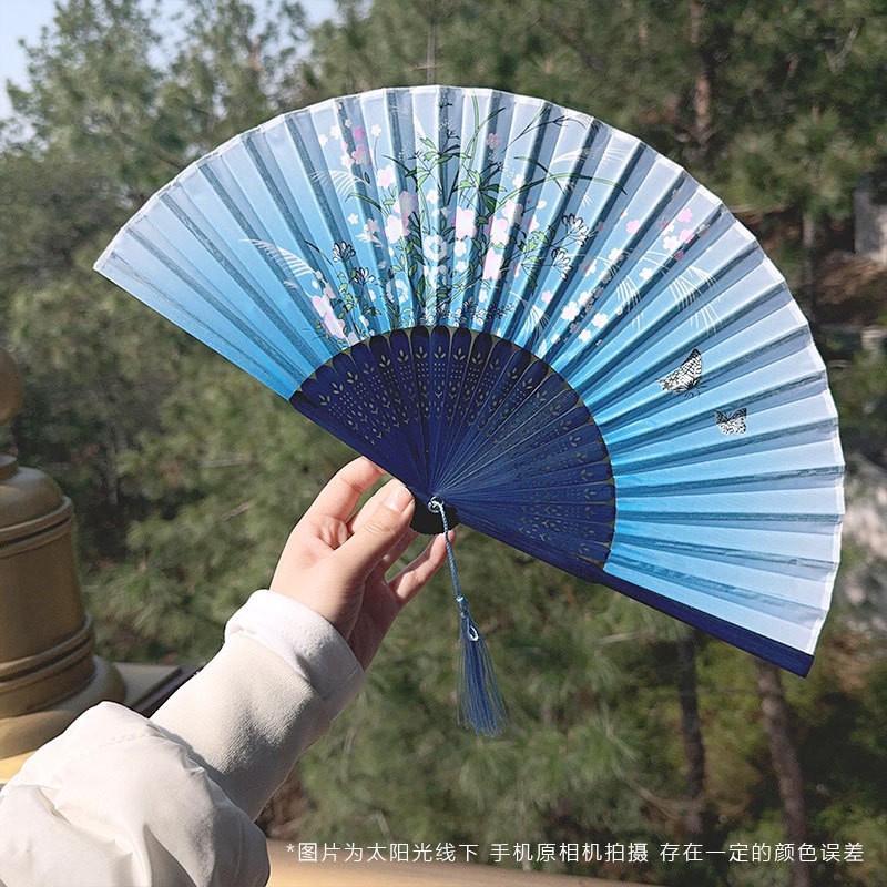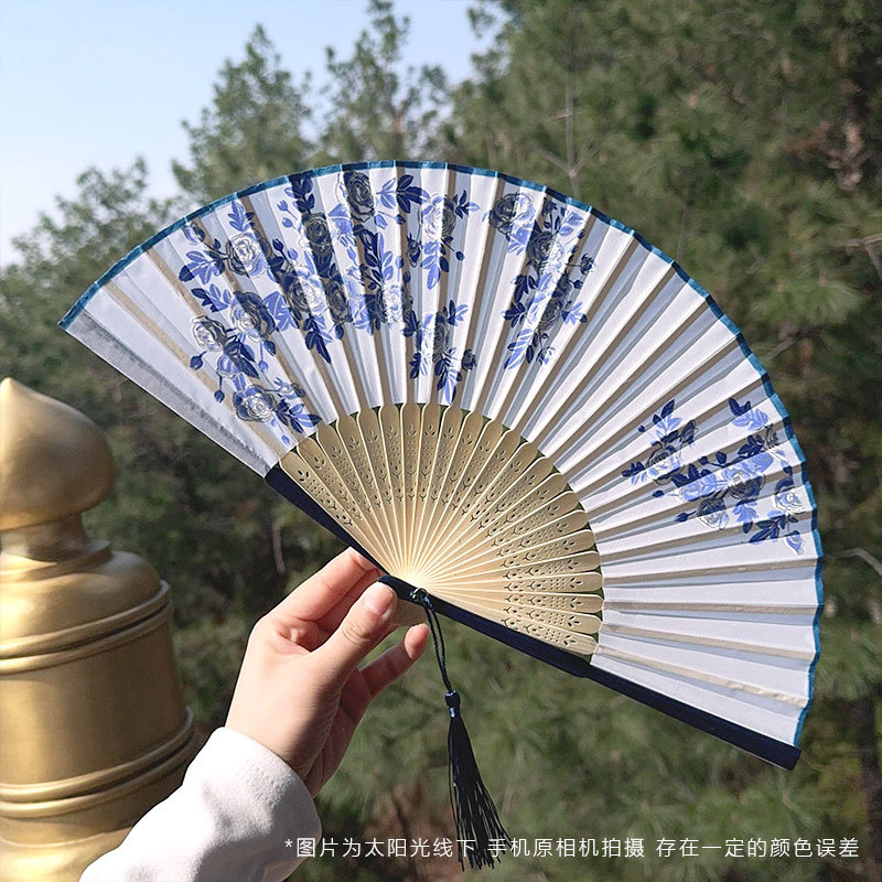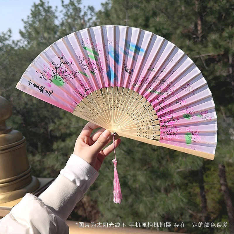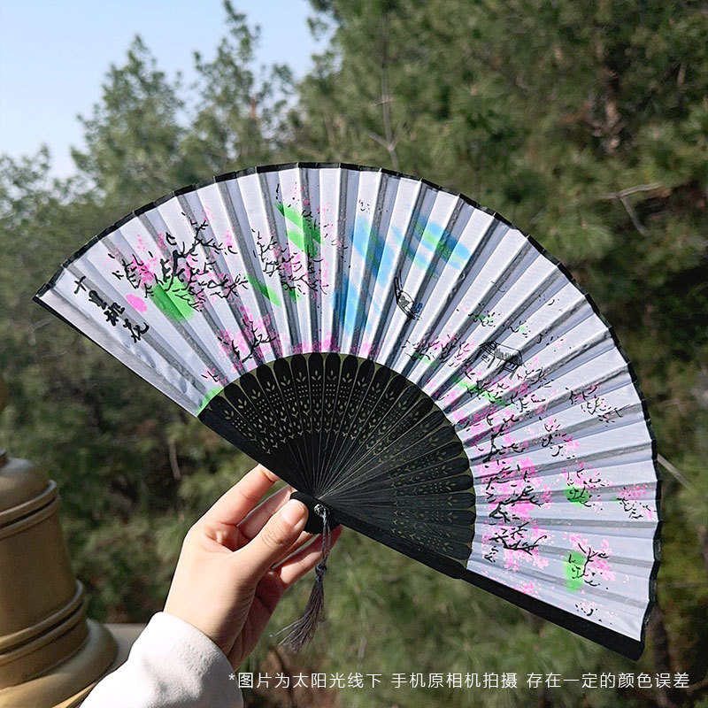✅고대 스타일 접는 팬 여성 실크 천 작은 팬 중국 스타일 대나무 공예 선물 팬 일본 스타일 접는 클래식 댄스 팬스토어 가기