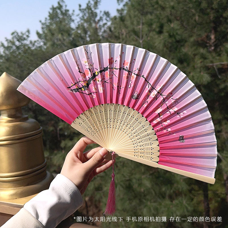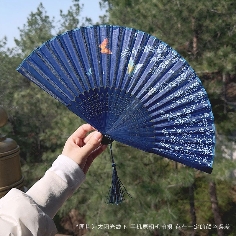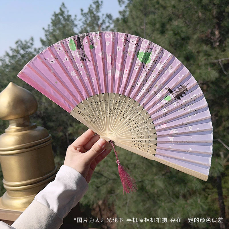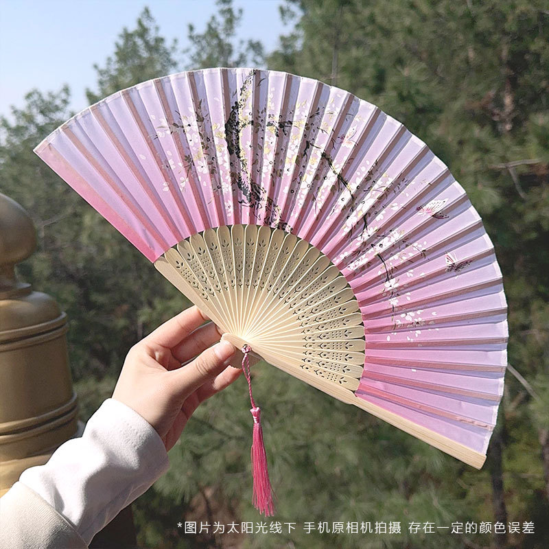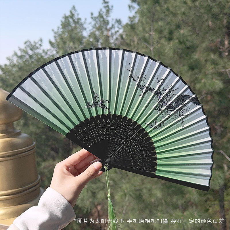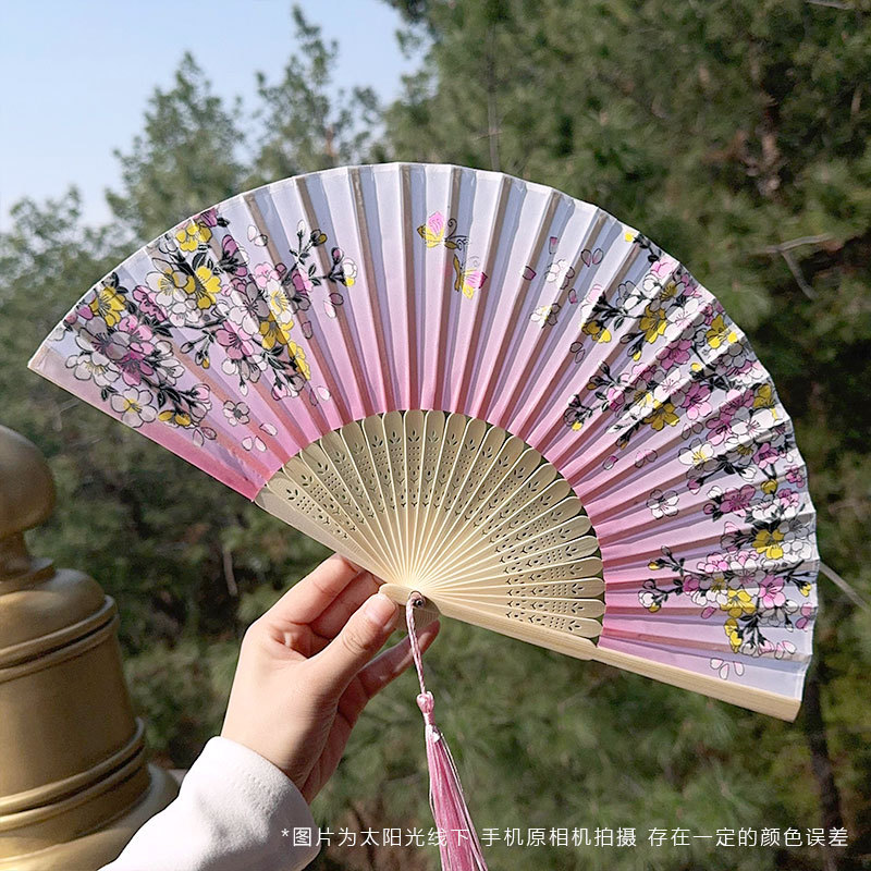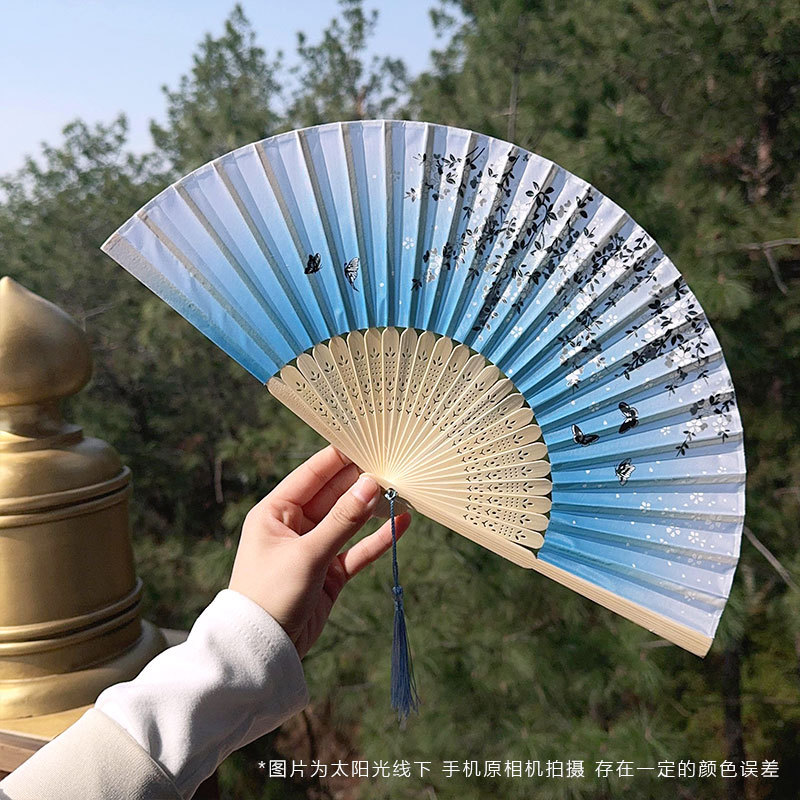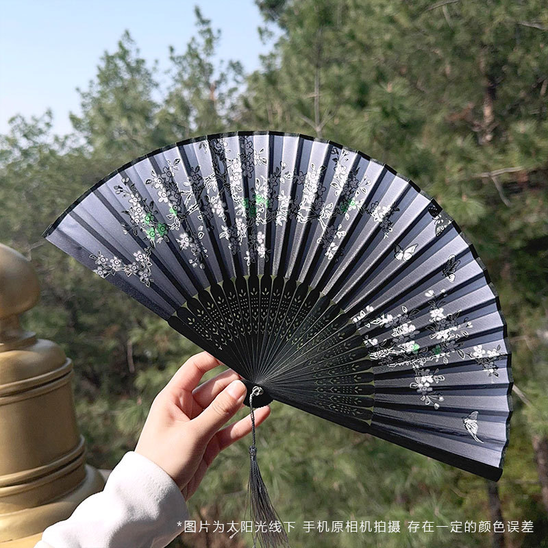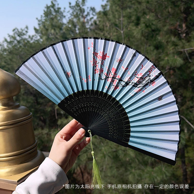 ✅고대 스타일 접는 팬 여성 실크 천 작은 팬 중국 스타일 대나무 공예 선물 팬 일본 스타일 접는 클래식 댄스 팬스토어 가기