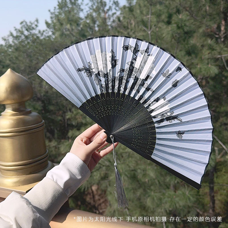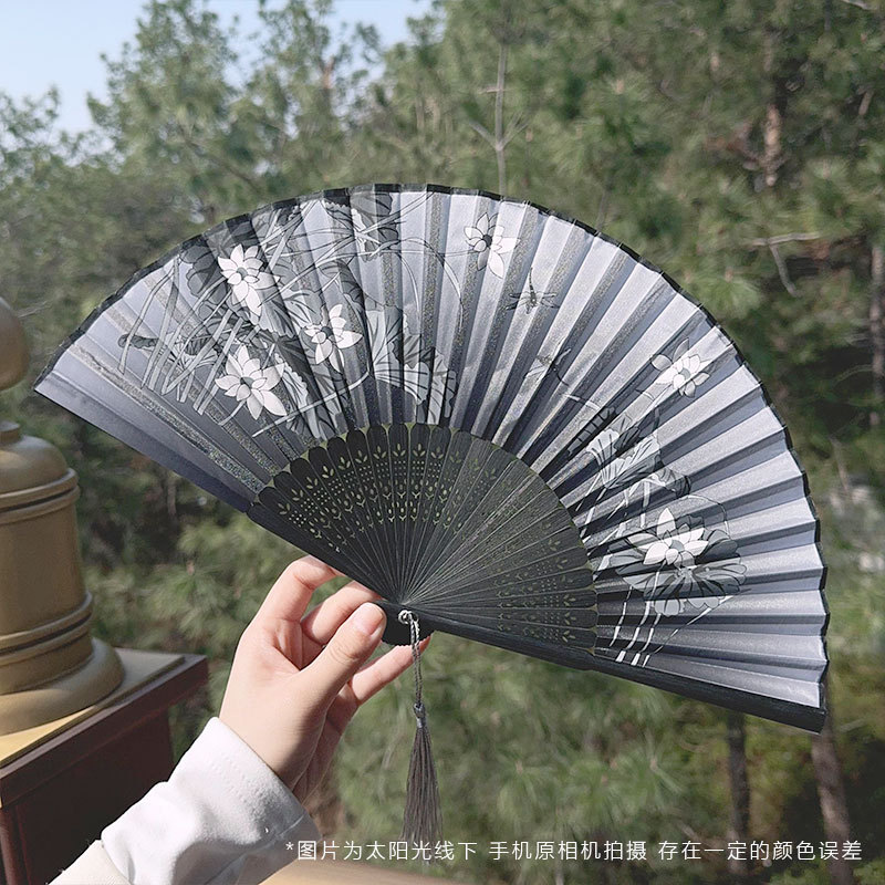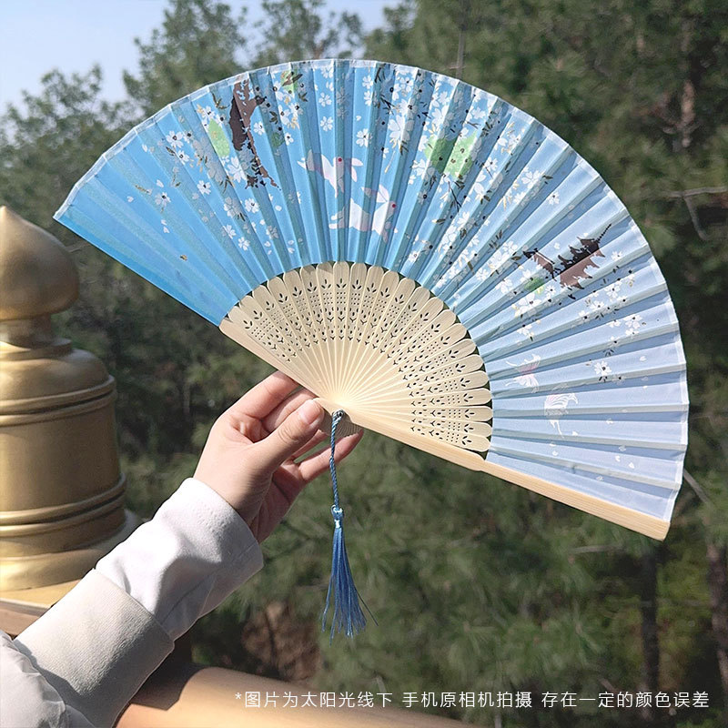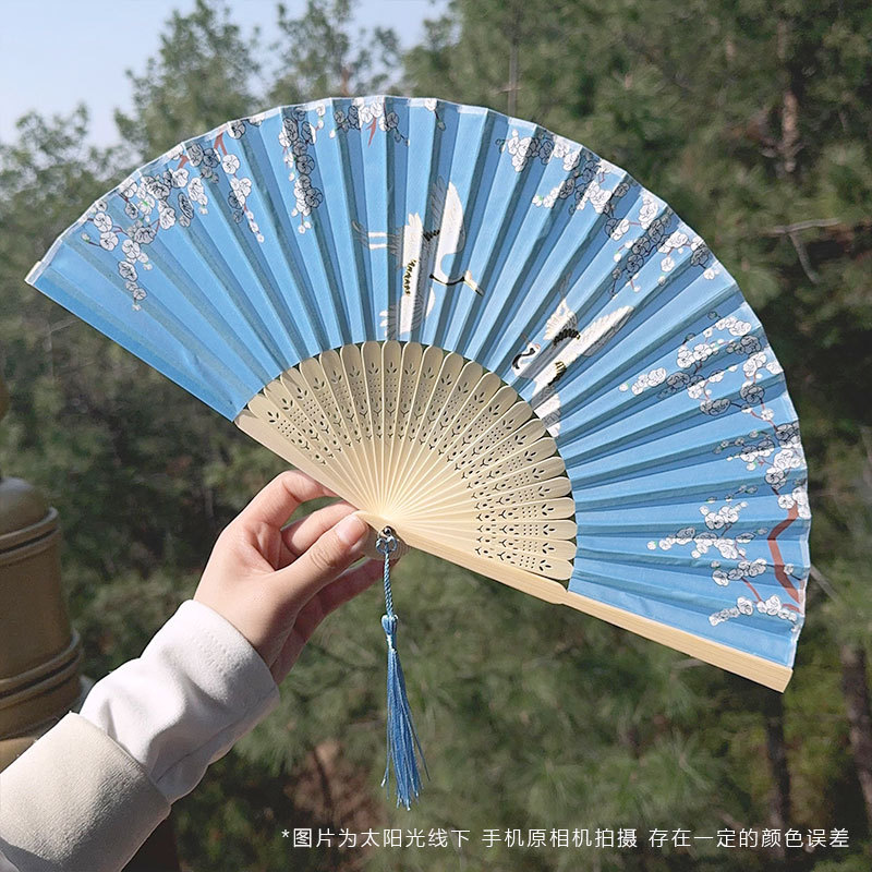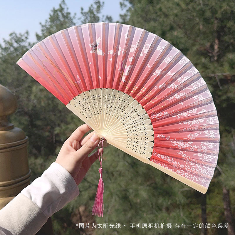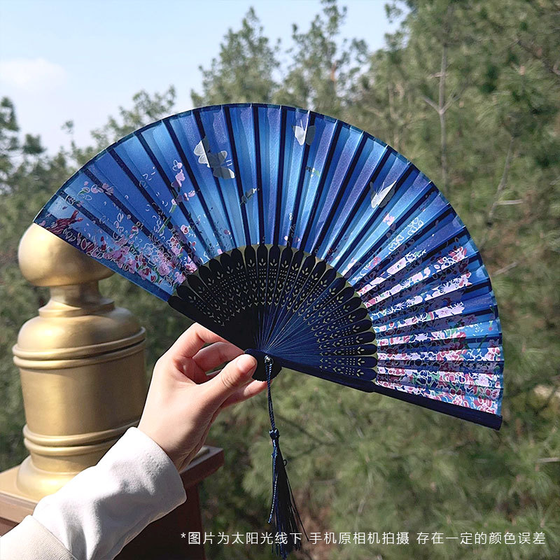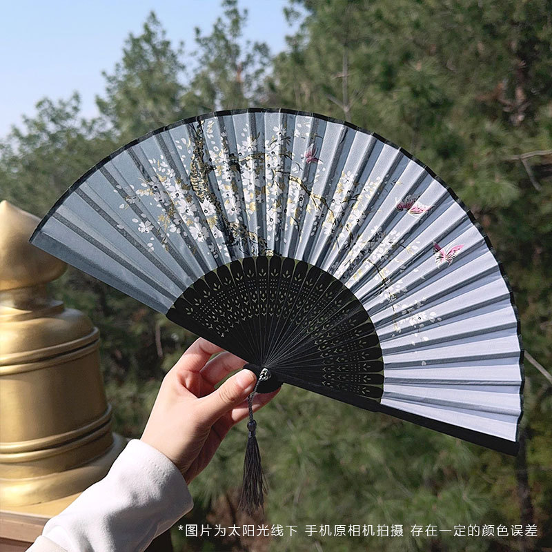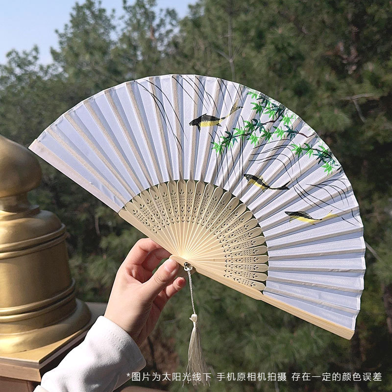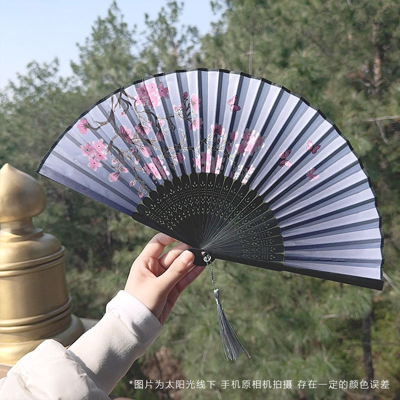 ✅고대 스타일 접는 팬 여성 실크 천 작은 팬 중국 스타일 대나무 공예 선물 팬 일본 스타일 접는 클래식 댄스 팬스토어 가기