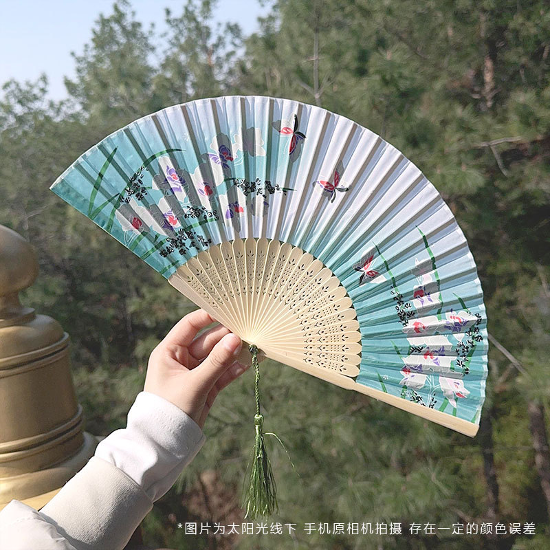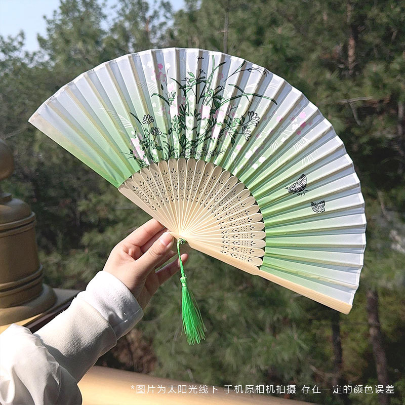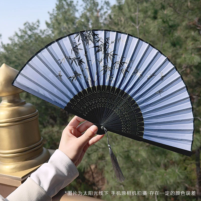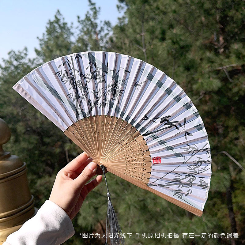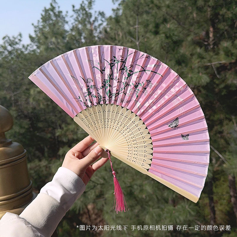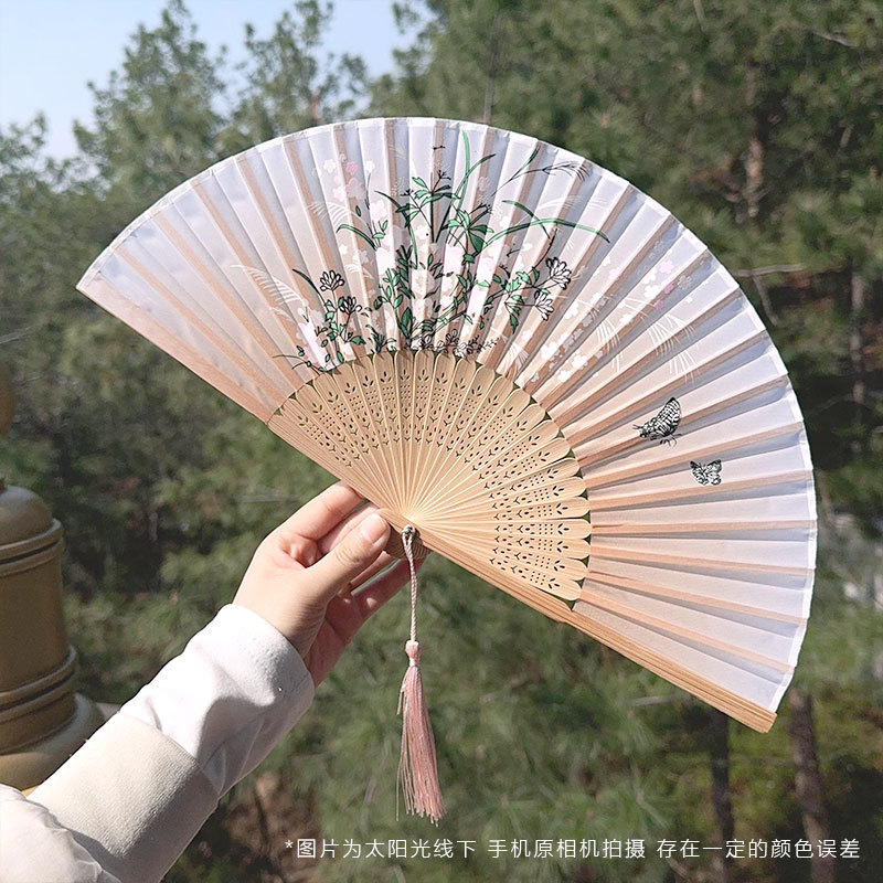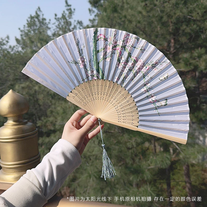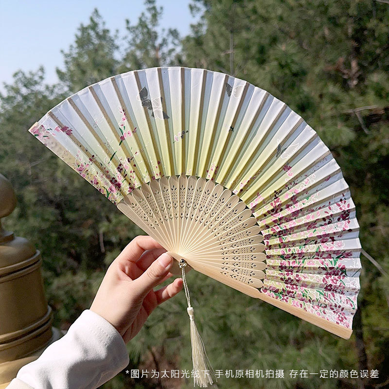 ✅고대 스타일 접는 팬 여성 실크 천 작은 팬 중국 스타일 대나무 공예 선물 팬 일본 스타일 접는 클래식 댄스 팬