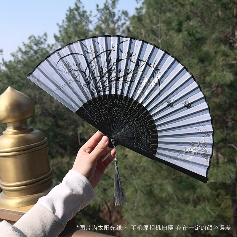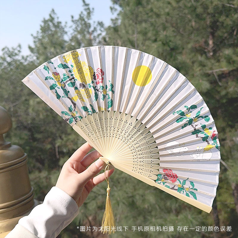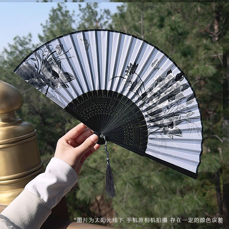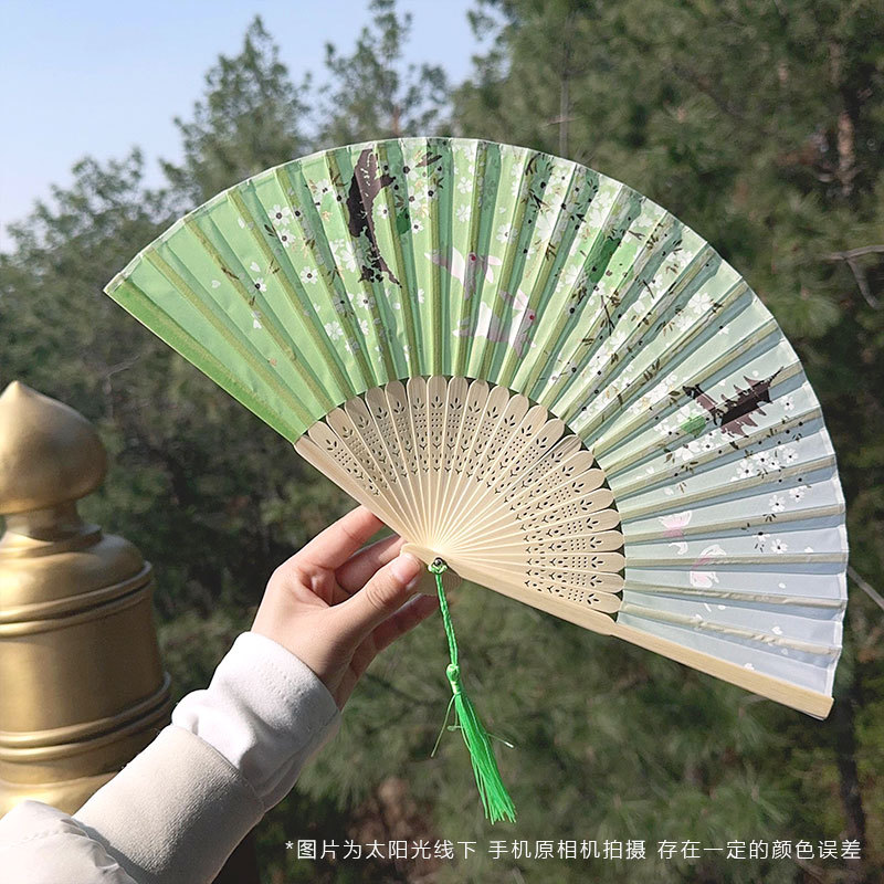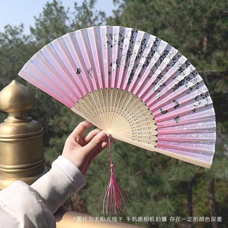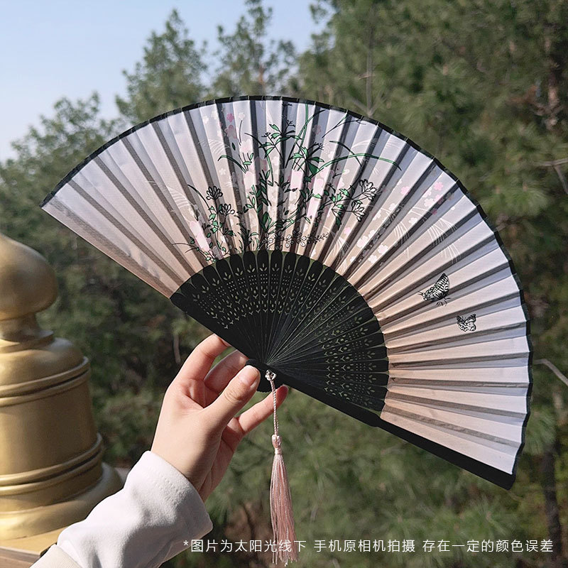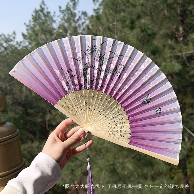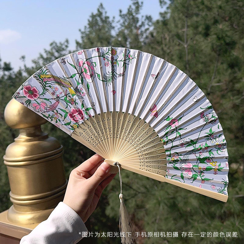 ✅고대 스타일 접는 팬 여성 실크 천 작은 팬 중국 스타일 대나무 공예 선물 팬 일본 스타일 접는 클래식 댄스 팬