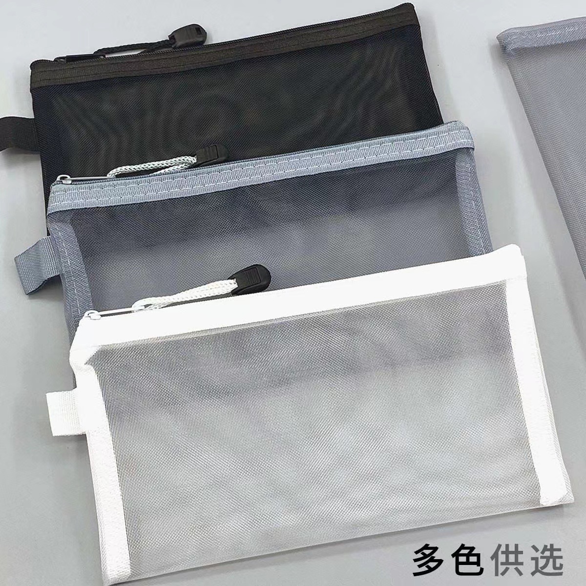 학생들을위한 간단한 투명 메쉬 펜 가방 보관 가방 시험 휴대용 펜 가방 대용량 문구 가방 도매스토어 가기