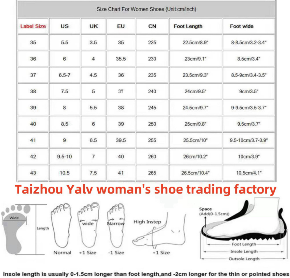 尺码表36-43码数