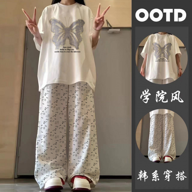 • 카우보이 나비#흰색 티셔츠 + 강아지 와이드 팬츠