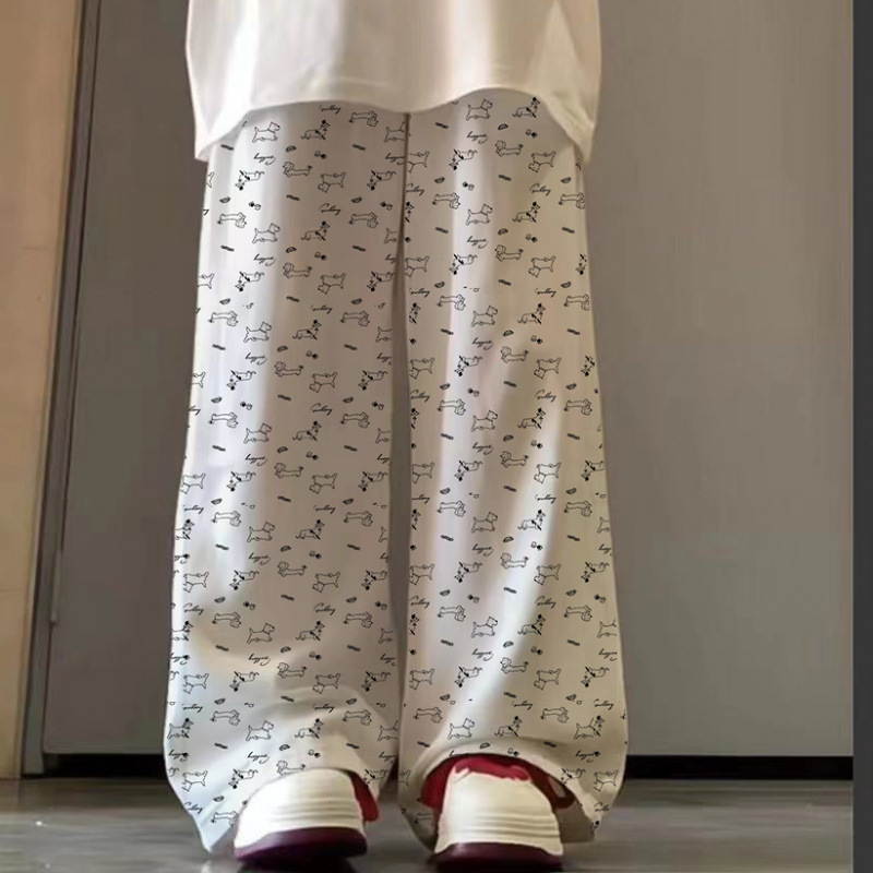 • 도그 프린트 와이드 팬츠 [포켓 있음]