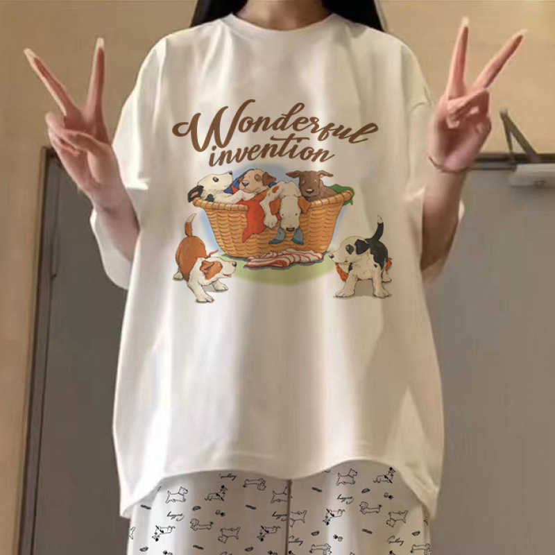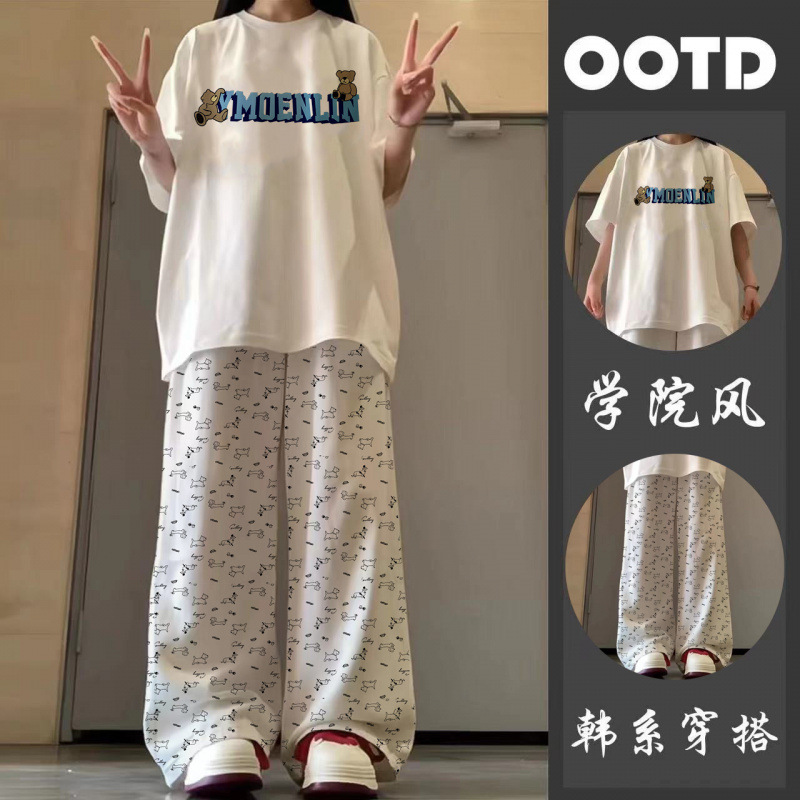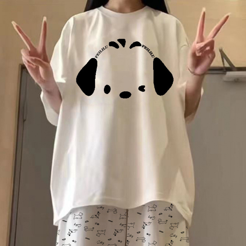 • 만화 개 # 흰색 티셔츠 + 강아지 와이드 팬츠