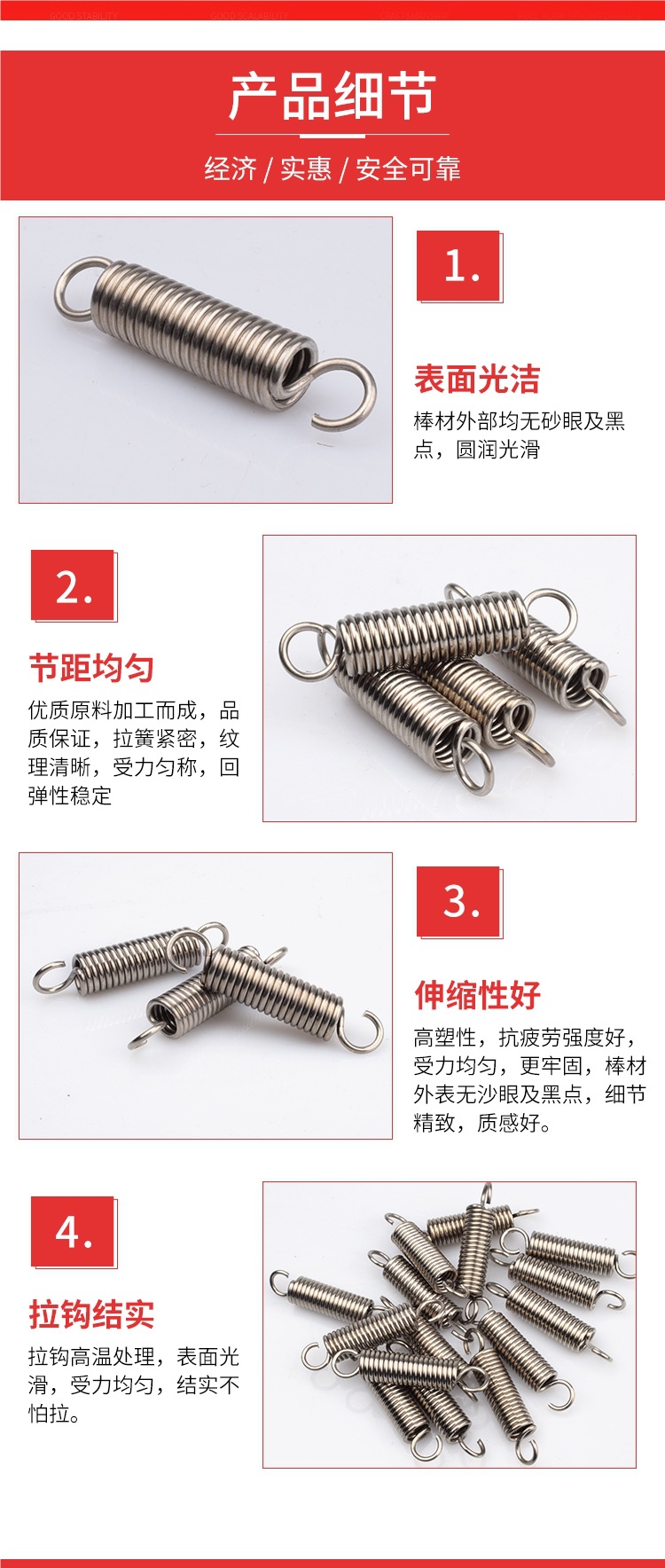 • 맞춤형(모든 스프링은 S 후크 개구부입니다)