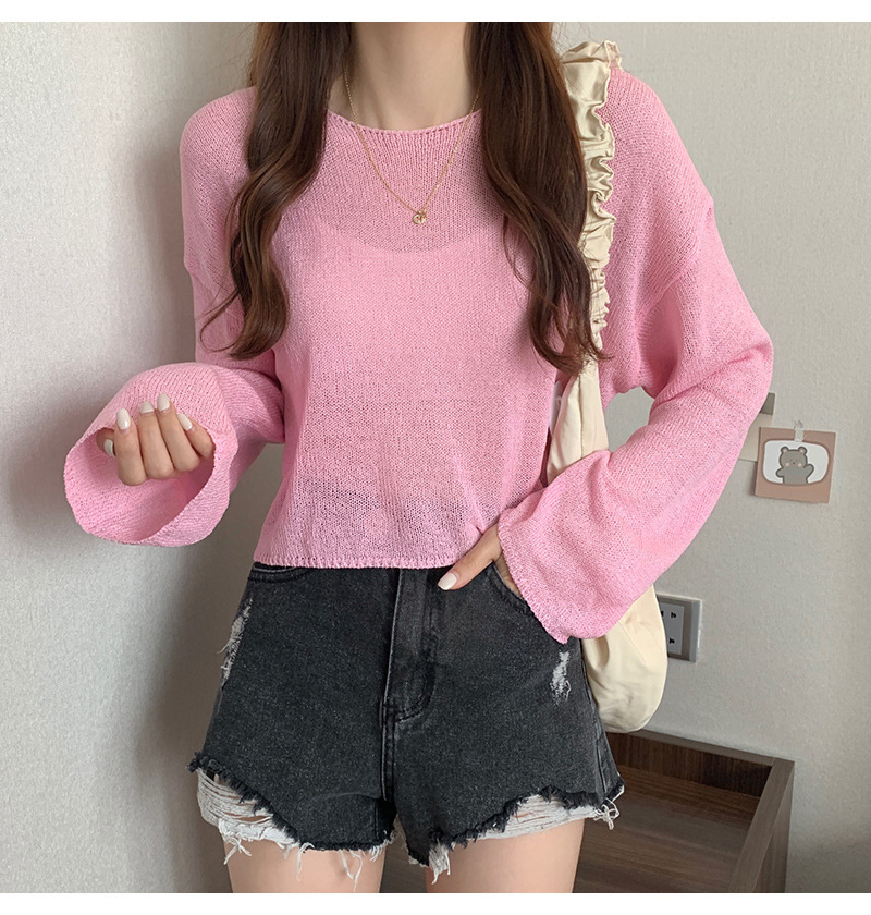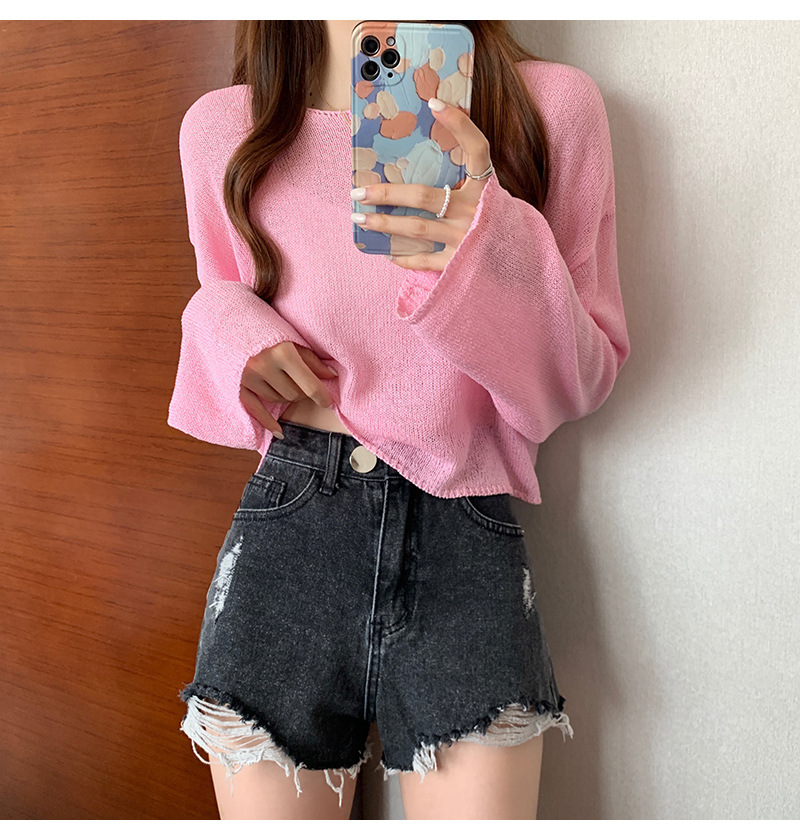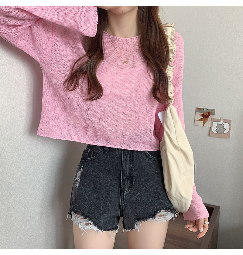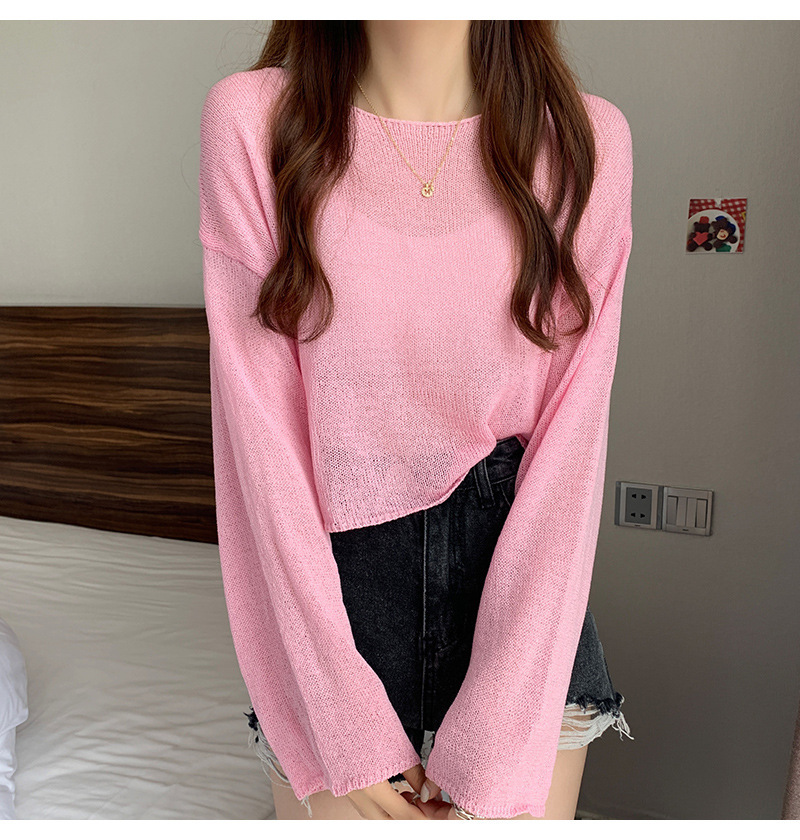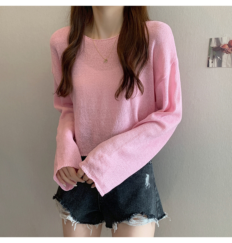아이스 실크 선 스크린 블라우스 니트 여성용 여름 얇은 흰색 긴팔 슬립 스커트 외부 짧은 메쉬 초가을 탑스토어 가기