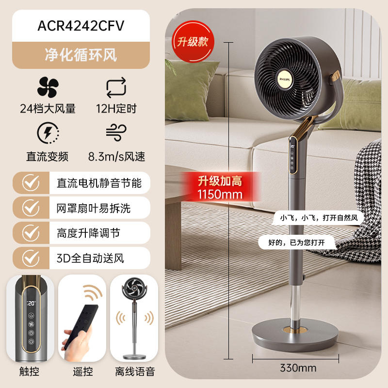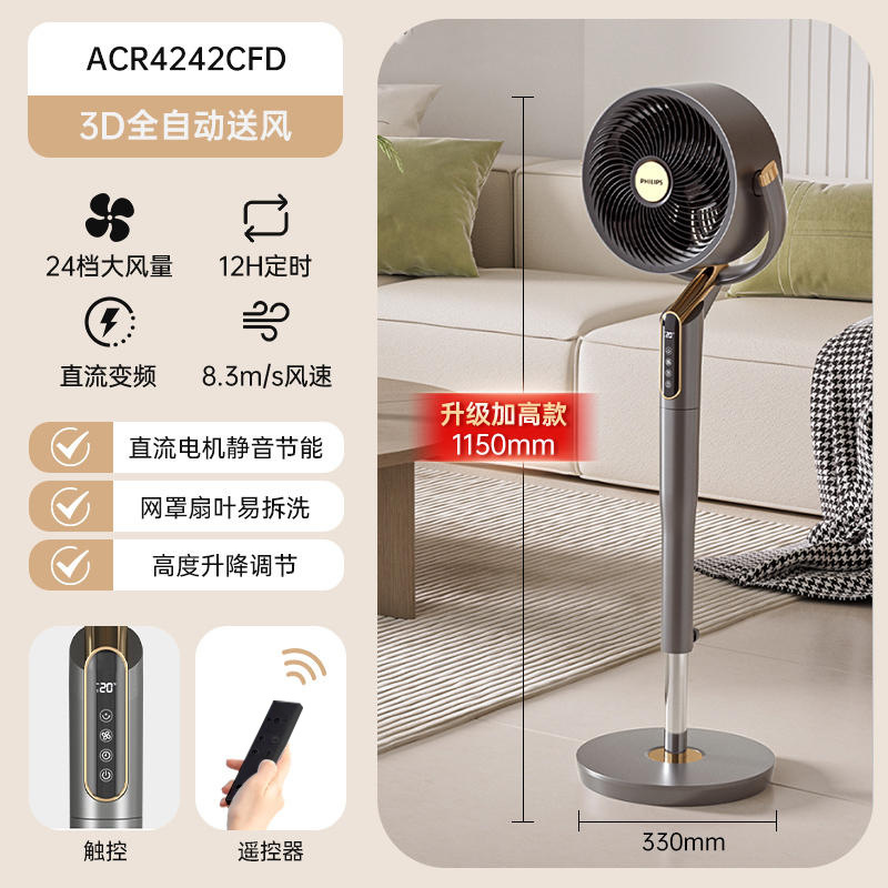 공기 순환 팬 지능형 음성 전기 팬 라이트 톤 원격 제어 테이블 수직 데스크탑 3D 스테레오 바닥 팬