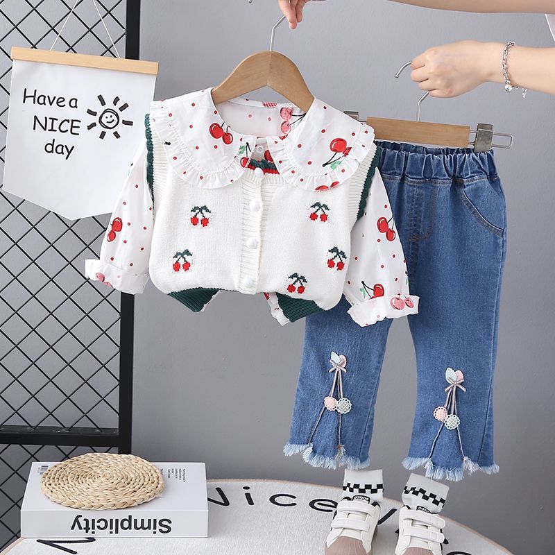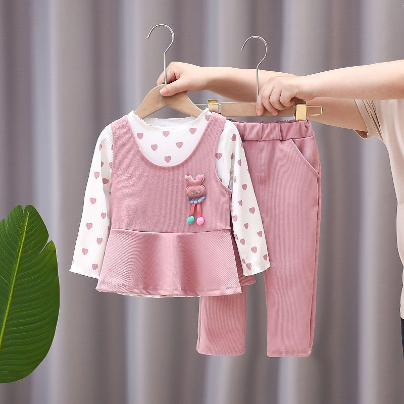 [1 천명 이상 반복 고객] 여성 아기 봄 · 가을 긴소매 한국 어린이 3 종 세트 1-2-5 세 소녀 가을 옷스토어 가기
