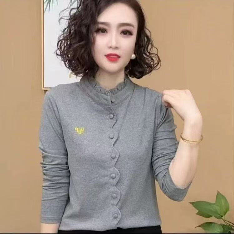 2025 년 봄 패션 기질 조커 긴 소매 풀오버 셔츠 밑바닥 연령을 줄이는 여성 재킷 티셔츠