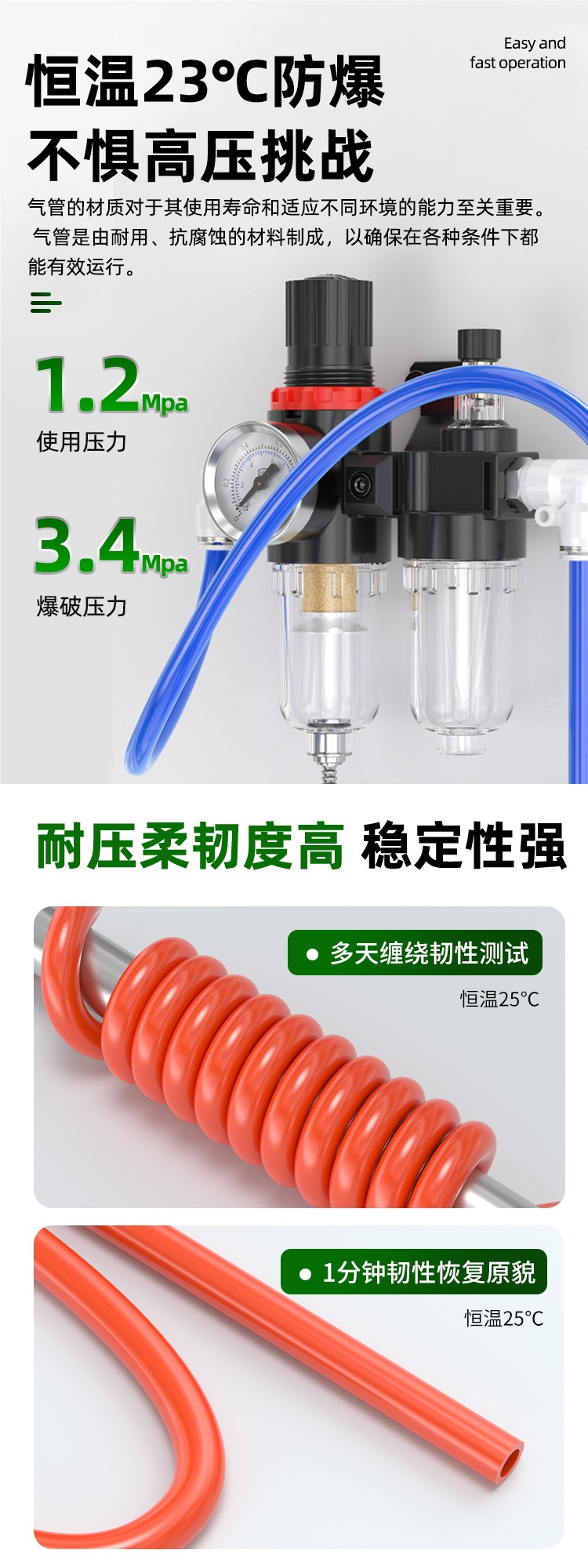 PU 공기 파이프 호스 공기 압축기 고압 방폭 호스 8/10/12mm 고온 투명 공압 압축 공기