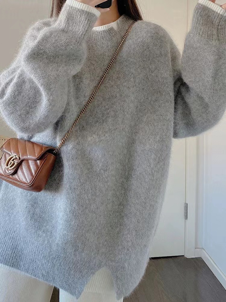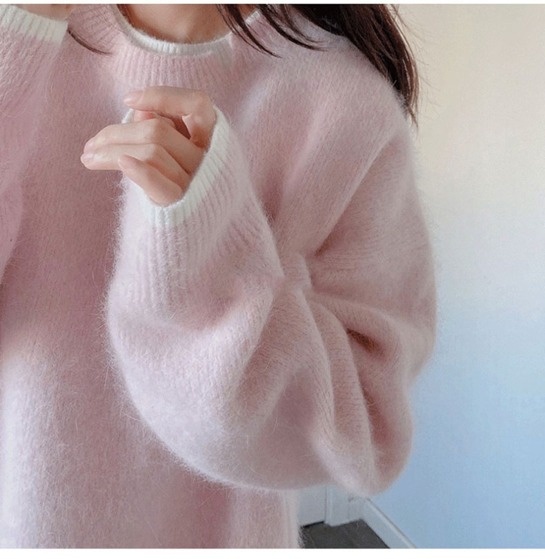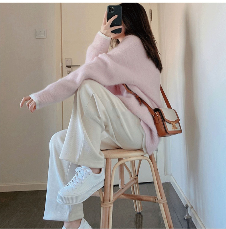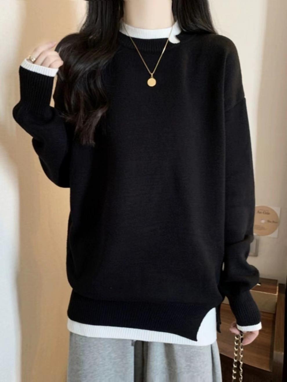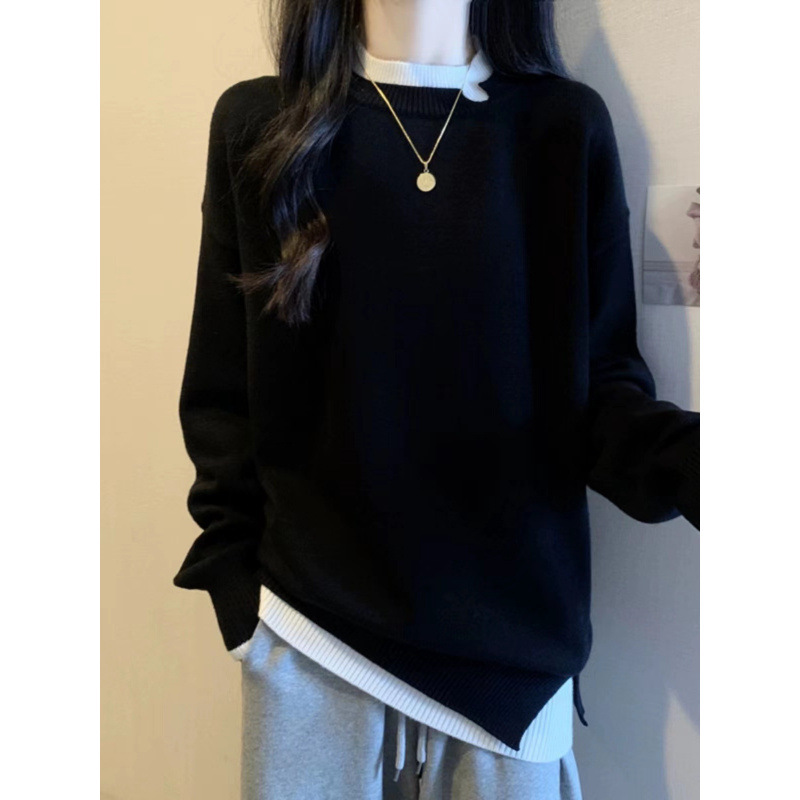 우아한 스웨터 여성의 봄과 가을 2024 새로운 느슨한 게으른 바람 캐시미어 가짜 투피스 니트 베이스 셔츠 탑스토어 가기