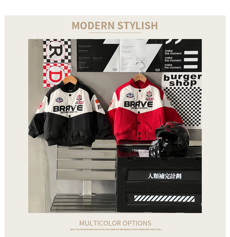 소년 야구 세트 코트 2025 년 봄과 가을 새로운 바이커 세트 아기 소녀 서양식 빨간 재킷 어린이 탑스토어 가기