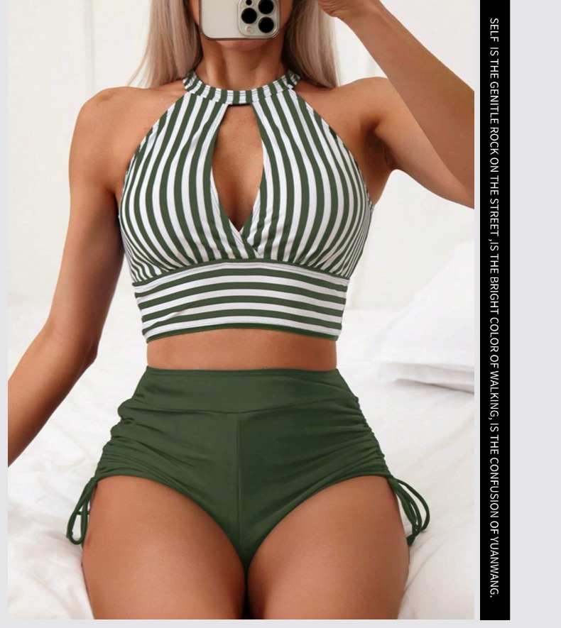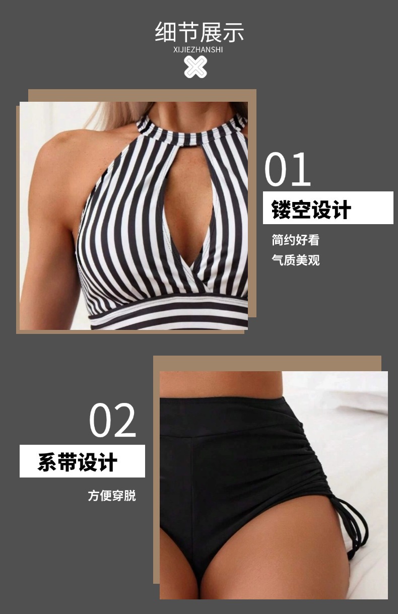 유럽과 미국의 수영복 국경 반 높이 칼라 딥 V 교수형 목 할로우 멀티 컬러 아마존 비키니 스트라이프 스파 수영복스토어 가기