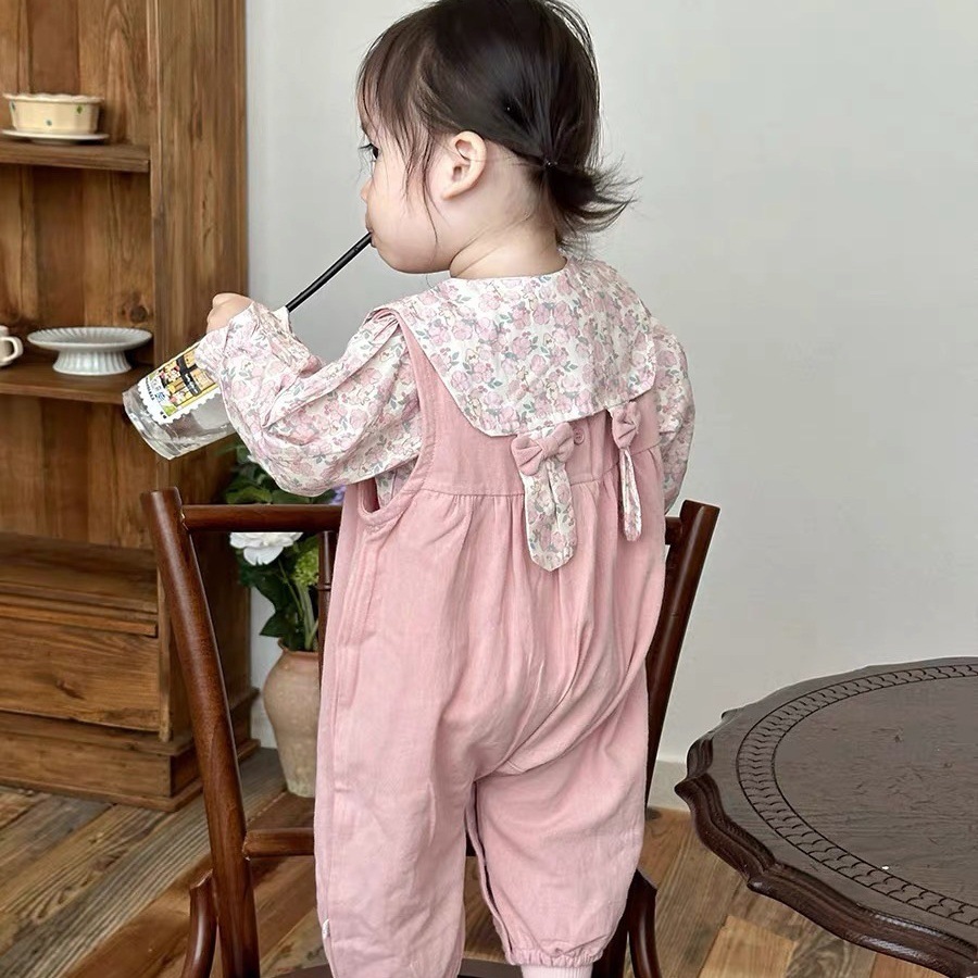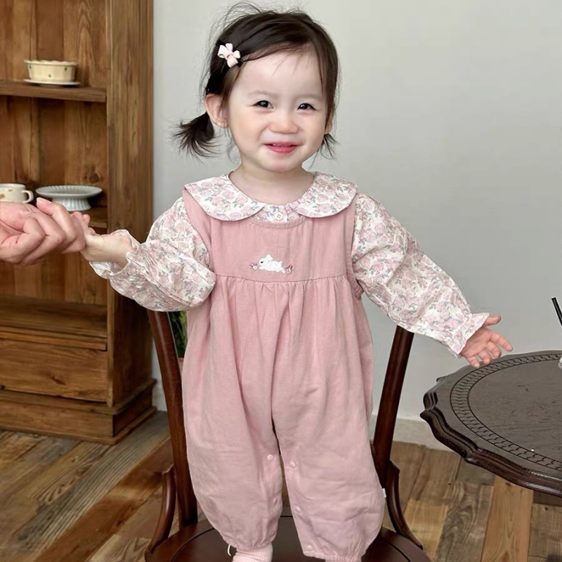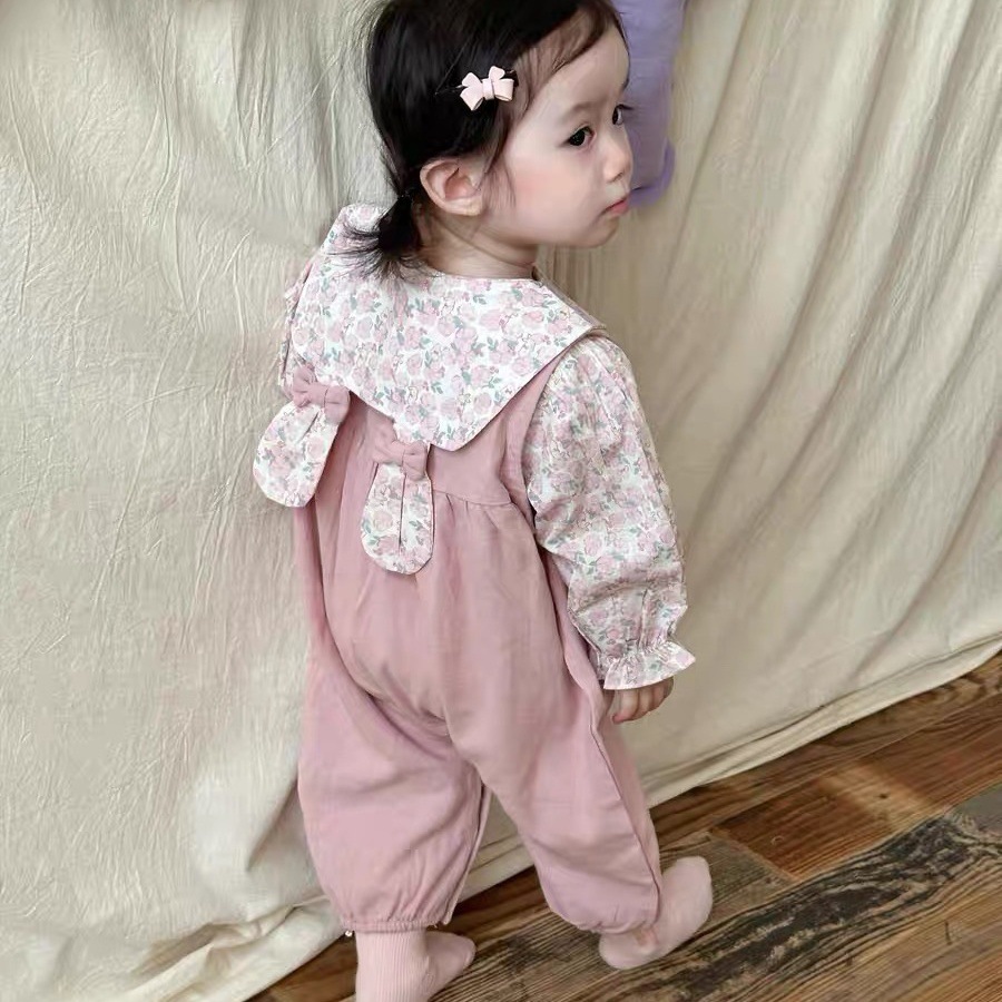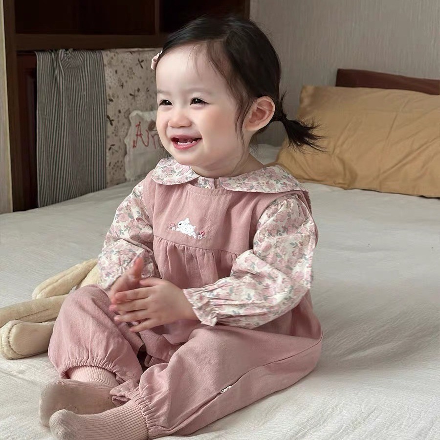 아기의 세트 봄과 가을 달콤한 꽃 인형 칼라 셔츠 자수 스트래피 2 피스 세트 가을 아기 옷스토어 가기