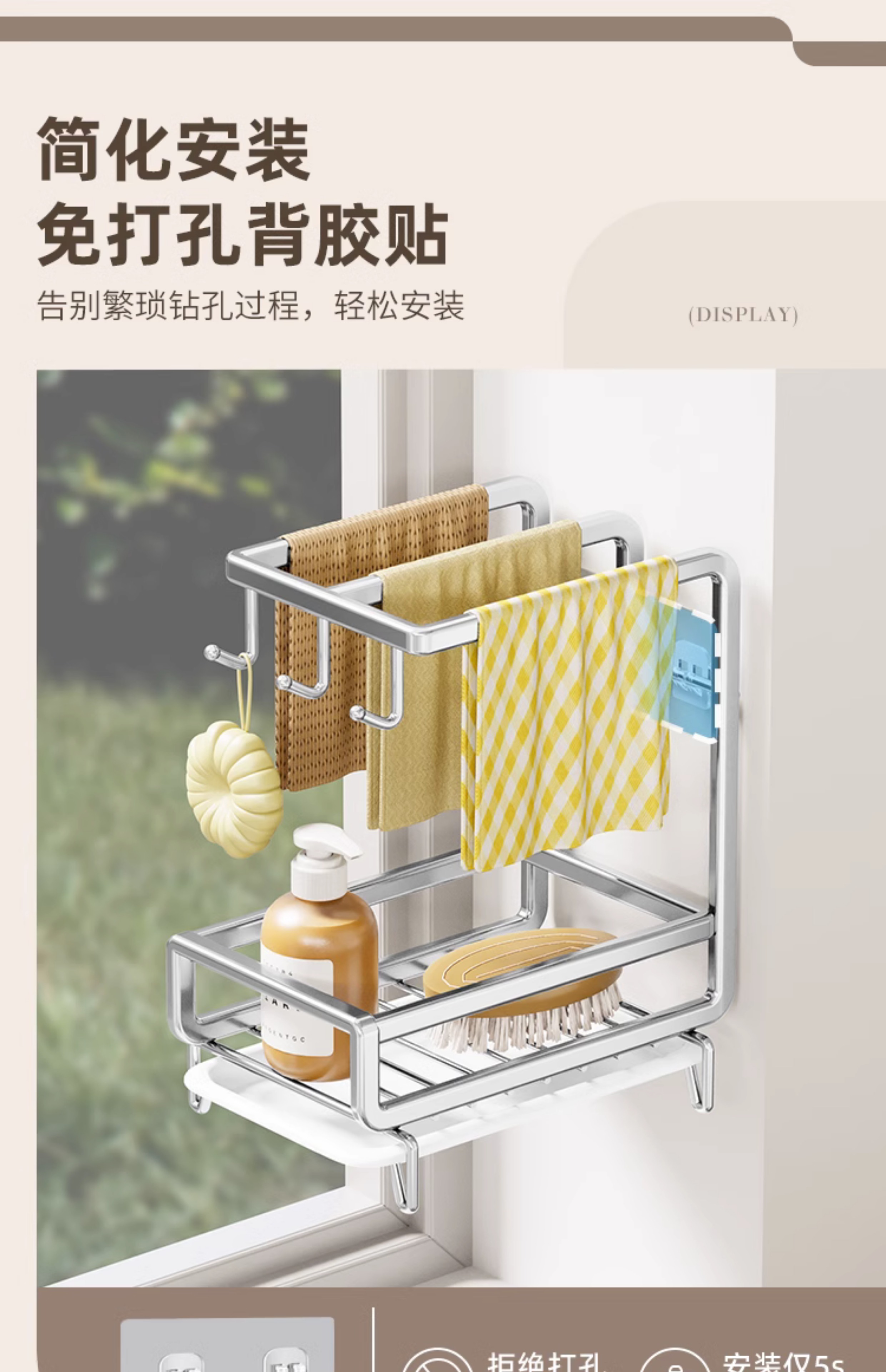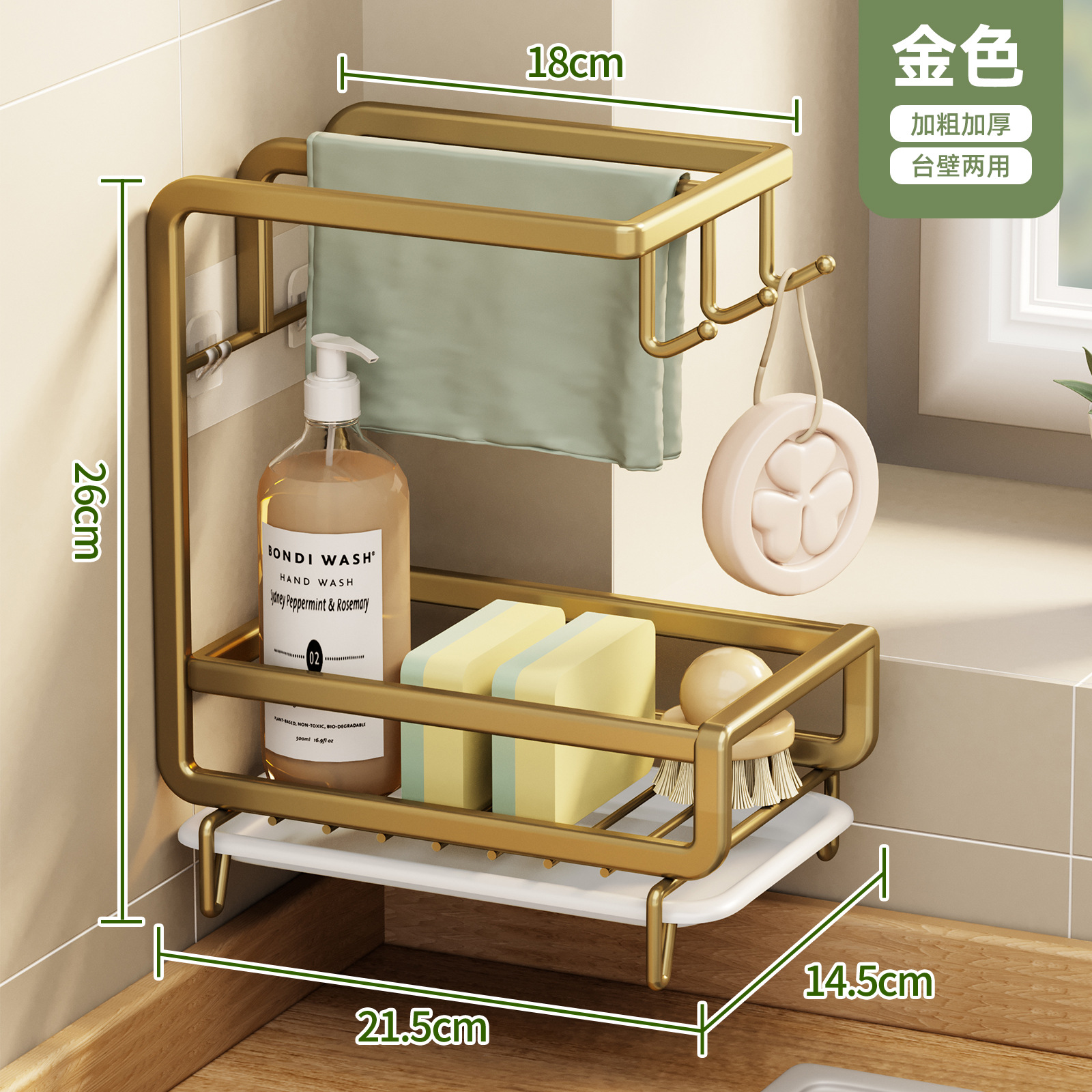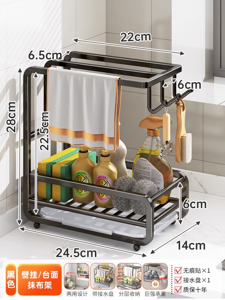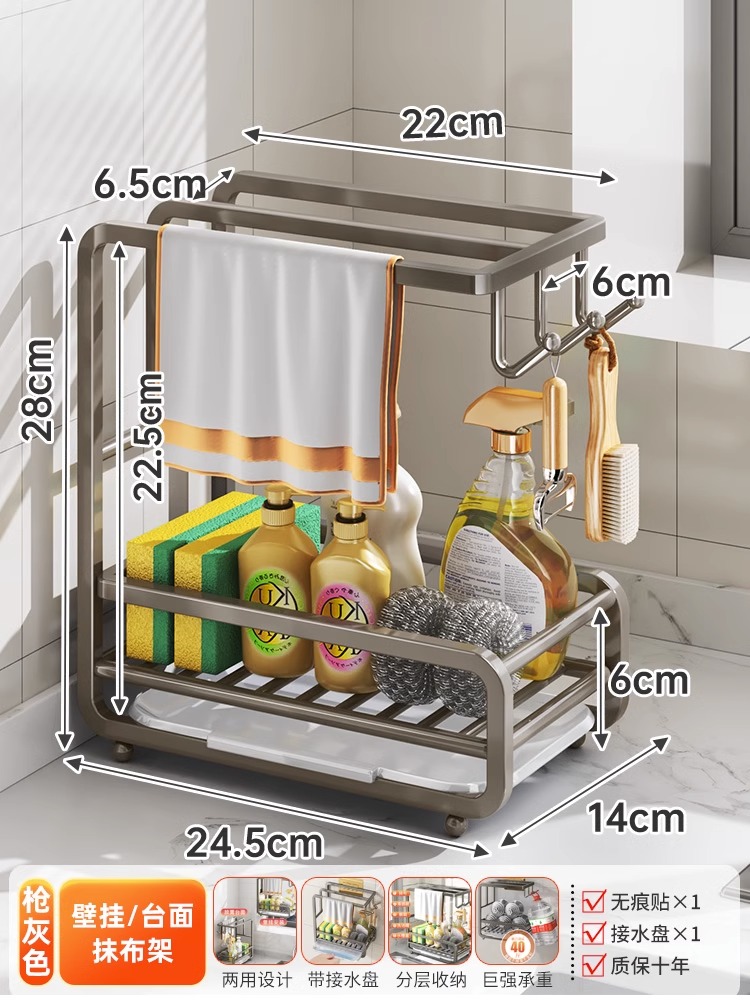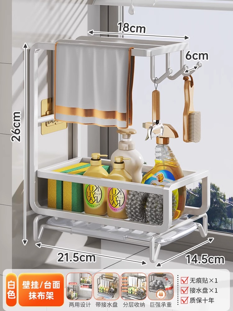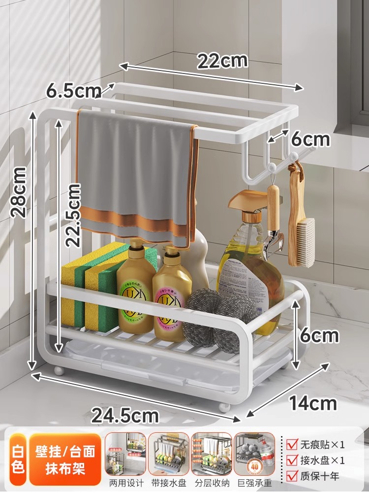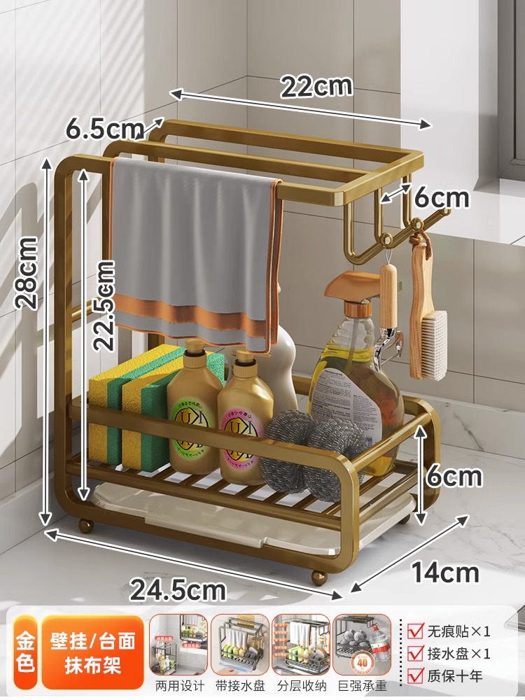 • [금도금 걸레걸이] 배수 트레이 포함(벽걸이형/조리대 겸용)