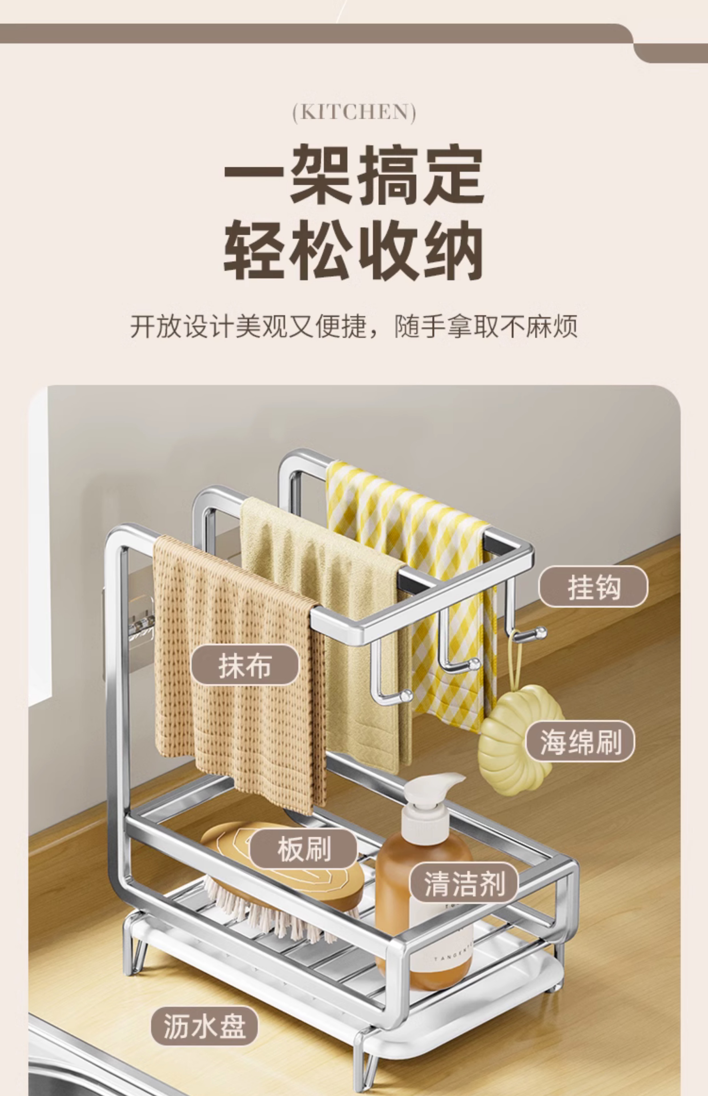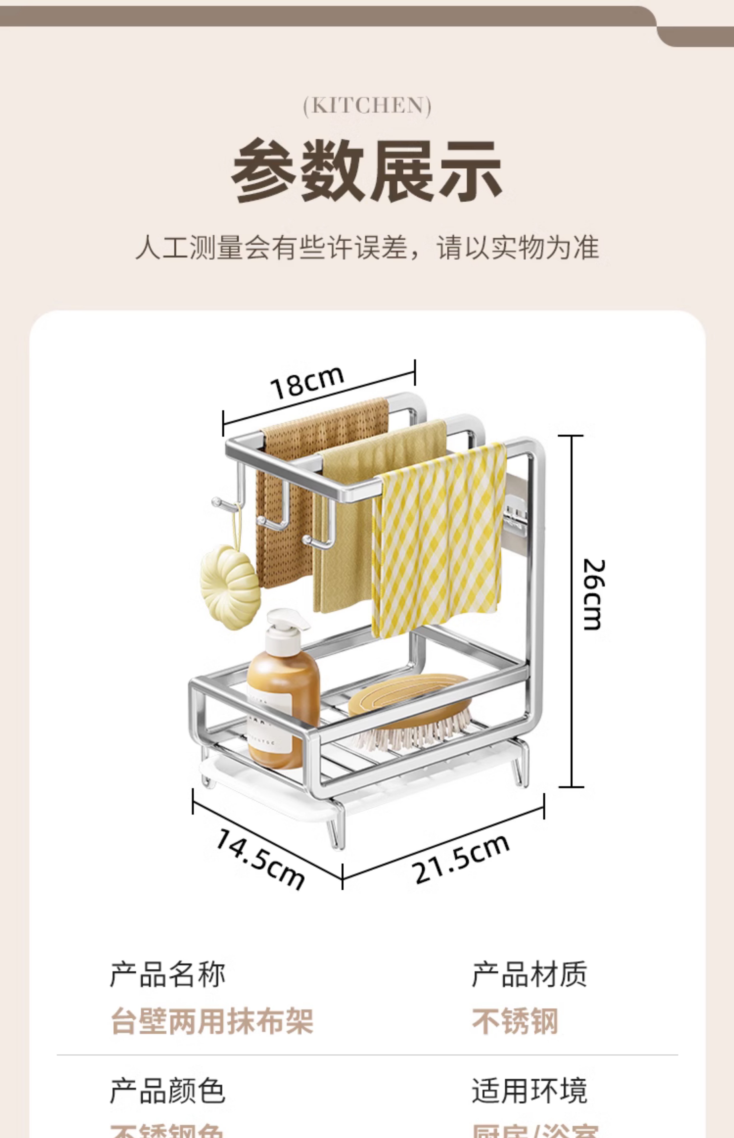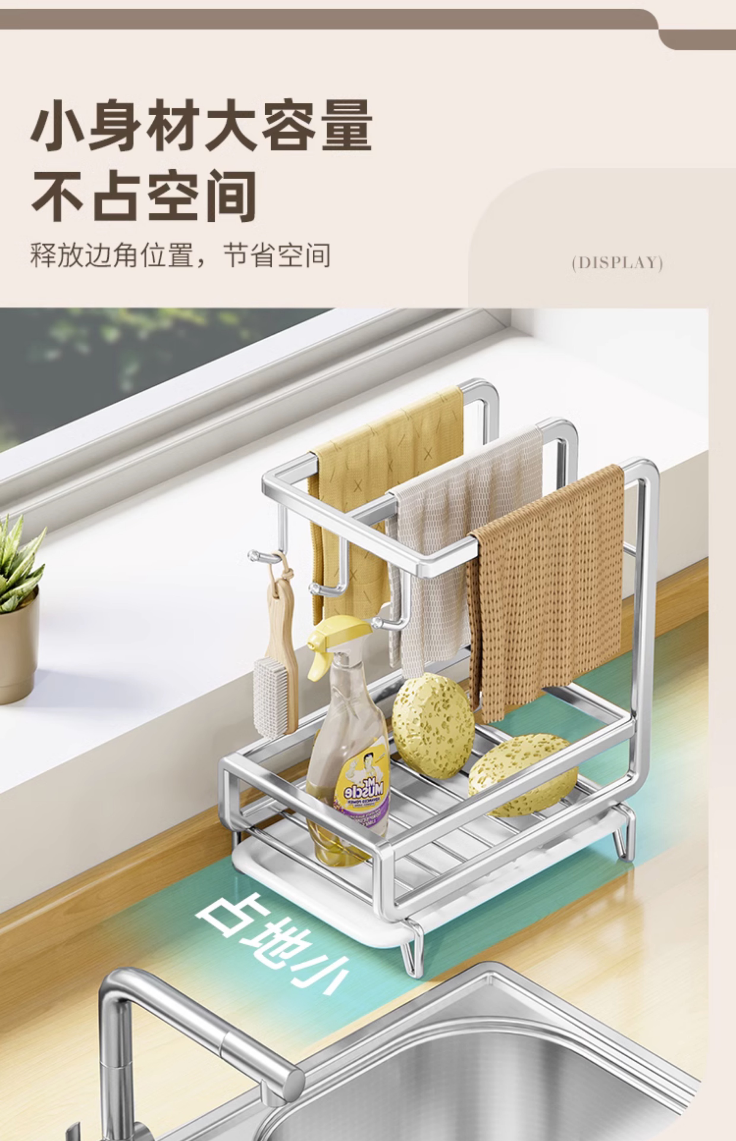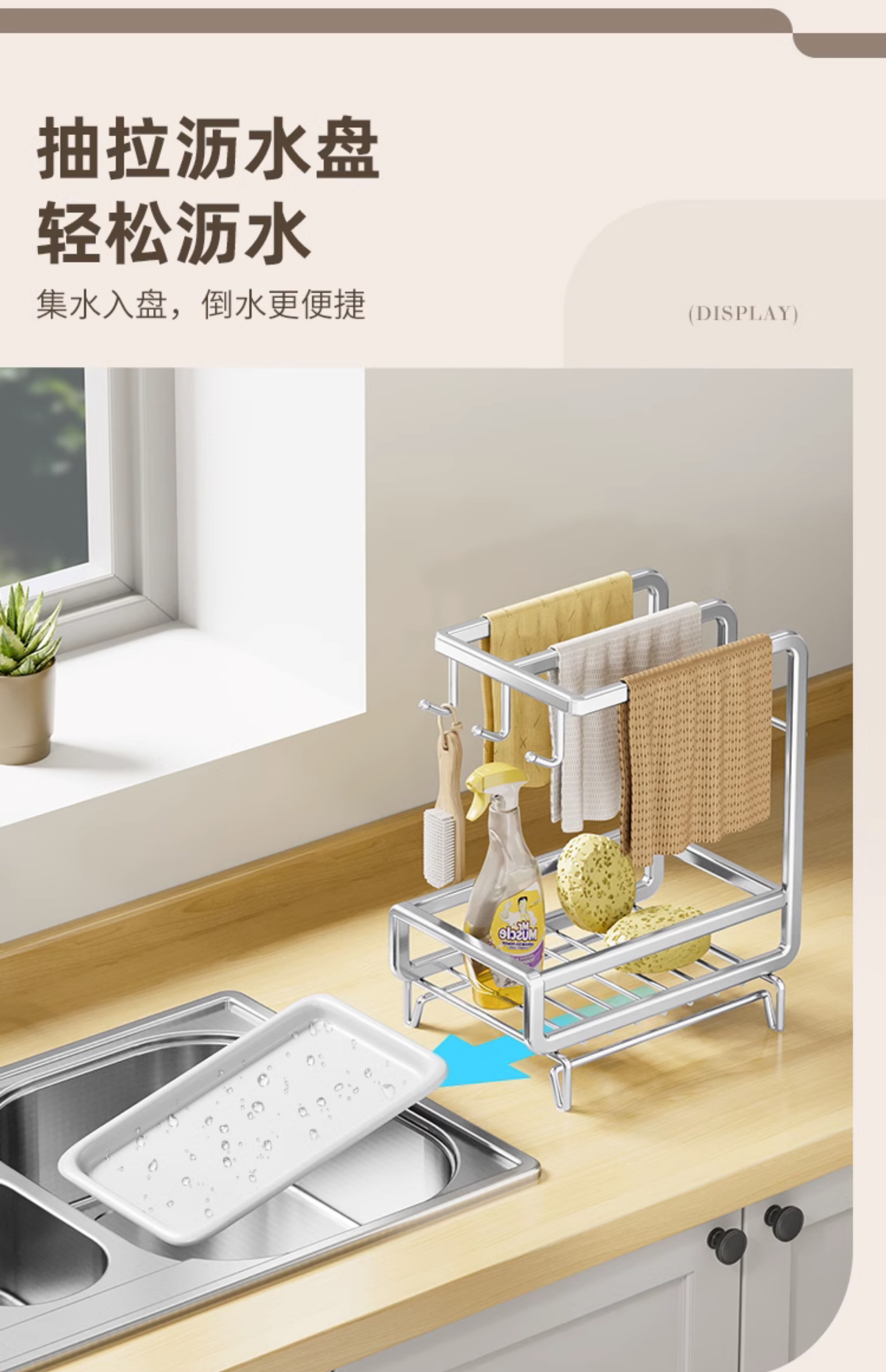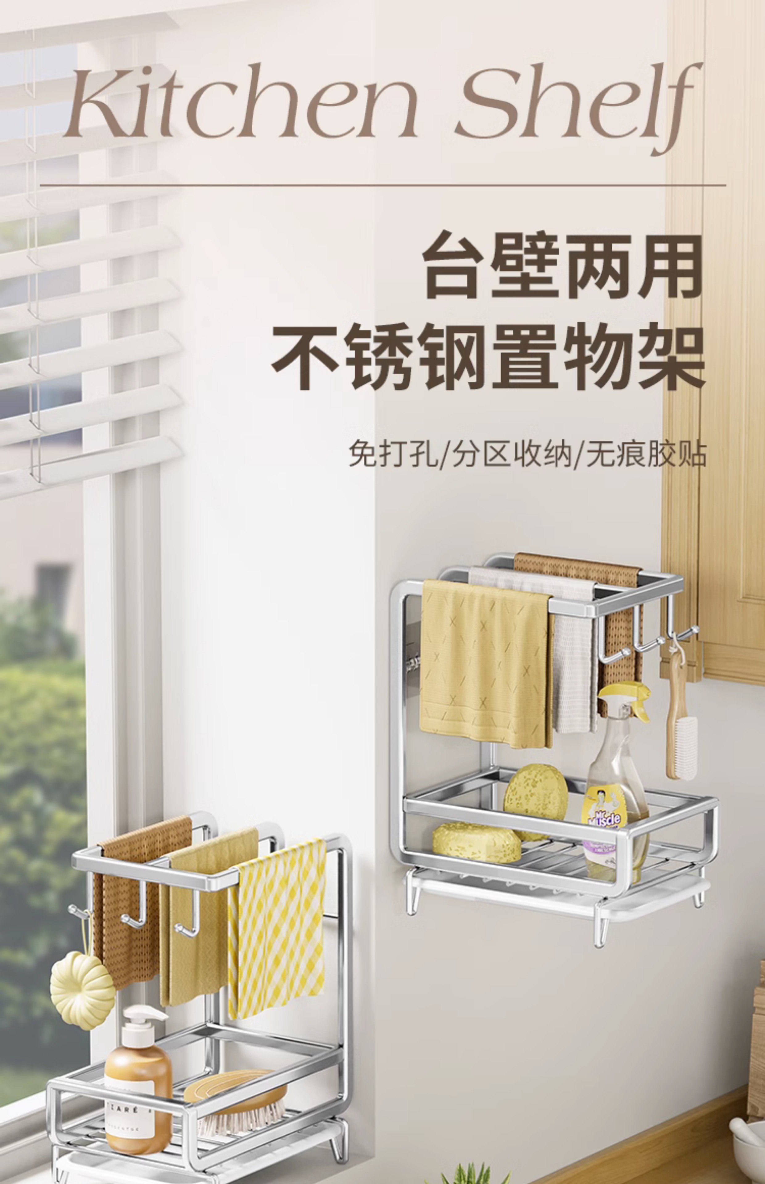 • [금도금 걸레걸이] 배수 트레이 포함(벽걸이형/조리대 겸용)