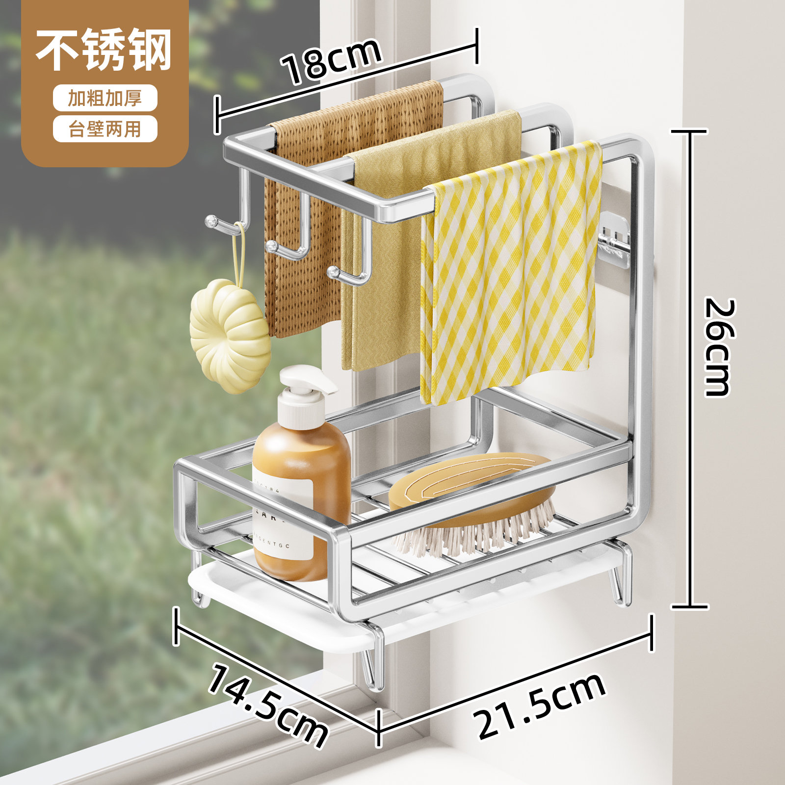 • 스테인레스 스틸 걸레걸이 [물받이 포함] (벽걸이형/조리대 겸용)