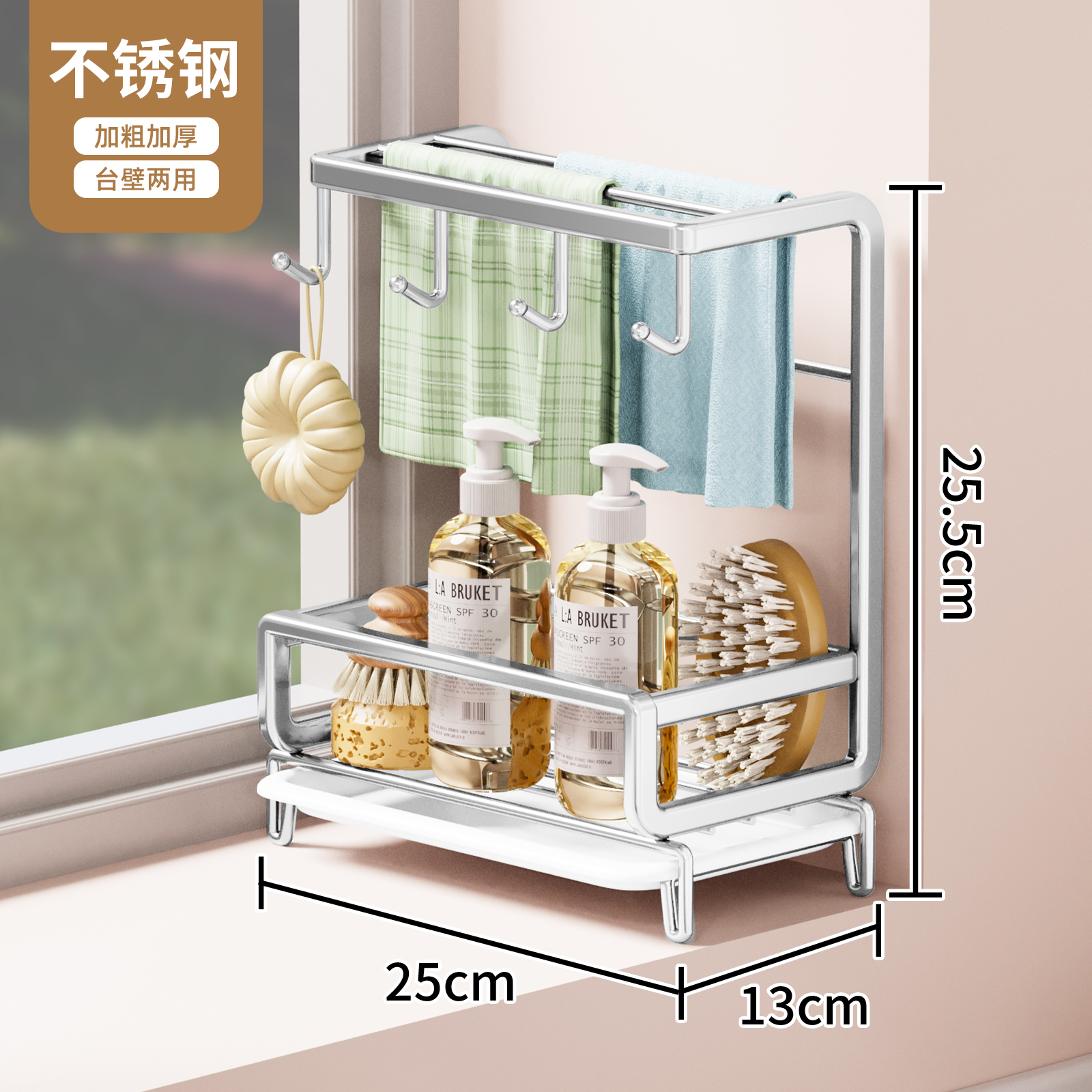 스테인레스 스틸 천 랙 주방 저장 랙 싱크 피복 드레인 랙 스펀지 드레인 바구니 스틸 볼 스토리지 랙
