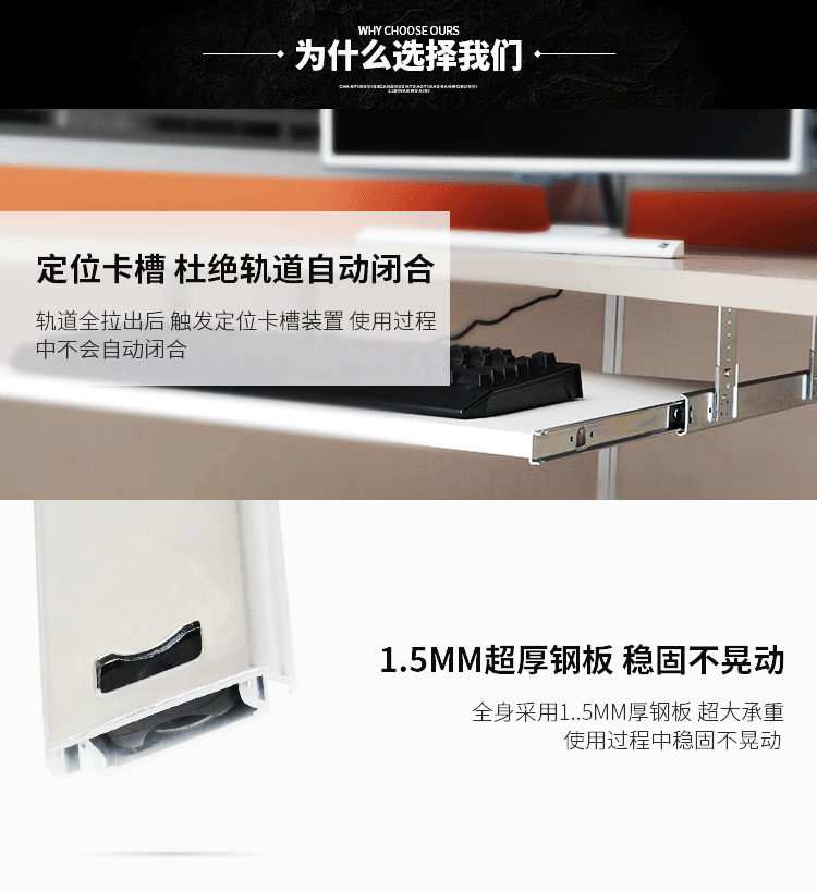 두꺼운 키보드 및 마우스 트랙 키보드 브래킷 컴퓨터 책상 리프팅 슬라이드 레일 트레이 브래킷 키보드 트레일러 슬라이드