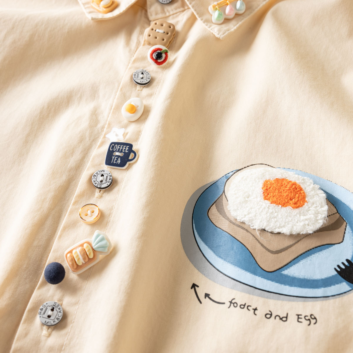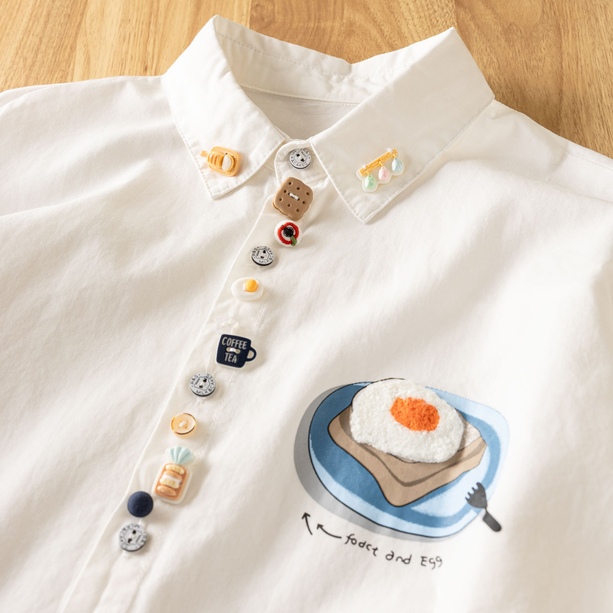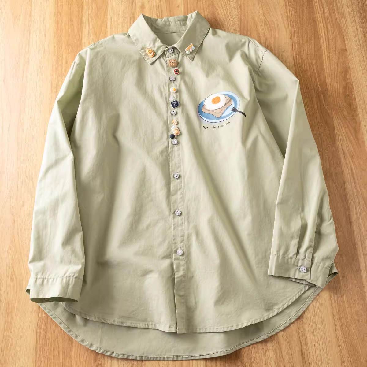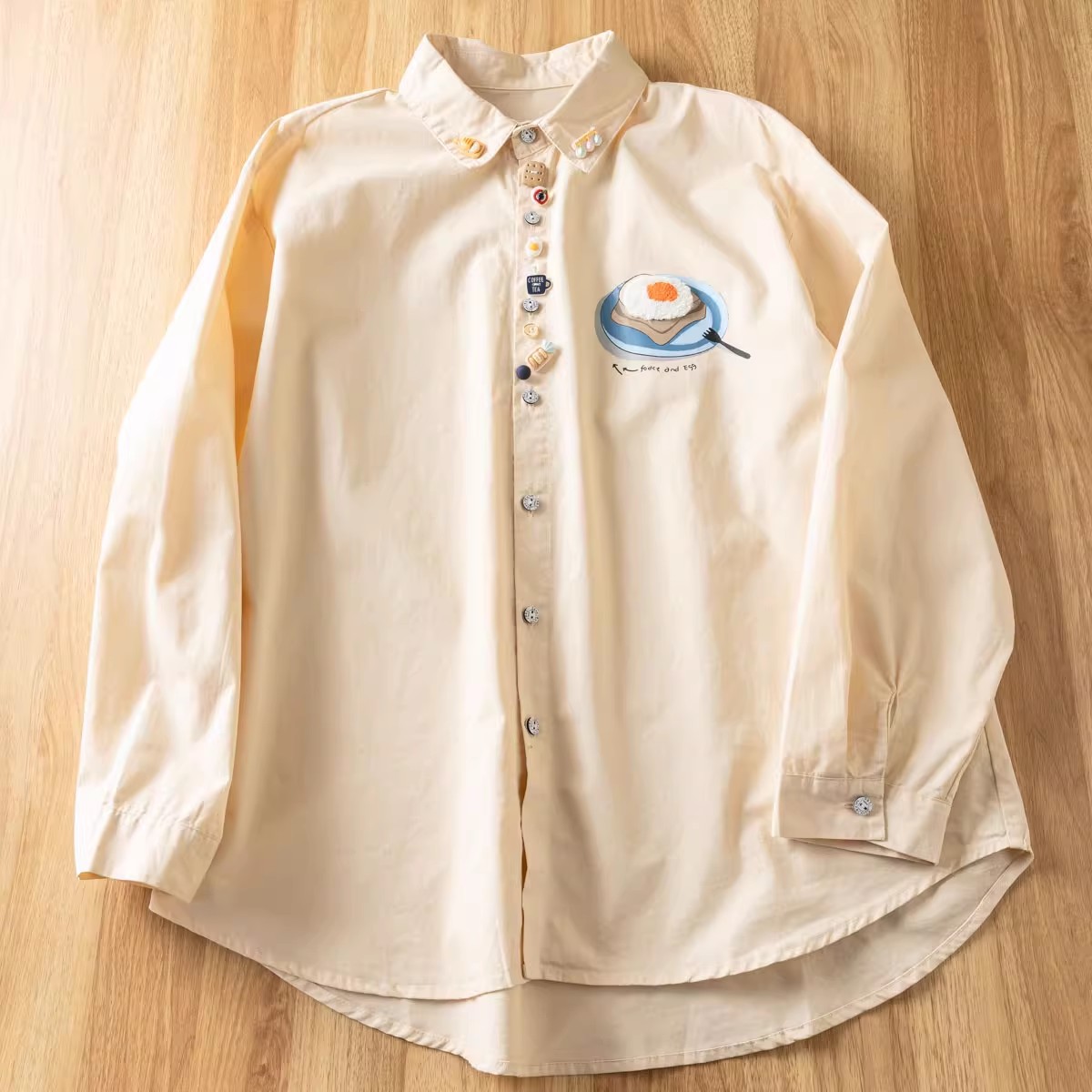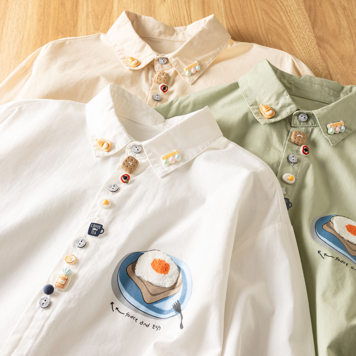 만화 멀티 버튼 옷깃 긴 소매 셔츠 여성의 새로운 일본 대학 스타일 수 놓은 데친 달걀 탑 도매스토어 가기