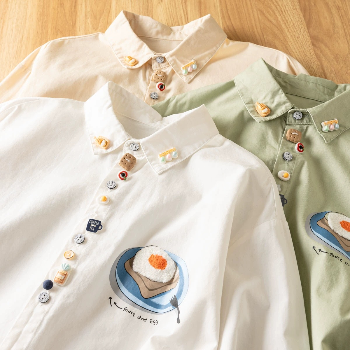 만화 멀티 버튼 옷깃 긴 소매 셔츠 여성의 새로운 일본 대학 스타일 수 놓은 데친 달걀 탑 도매