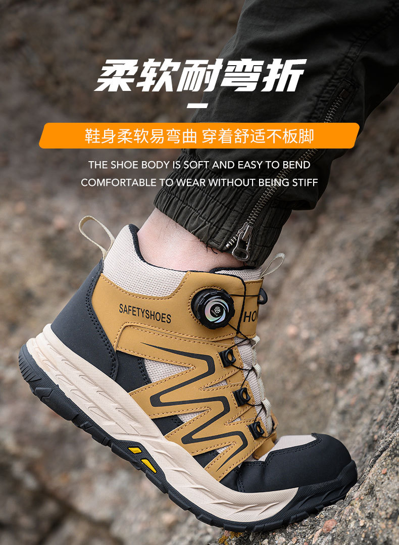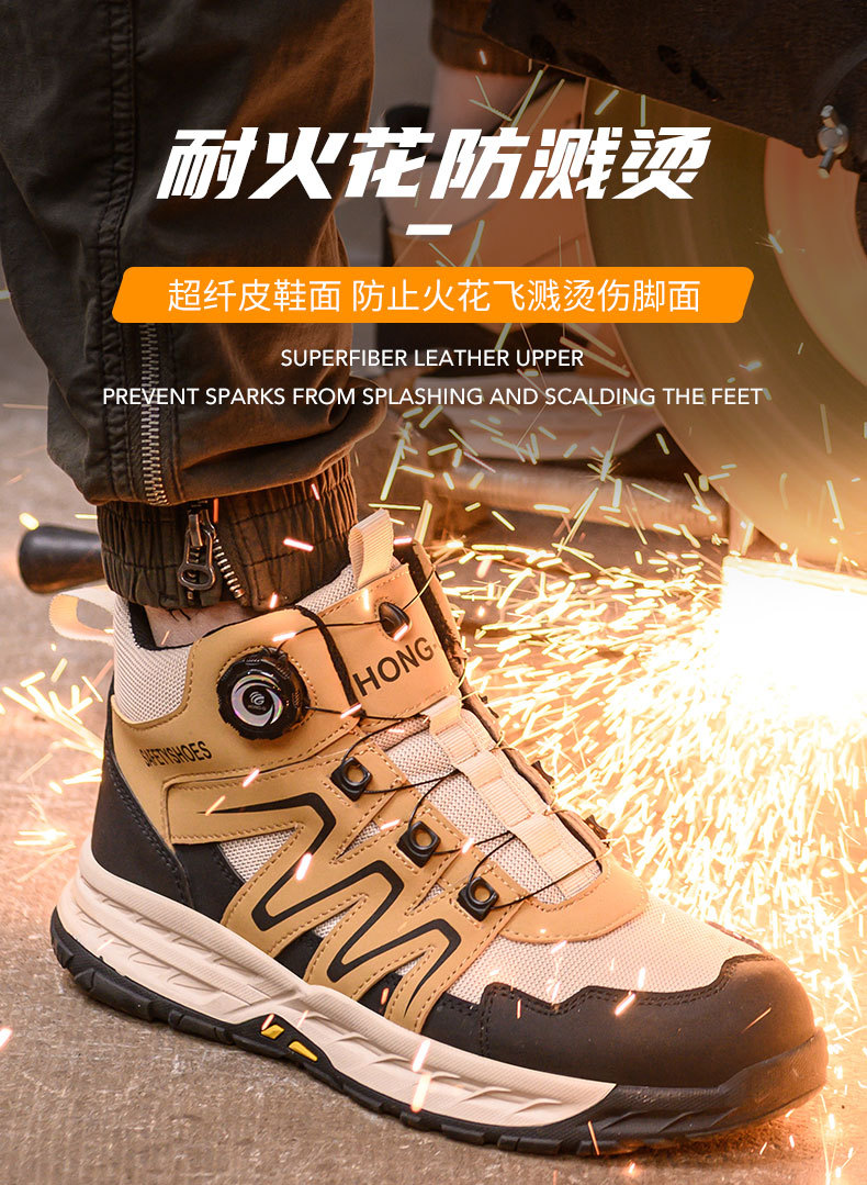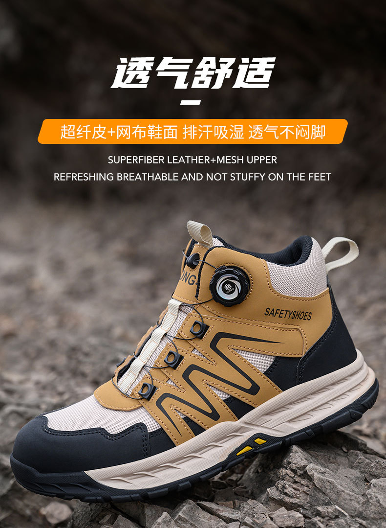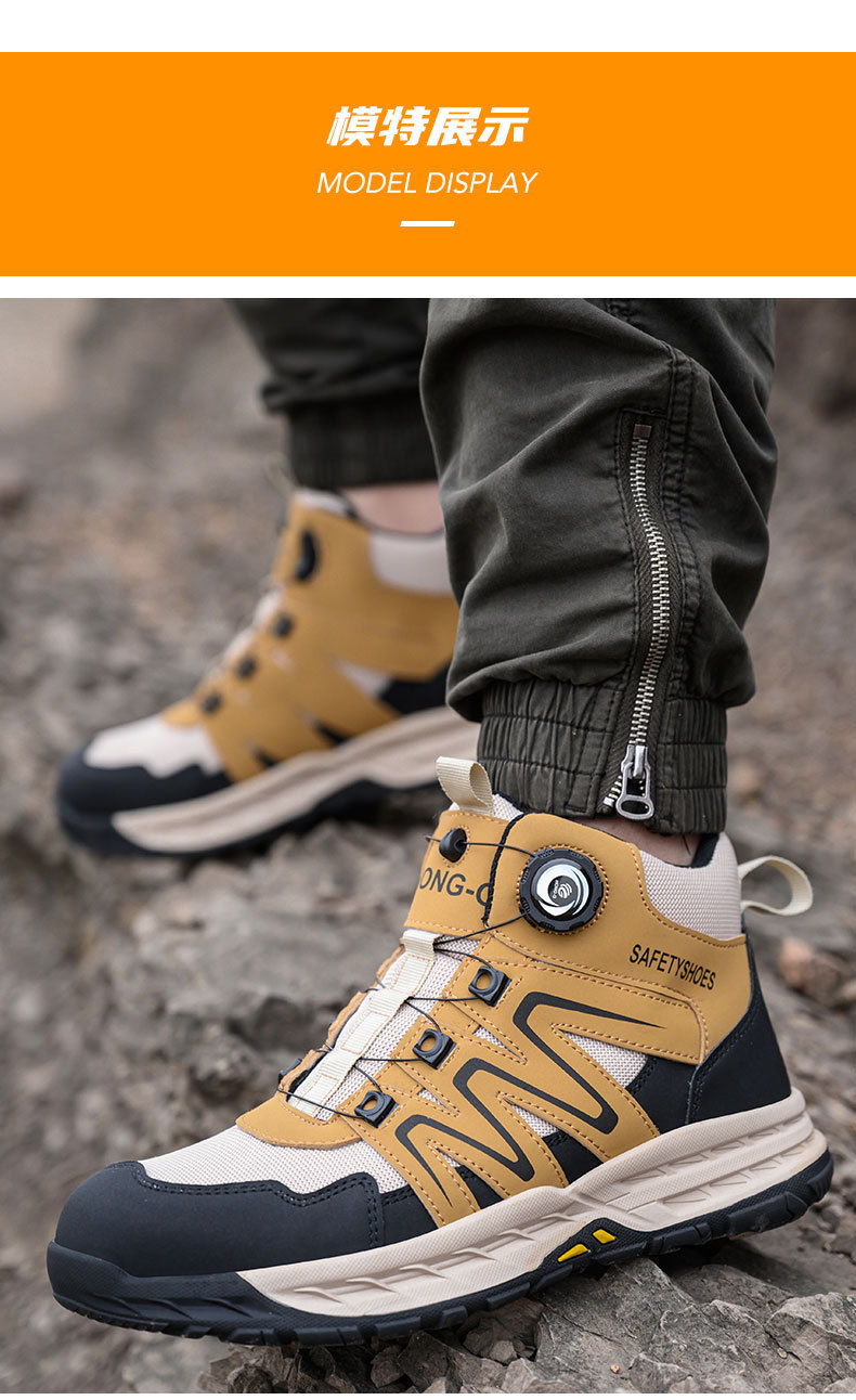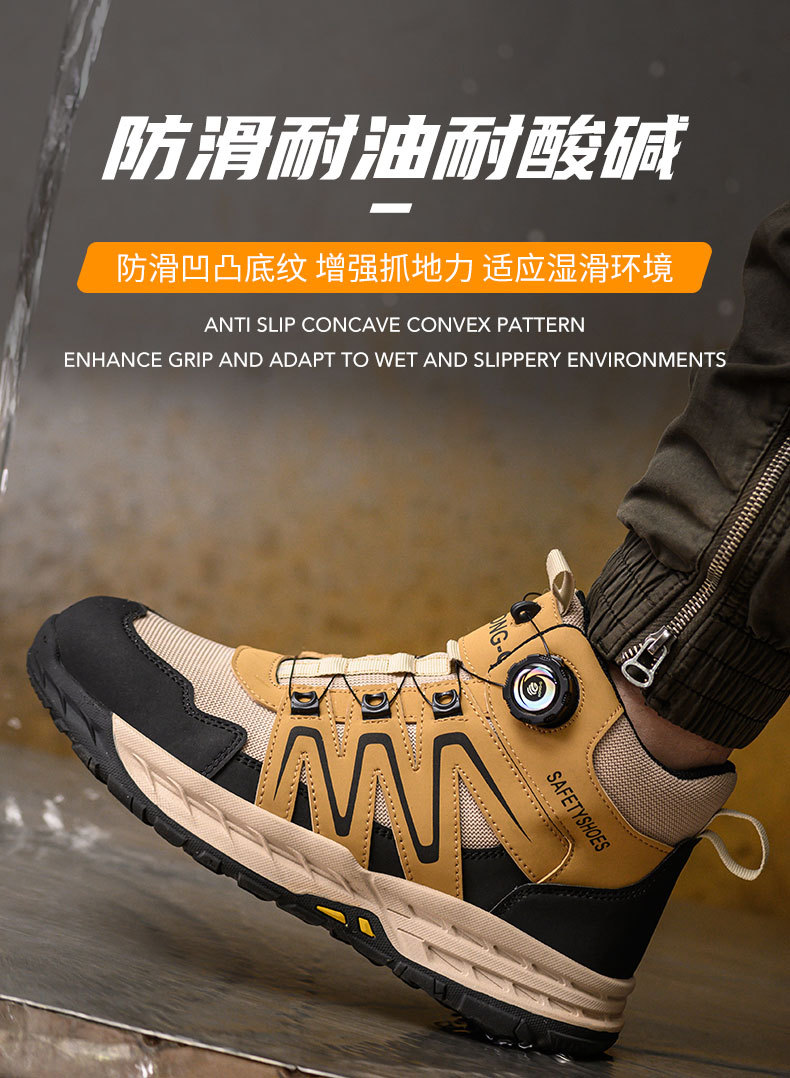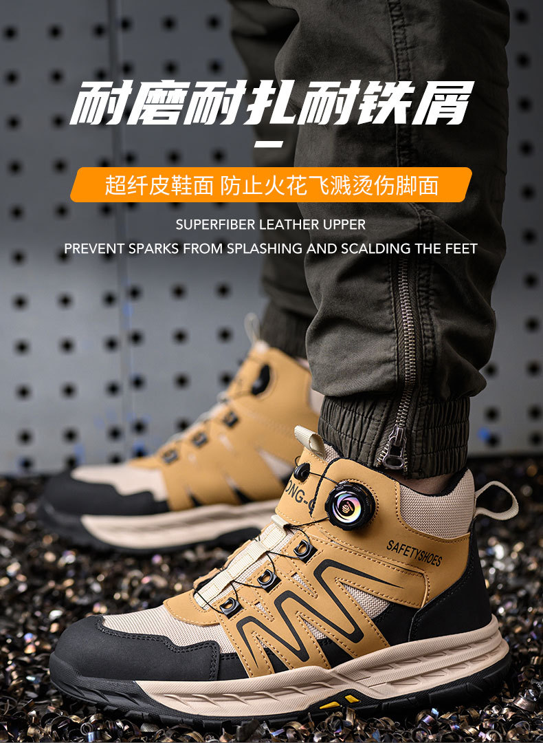 크로스보더 패션 회전 버튼 하이탑 안전화, 충격 방지 및 관통 방지 안전화, 끈 없는 편리한 신발, 내마모성 신발